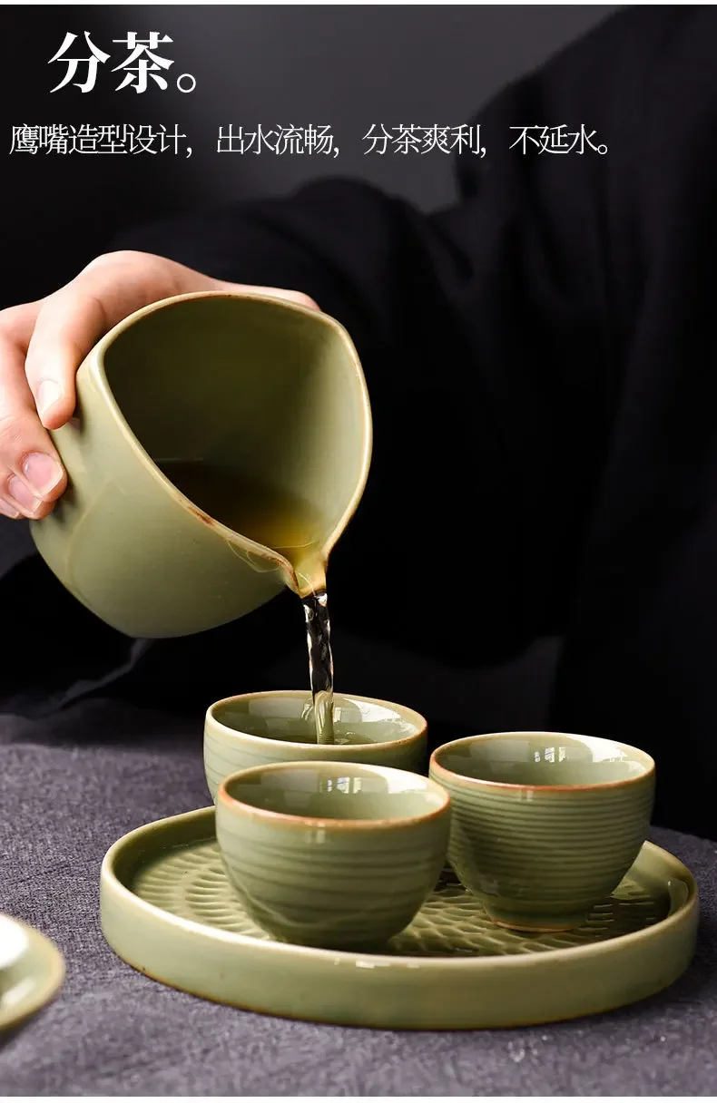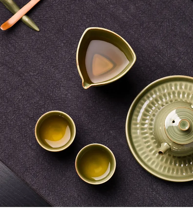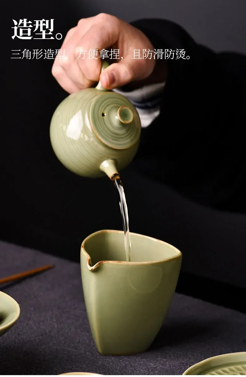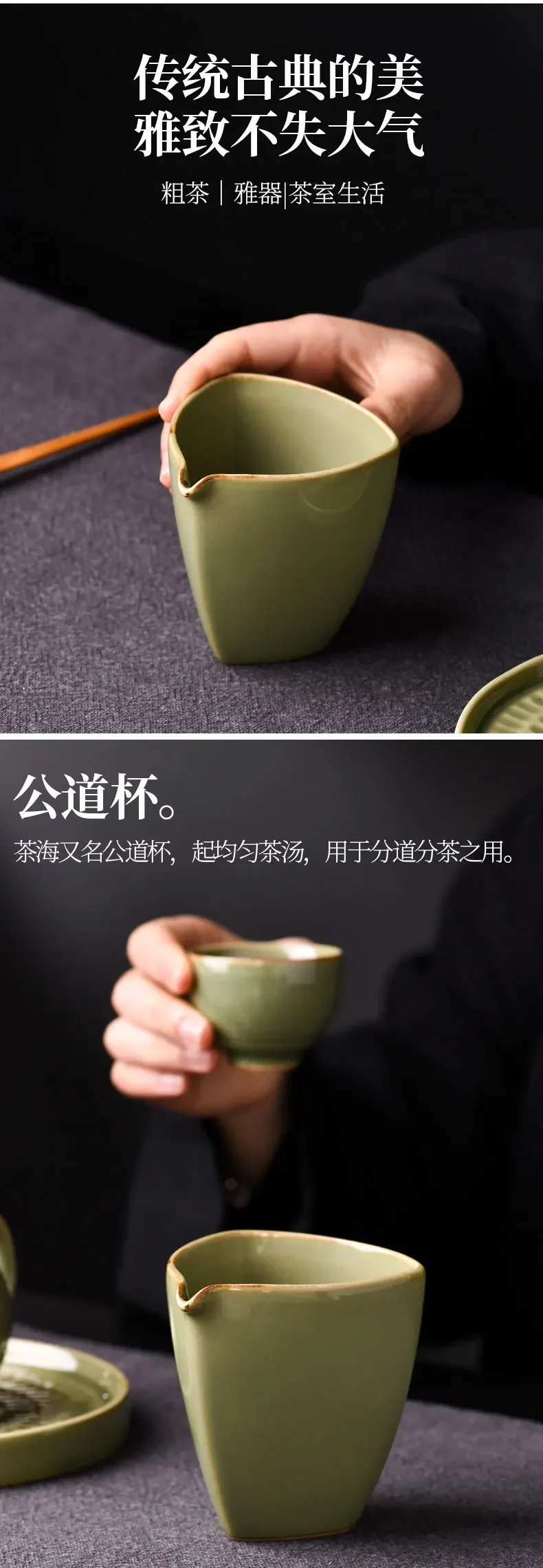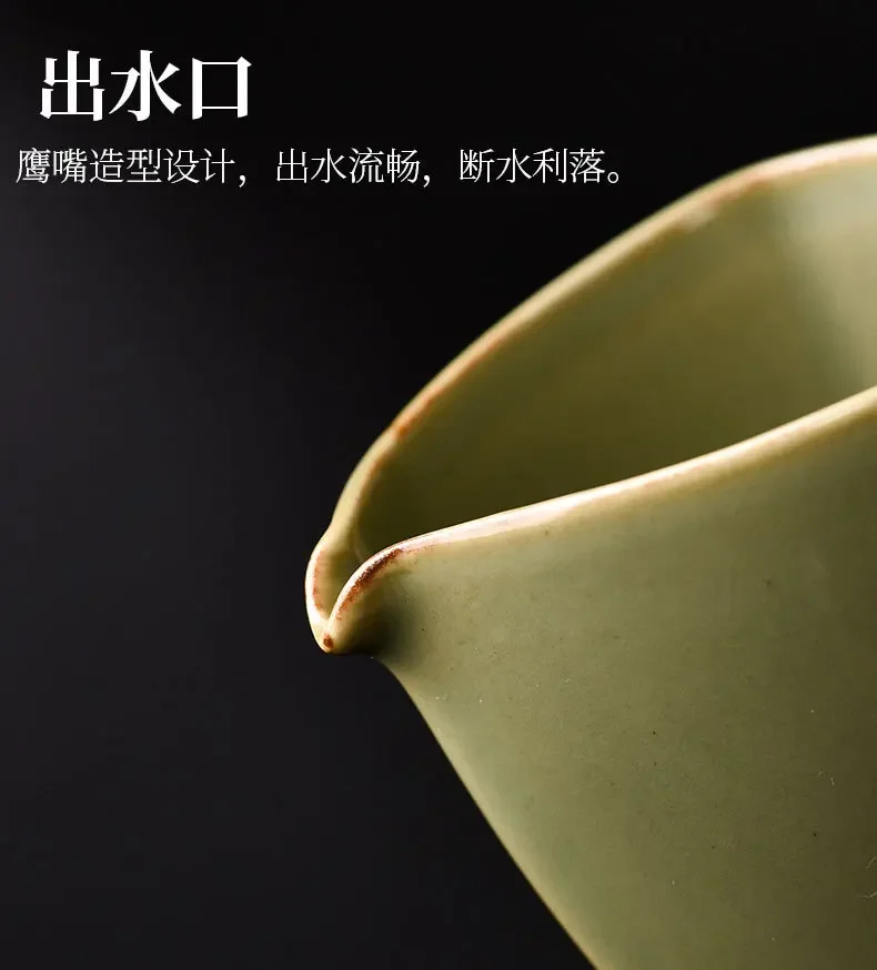 Japanese Antique Ceramic Fair Cup Green Bamboo Glazed Tea Bowl Creative Tea Dispenser High Quality Tea Set Accessories Crafts
