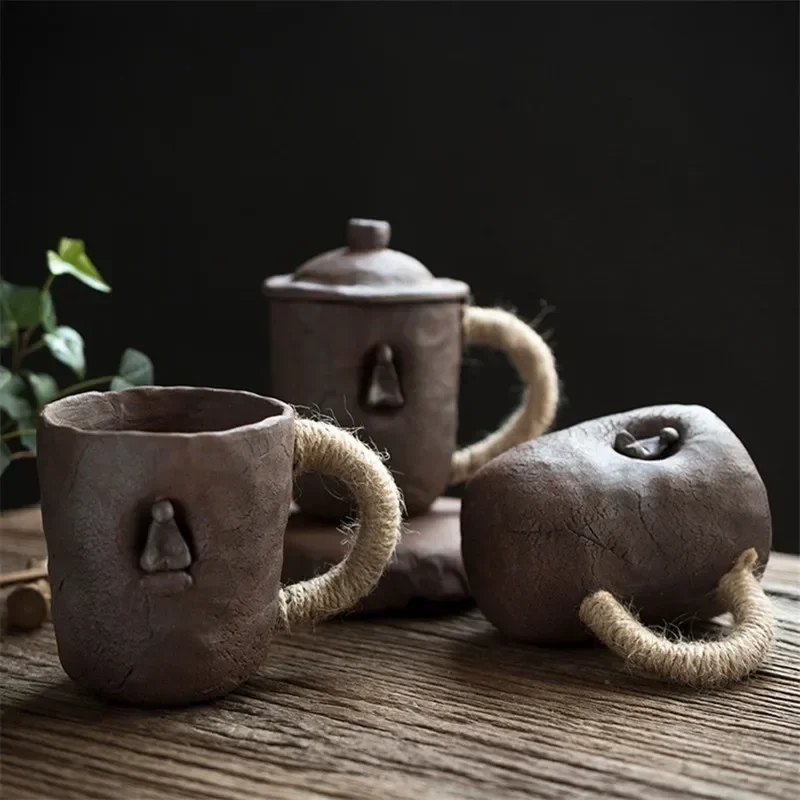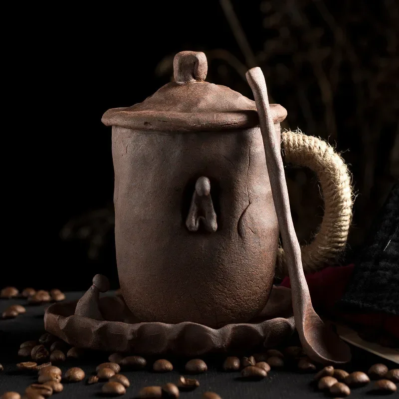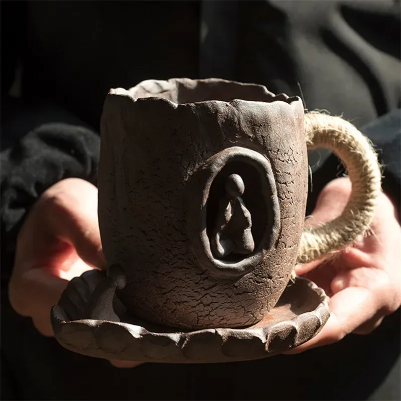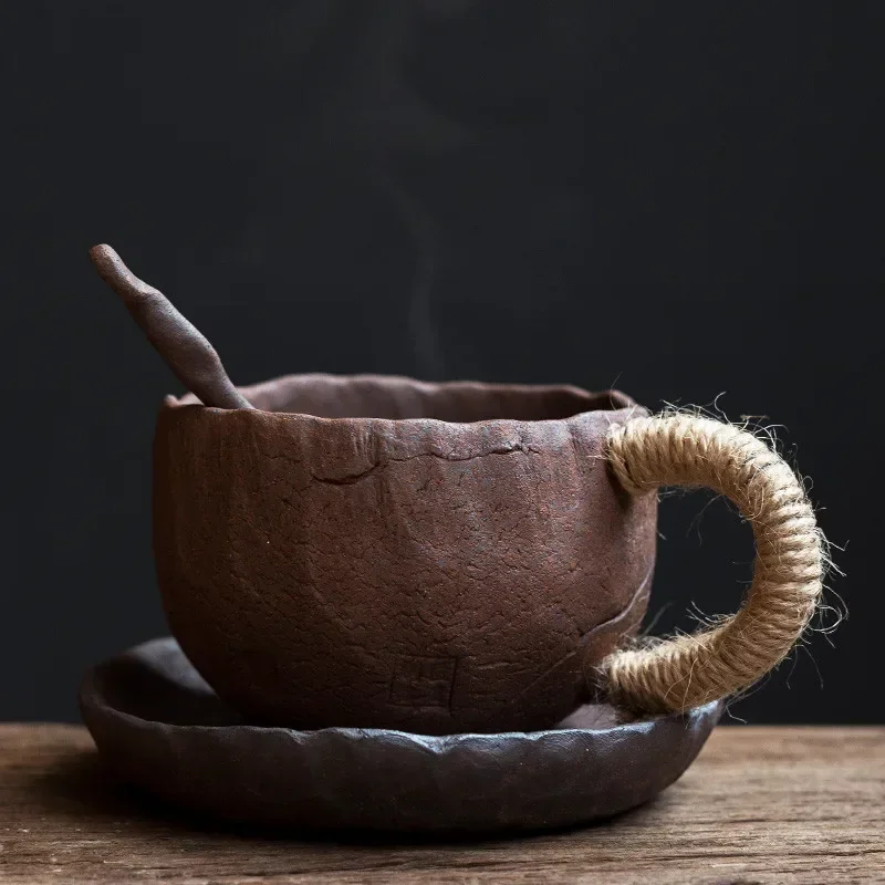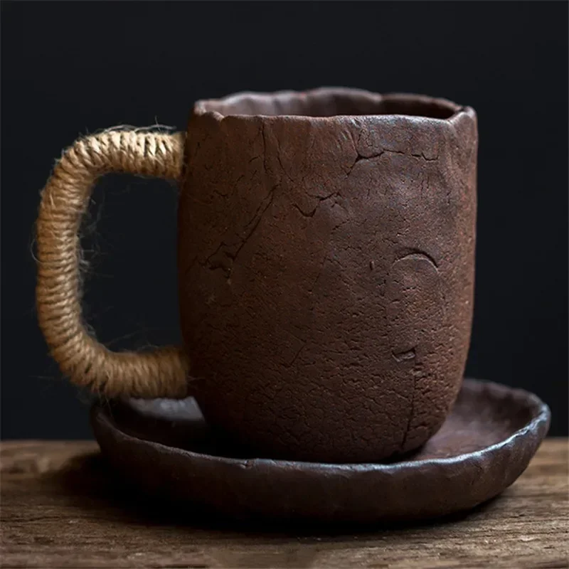 Japanese Ceramic Large Capacity Coffee Cup With Saucer Simple Household Breakfast Milk Mug Coarse Pottery Handmade Latte Cup