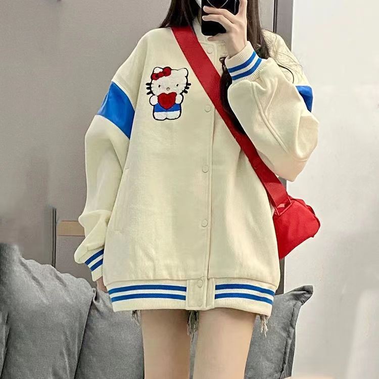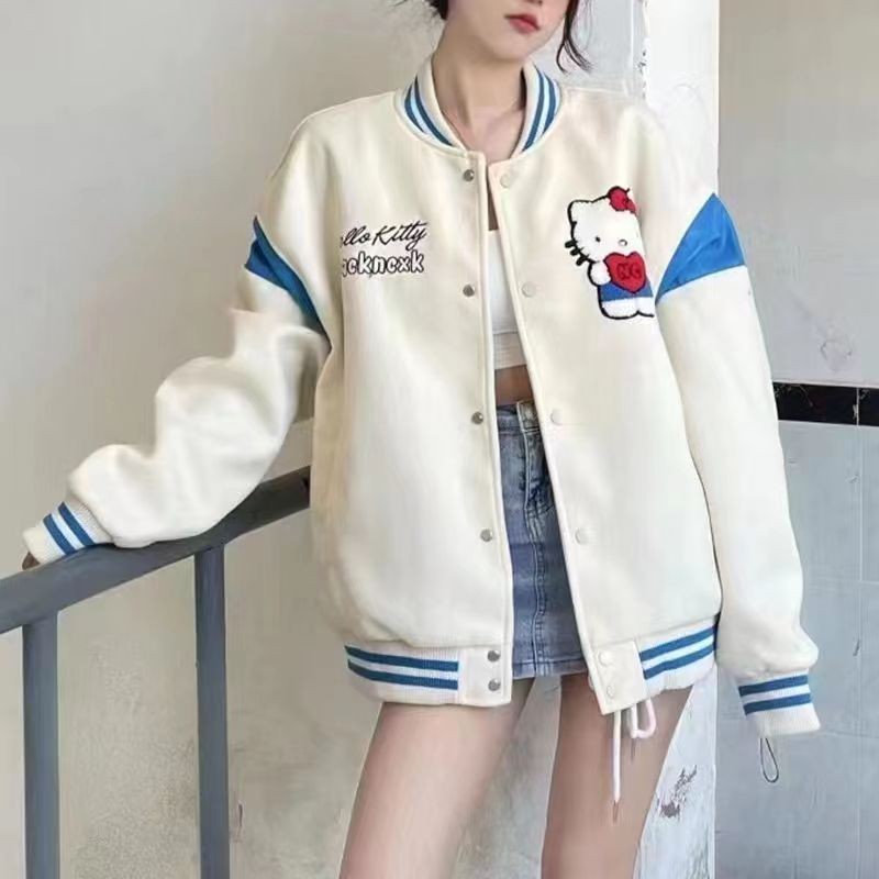 Japanese Hello Kitty cute embroidered ladies jacket baseball suit loose spring