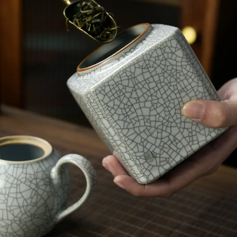 Japanese style Ceramic Ice crack Tea Caddies Tea Container Coffee Canister Tea Caddy D182