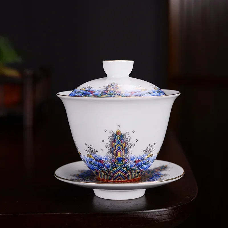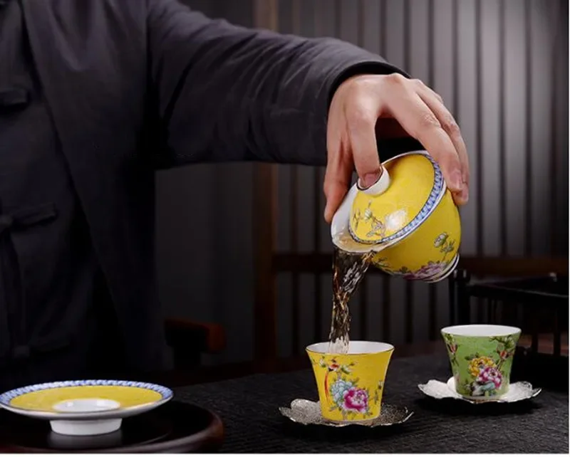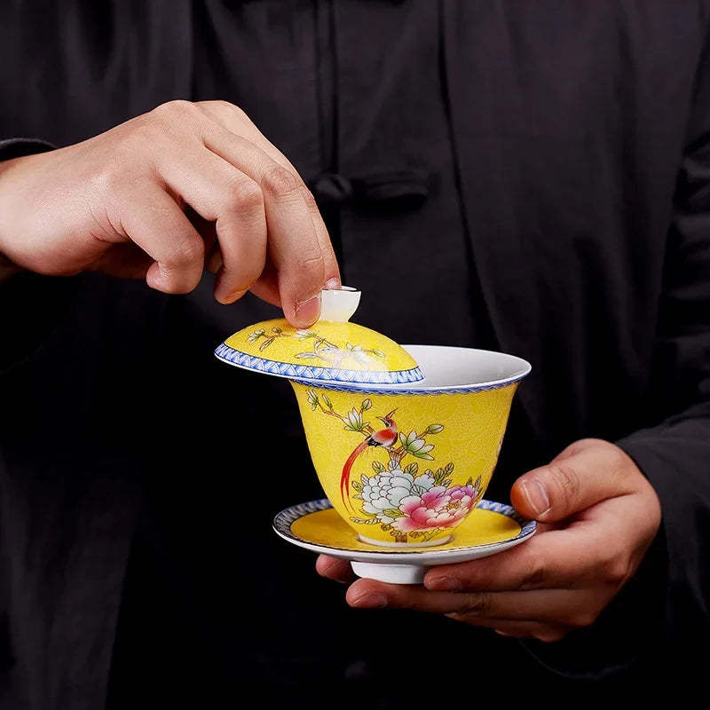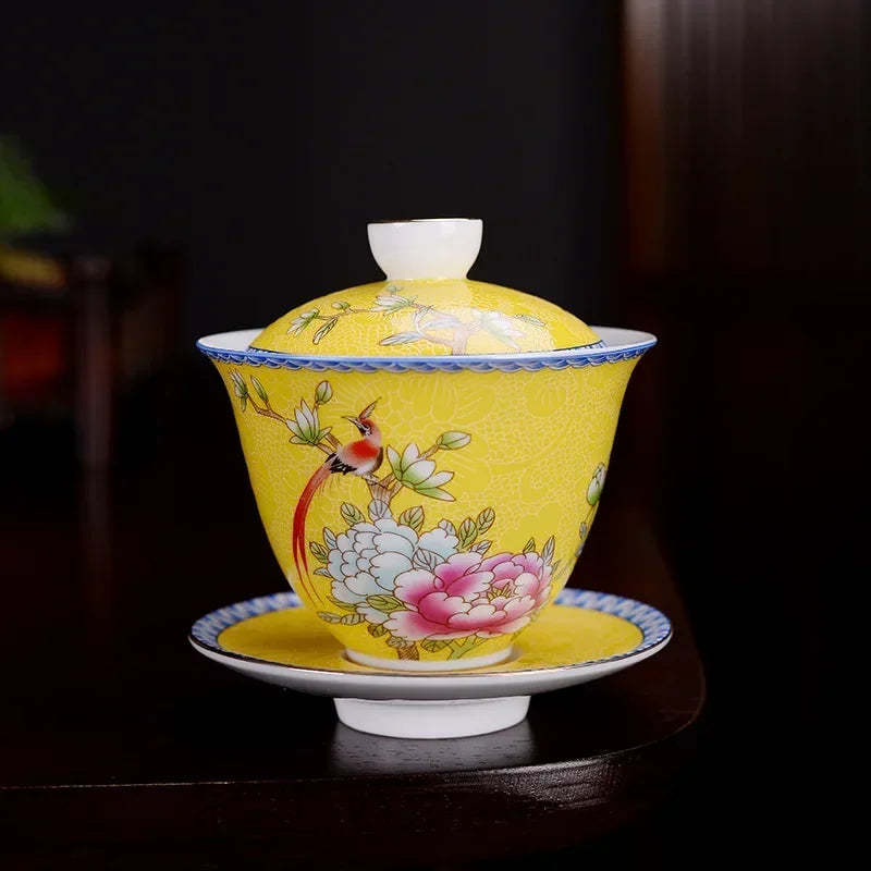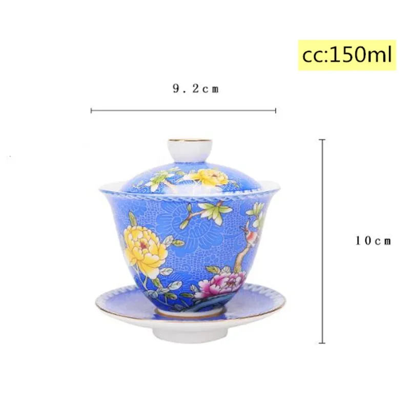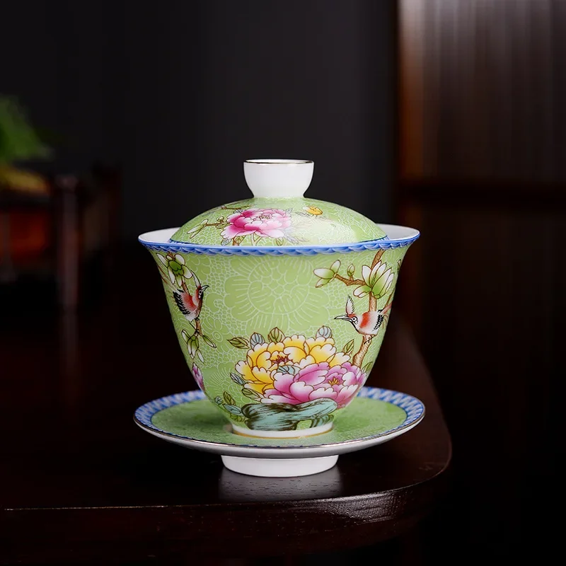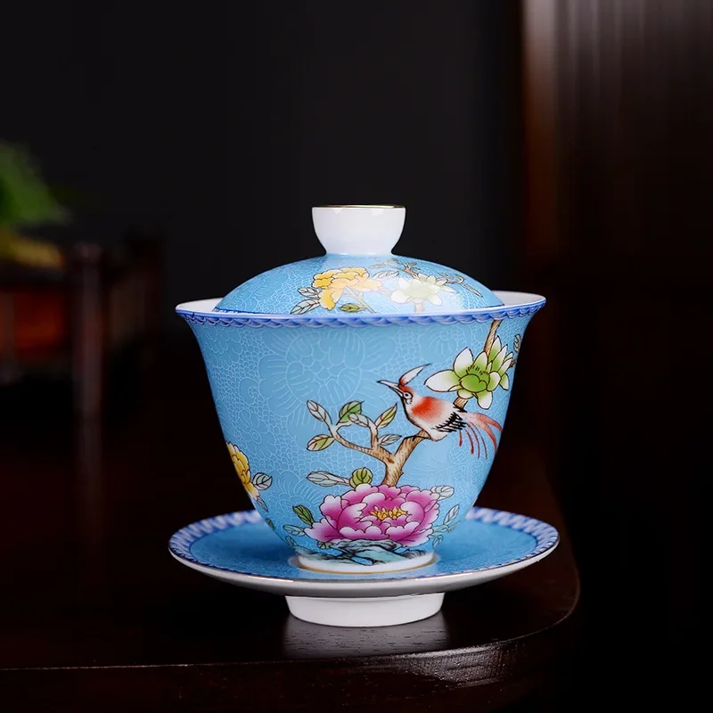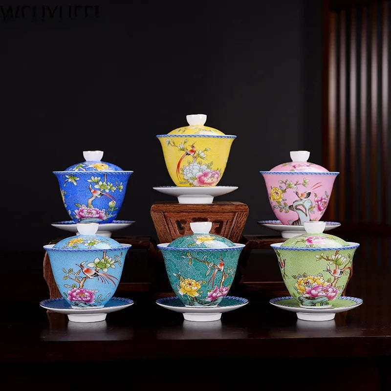 Jingdezhen ceramics Gaiwan Exquisite Enamel Color Handmade Tea Bowl Hand painted flower and bird Teaset 150ml Drinkware