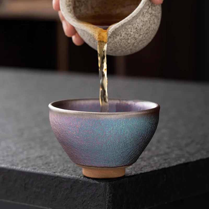 JZ248 110ml Small Cups Color Tenmoku Tea Cup Natural Clay and Ore Chinese Traditional Kungfu Teaware Fired in Kiln /JIANZHAN