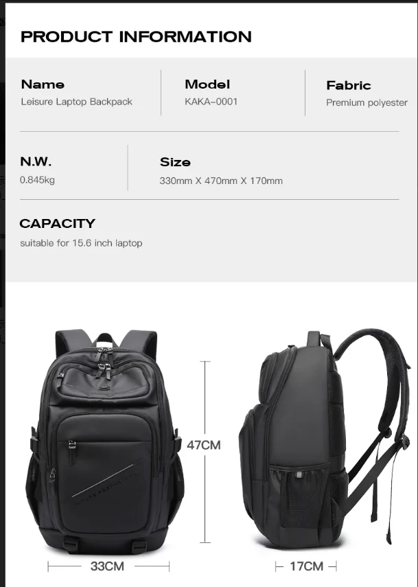 KAKA Men Backpack Anti-theft 15.6 Inch Multifunction Laptop Business Waterproof Backpack Outdoor Travel Bachion Bag Mochila