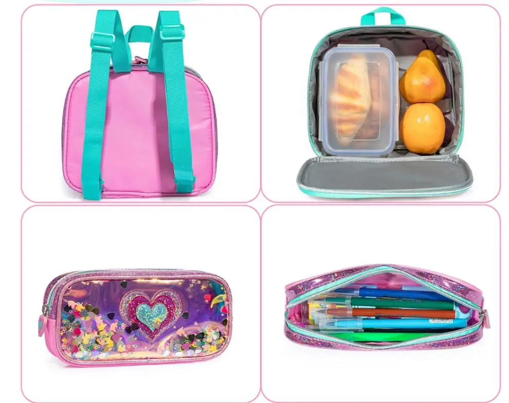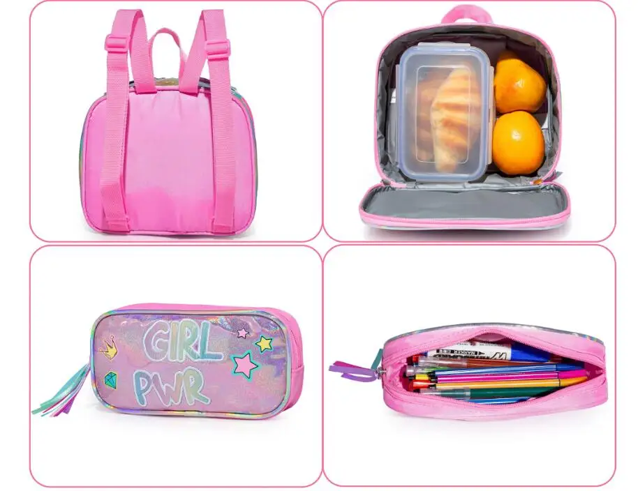 Kids Bookbags for Girls Preschool Backpack Primary Schoolbag Set 3 in 1 Lunch Bag Pen Bag for Girl's School Backpack Bag Sets