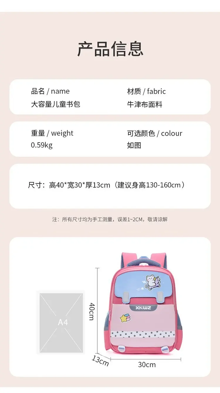 Product Name: Cartoon Large Capacity Backpack Material: Nylon Color: Available in four colors Size: 40 * 30 * 13cm