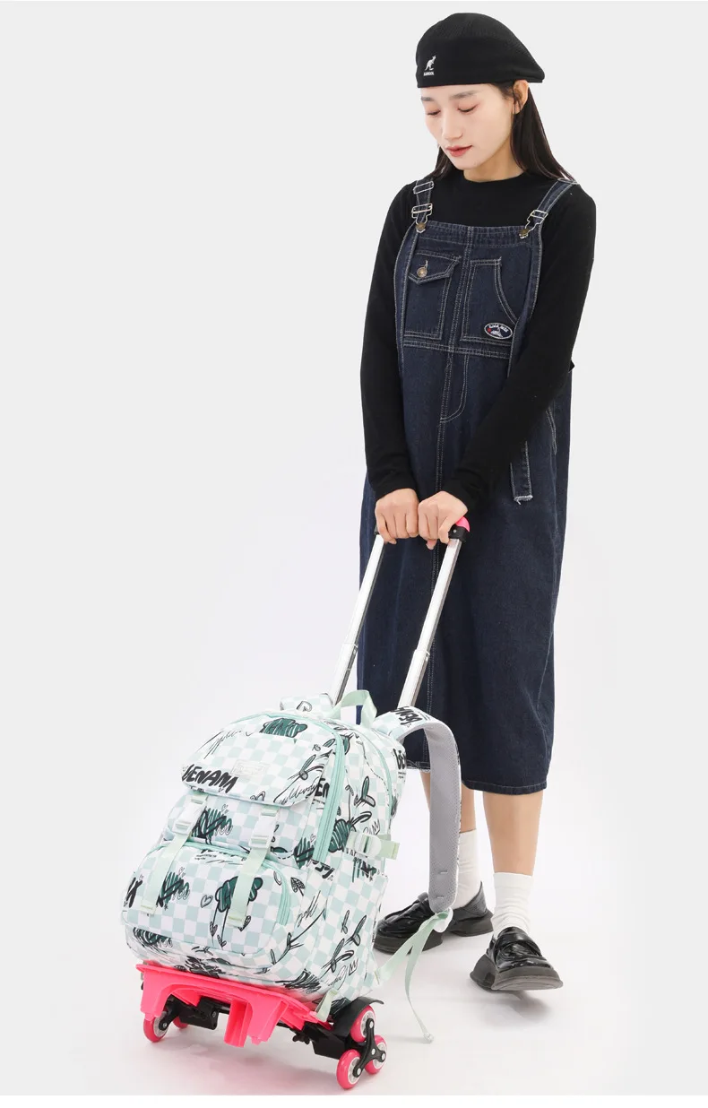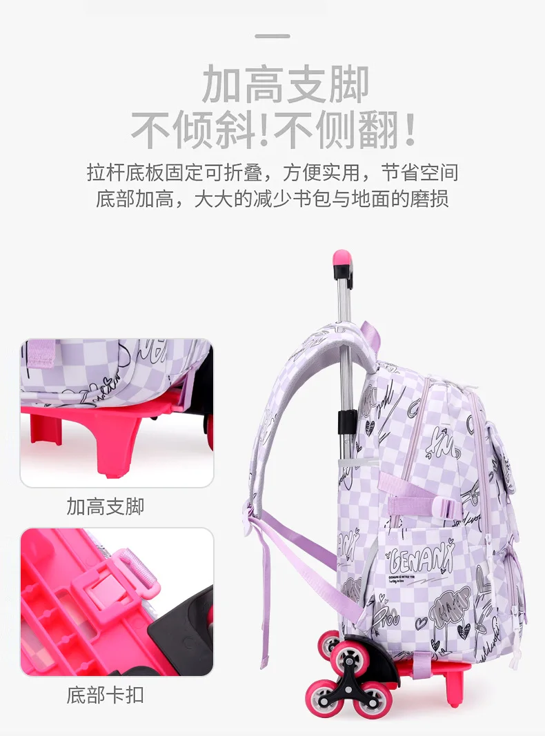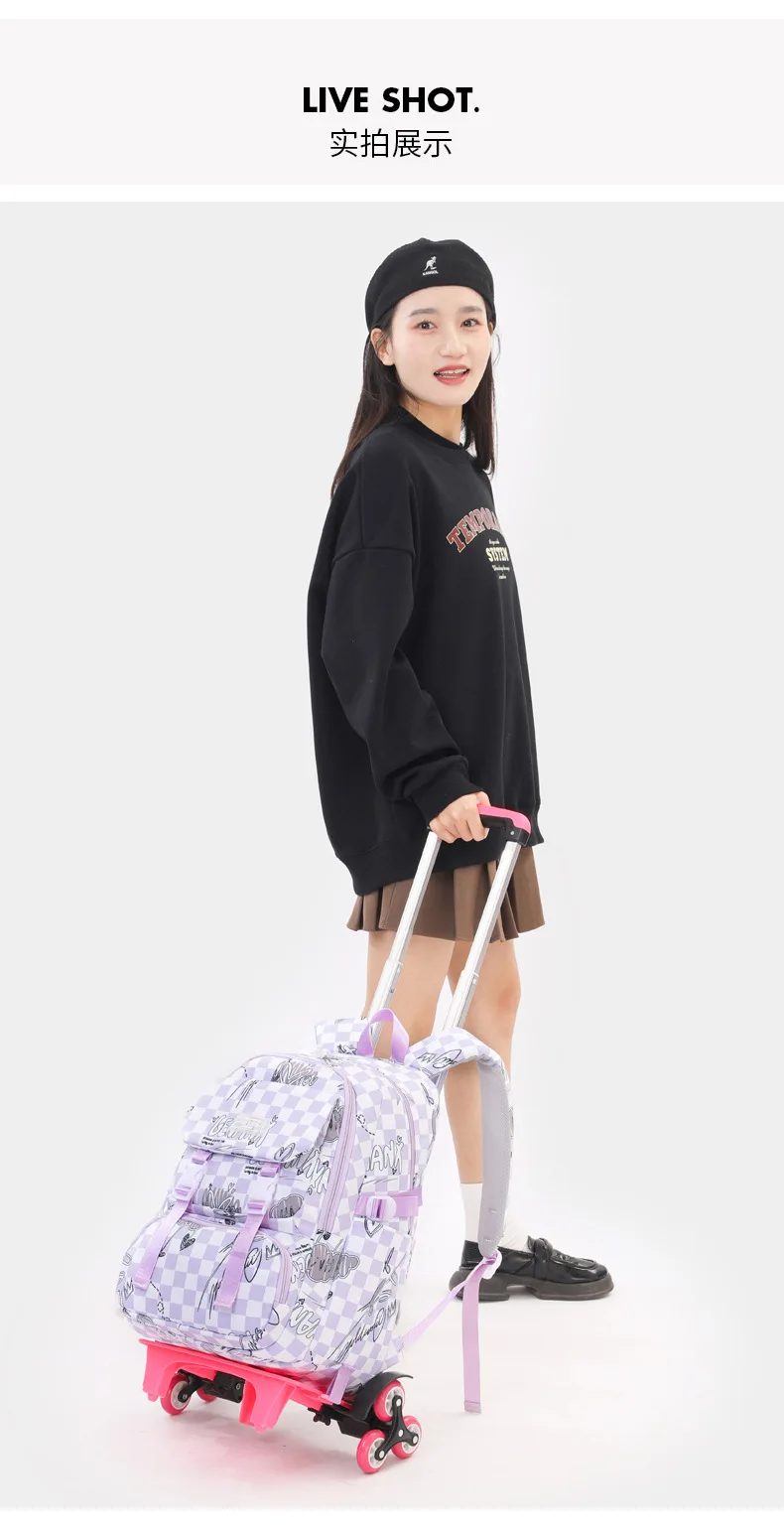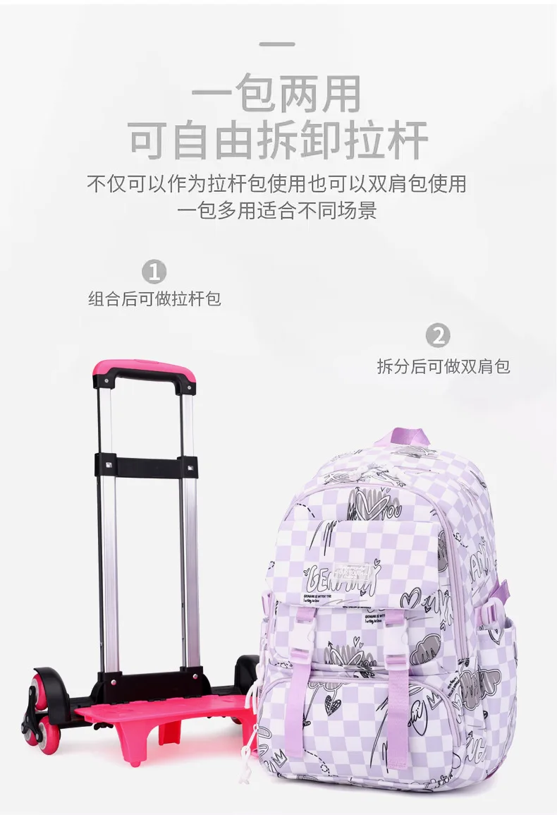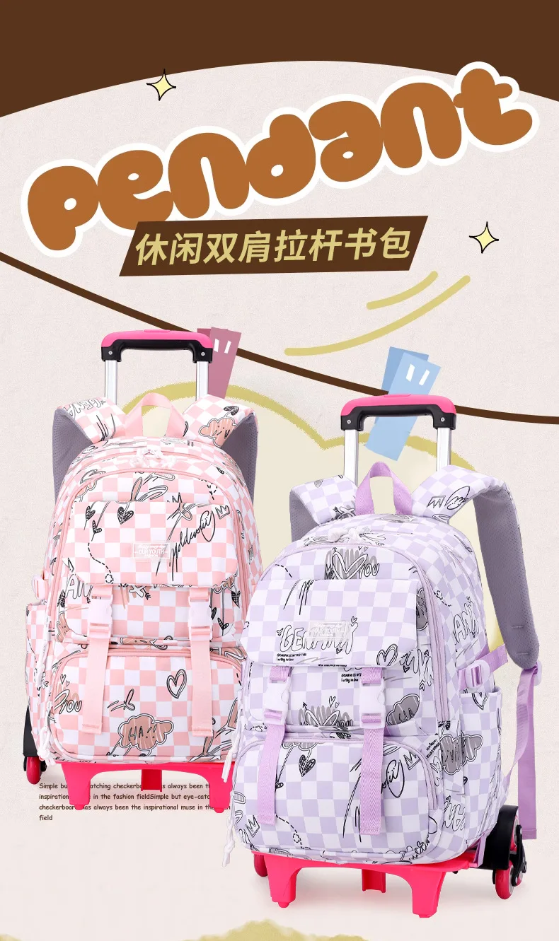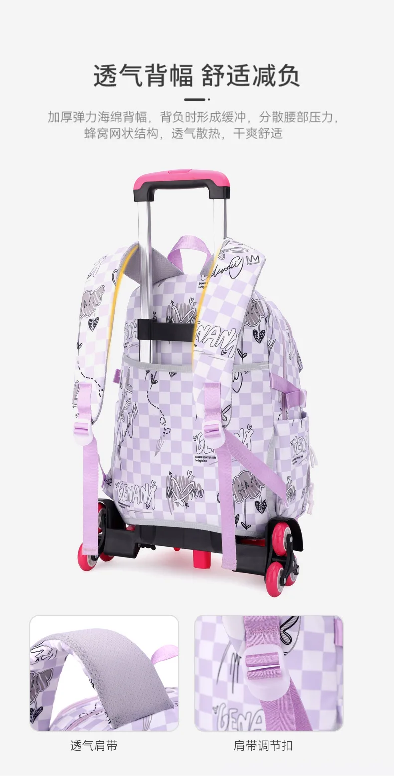 Kids School Backpack with Wheels Rolling Backpack for Girls Student Wheeled Backpack Trolley School Bag Travel Trolley Luggage