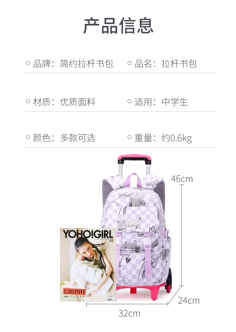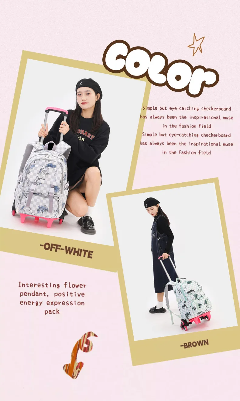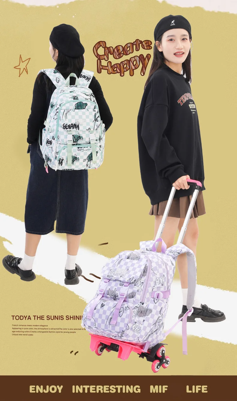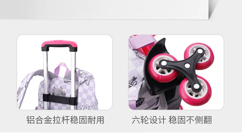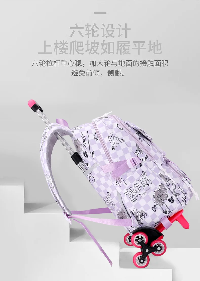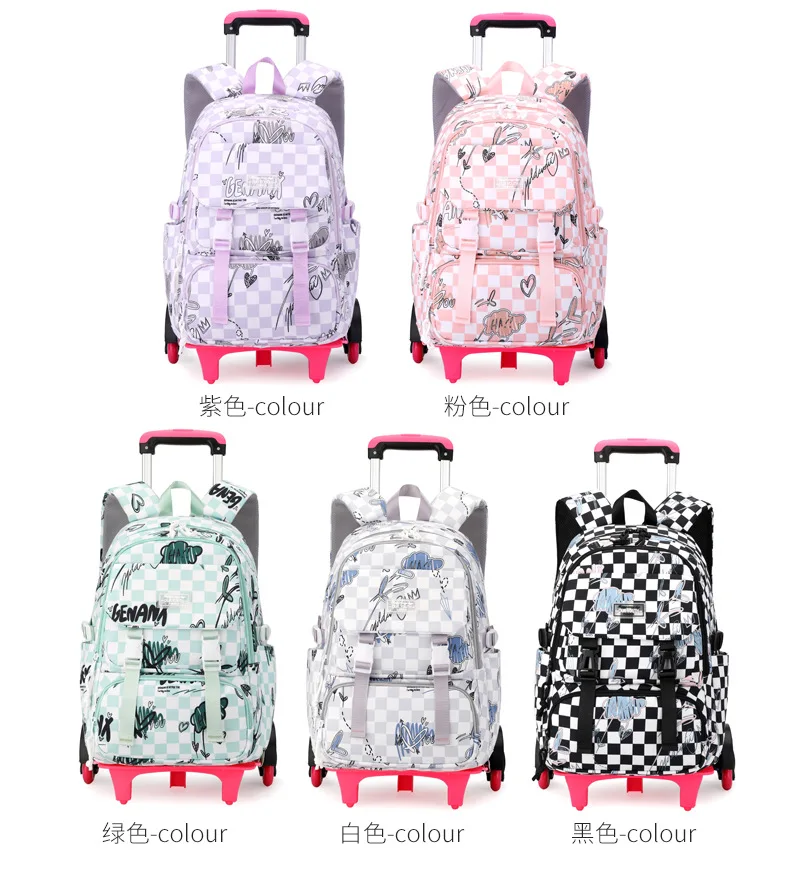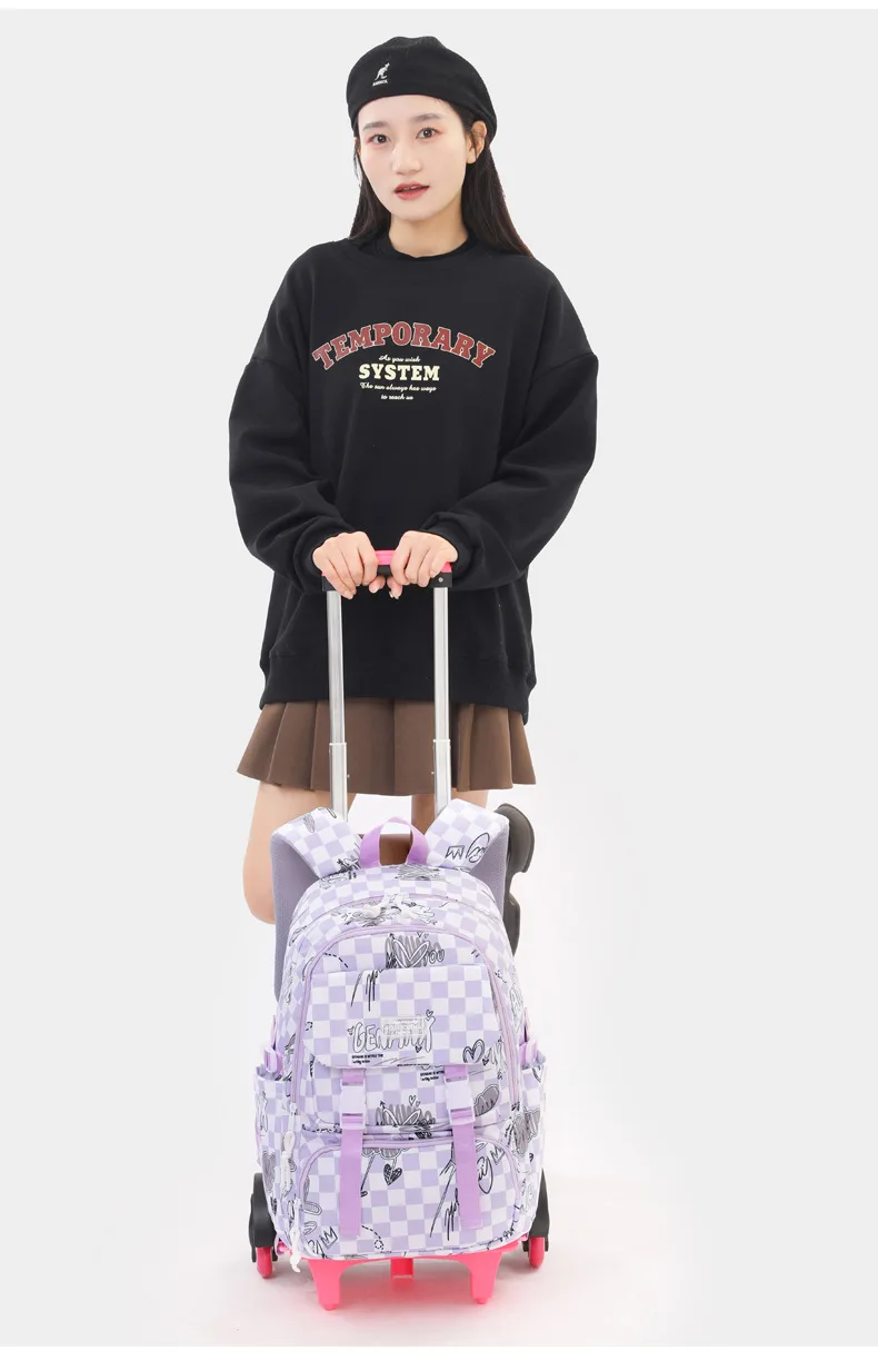 Kids School Backpack with Wheels Rolling Backpack for Girls Student Wheeled Backpack Trolley School Bag Travel Trolley Luggage