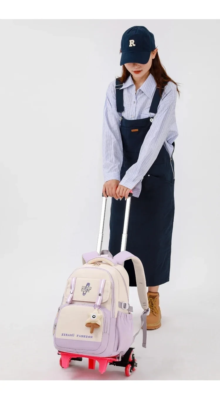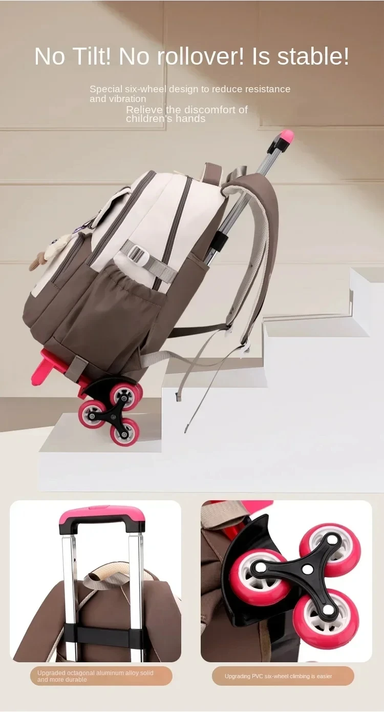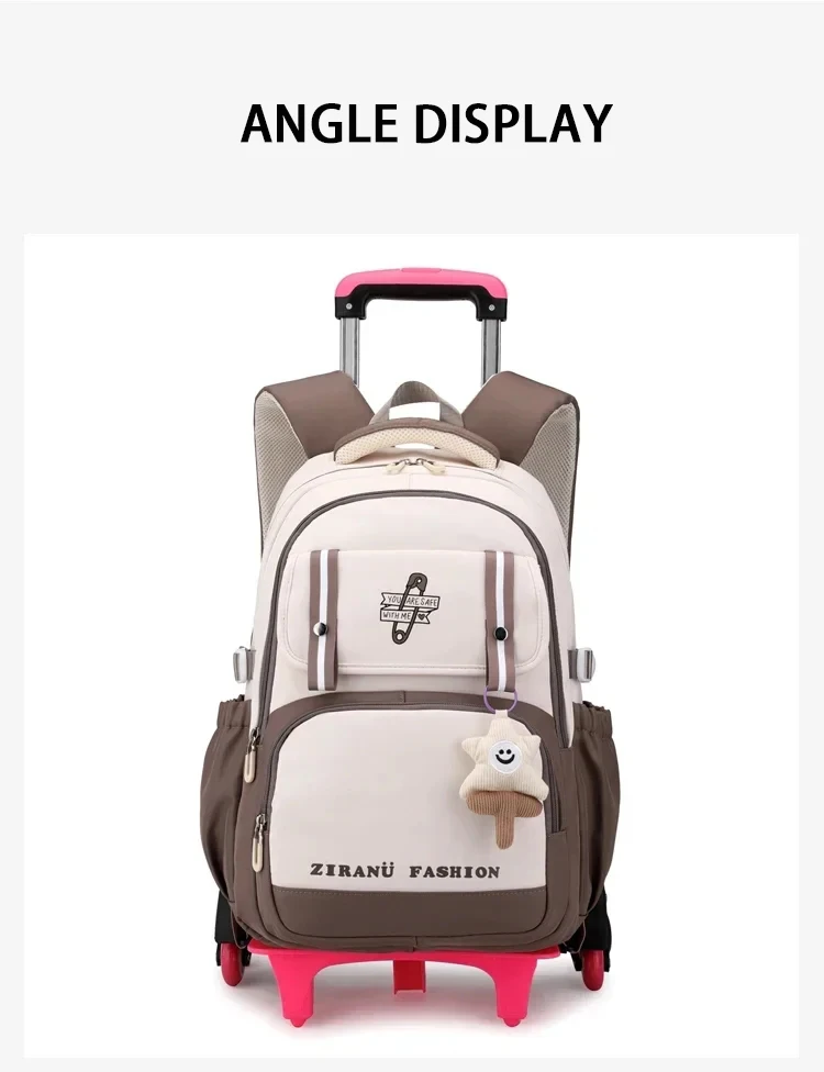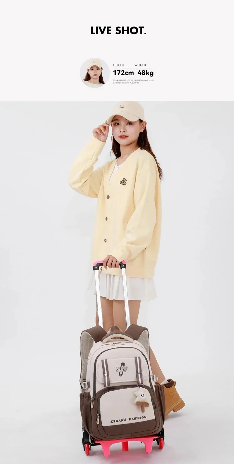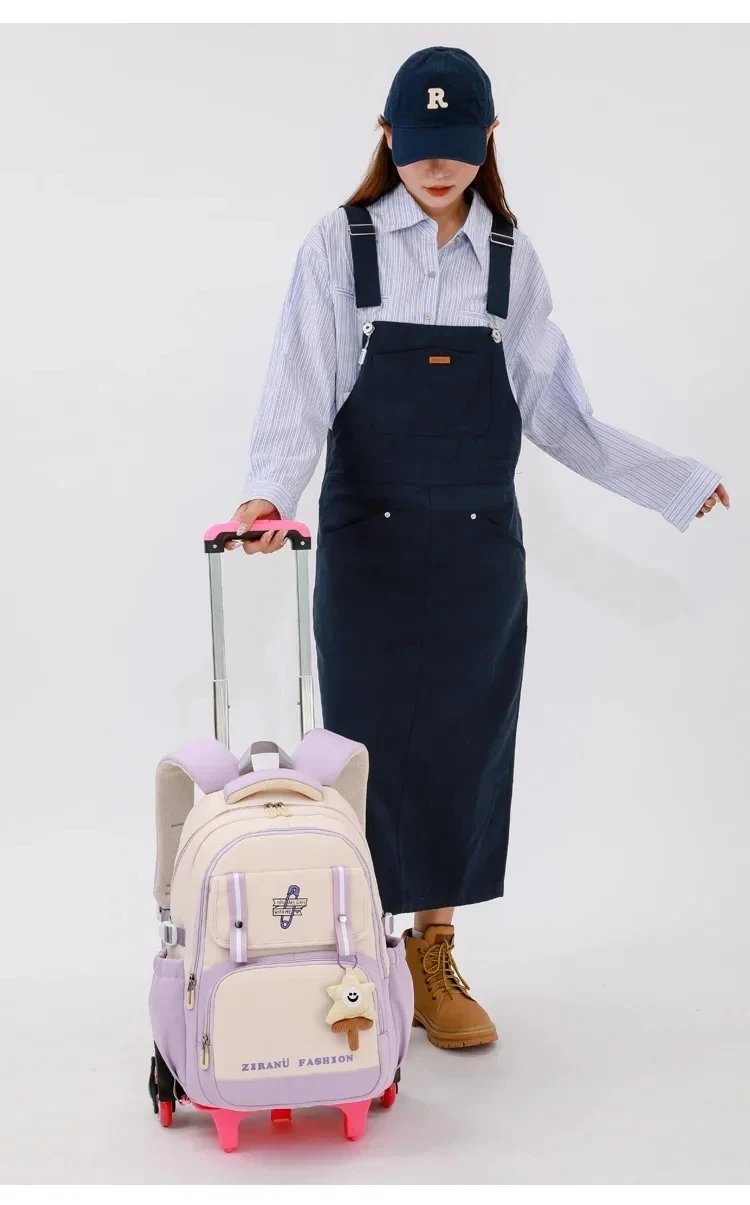 Kids School Backpack with Wheels Rolling Backpack for Girls Student Wheeled Backpack Trolley School Bag Travel Trolley Luggage