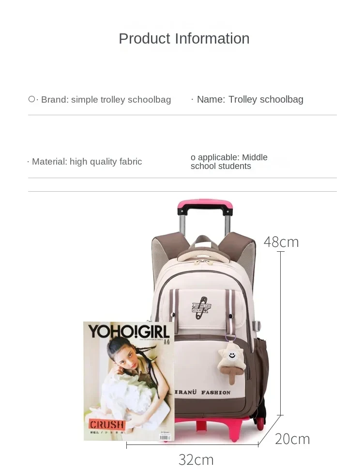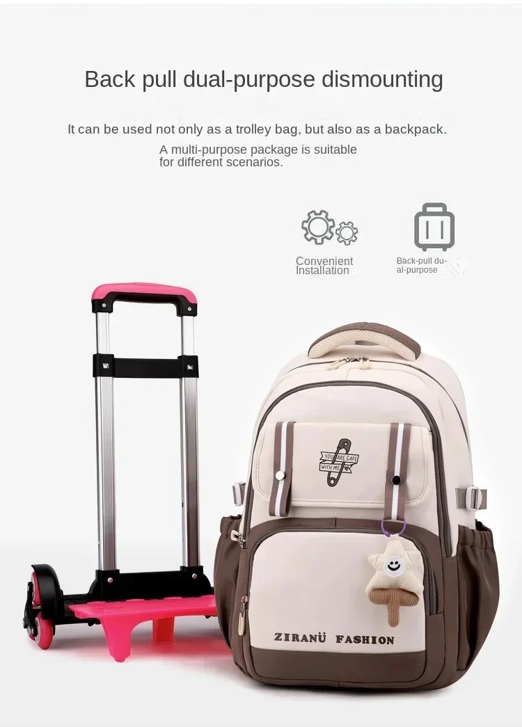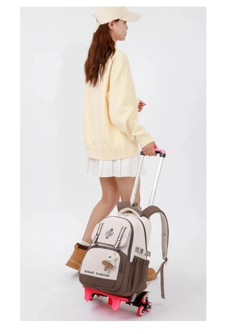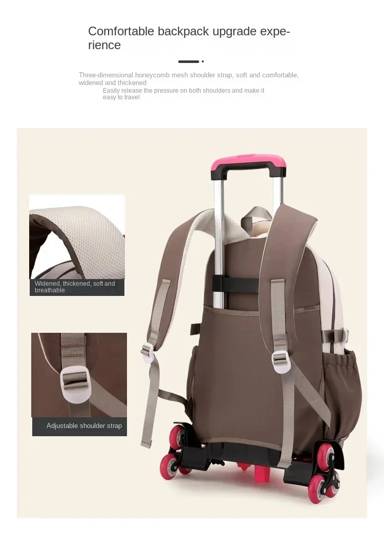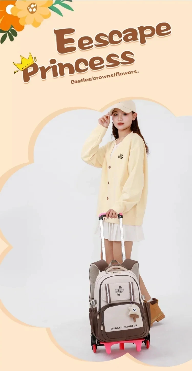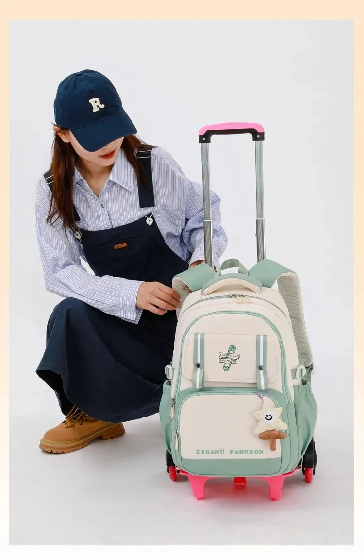 Kids School Backpack with Wheels Rolling Backpack for Girls Student Wheeled Backpack Trolley School Bag Travel Trolley Luggage