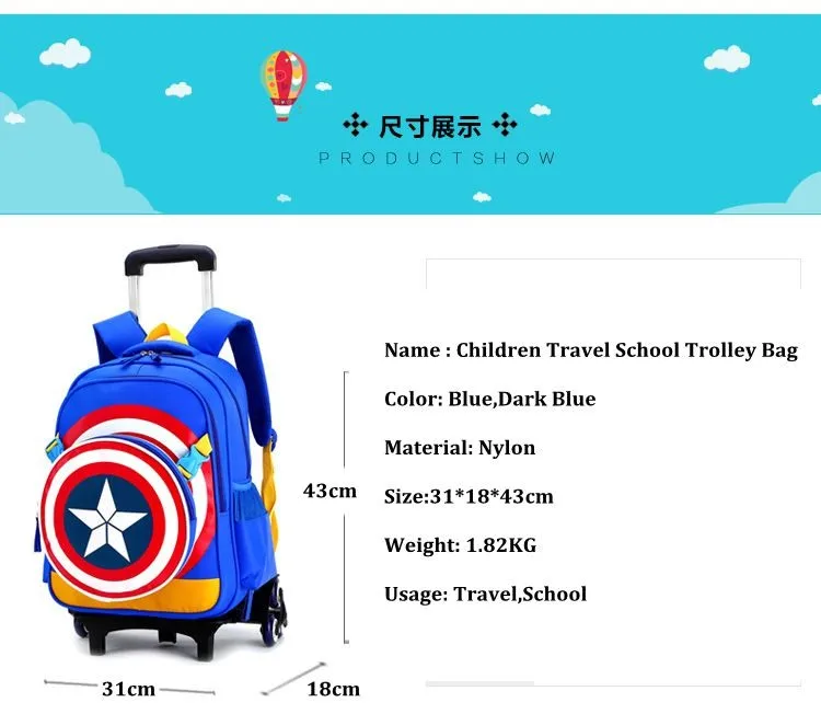 kids wheeled backpack for boys school bag with wheels Children School trolley bags travel luggage School Rolling backpack Bags