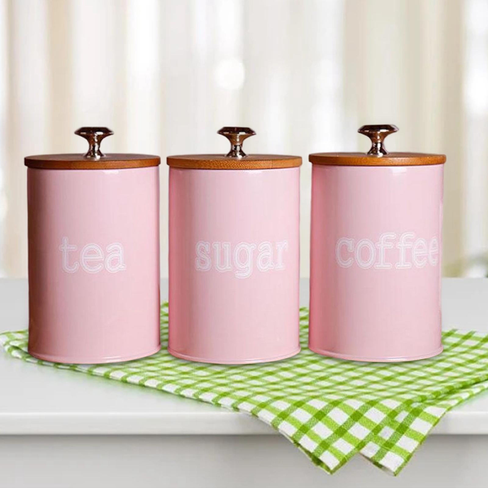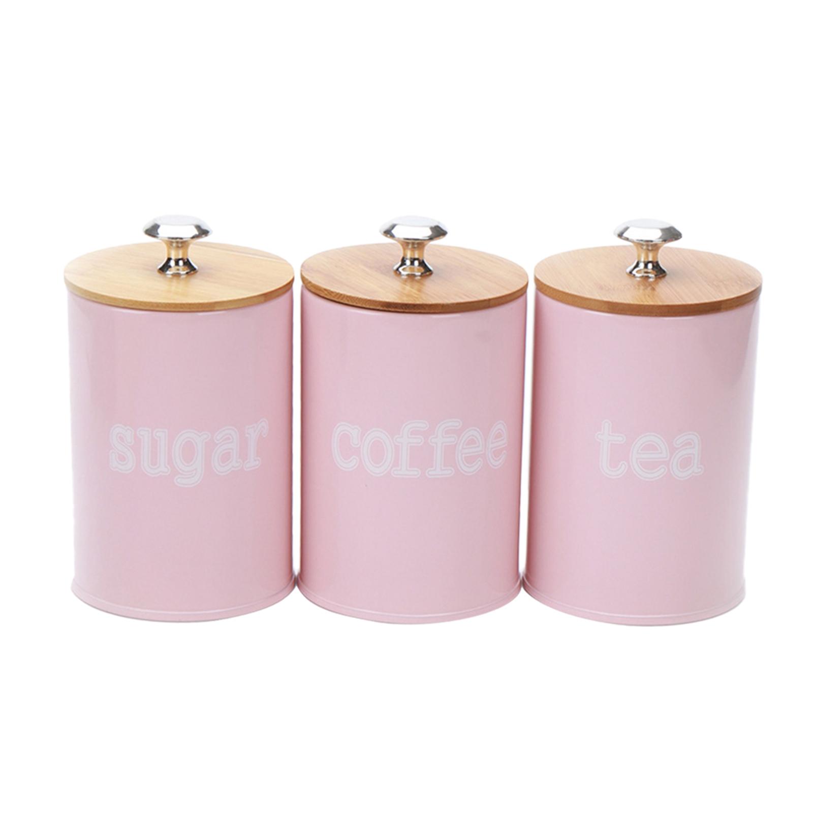 Kitchen Metal Spice Seasoning Canister Set Tea Coffee Storage Pots Pink