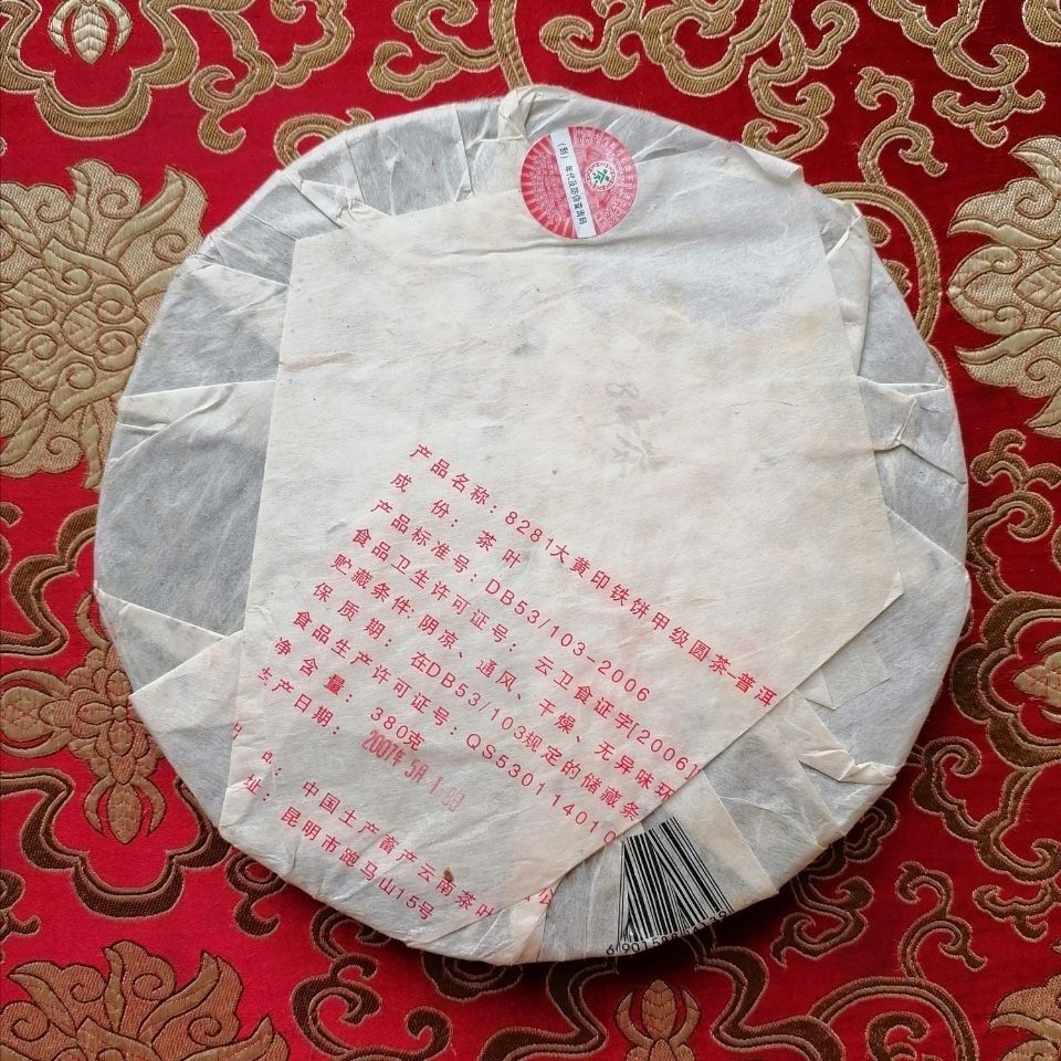 Product detail: Kunming Tea Factory CNNP 8281 Big Yellow Label Pu'er Iron Cake Tea 2007 380g Raw Tea Type: Puer Tea RAW Product date: 2007 Year Packing specification: 380g / Pcs Storage: Avoid sunlight, ventilation places Shelf time: The longer the better