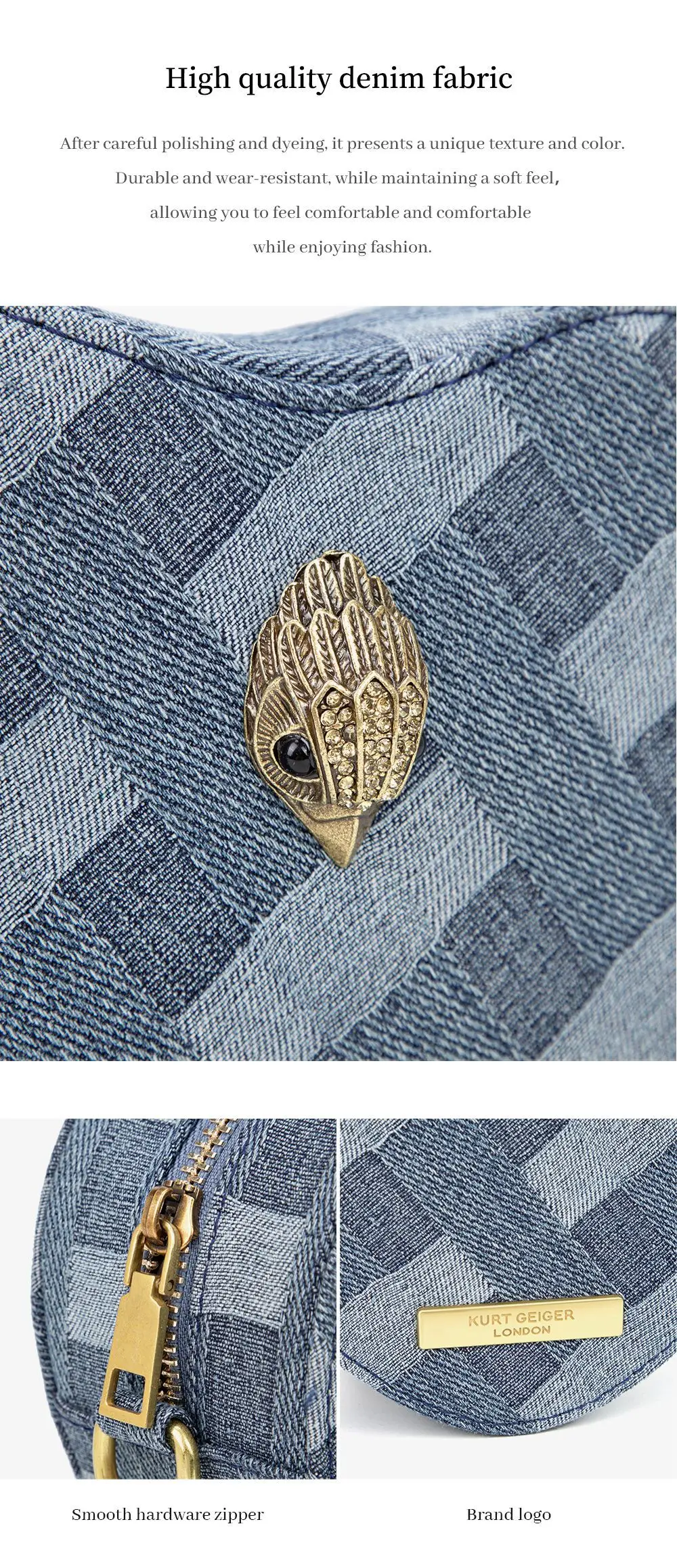 KURT GEIGER LONDON Shoulder Bags Denim Women's Bag Chain Crossbody Bag Luxury Brand Designer Handbag Fashion Mobile Phone Bag