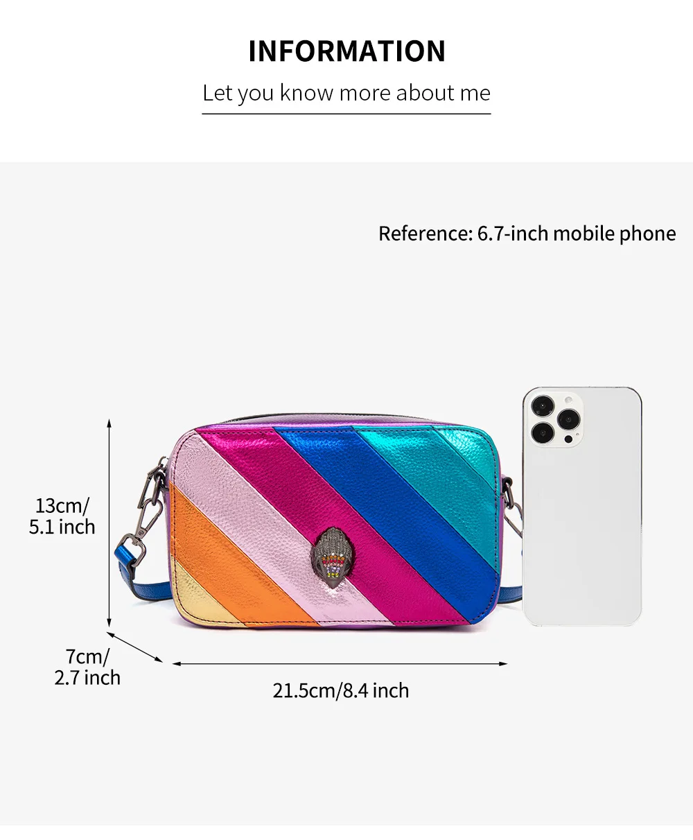 KURT GEIGER LONDON Women Shoulder Bag Luxury Brand Rainbow Camera Bag Designer Retro Eagle Head Classic Chain Handbag For Women