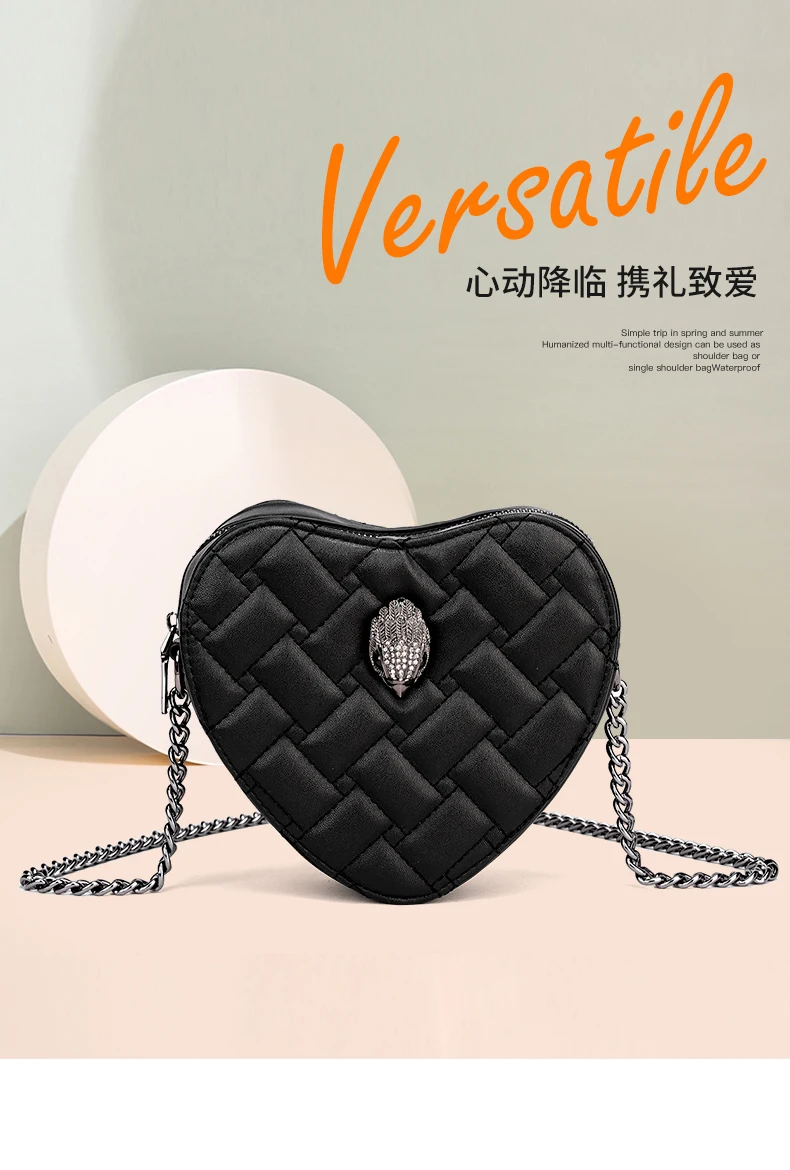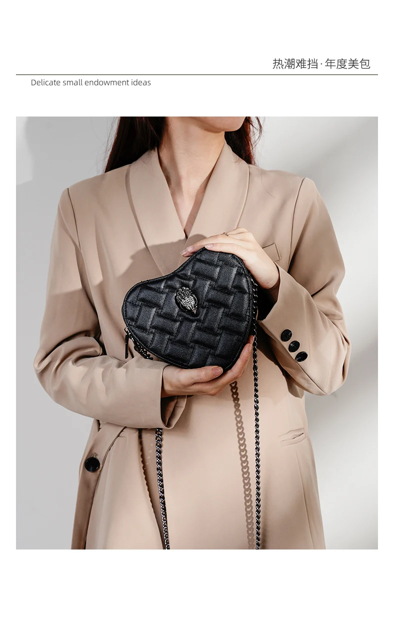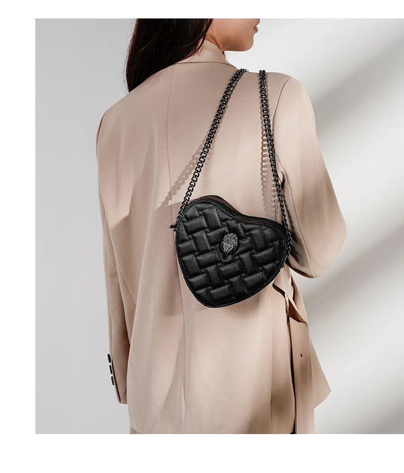 KURT GEIGER LONDON Y2K Retro Fashion Women Chain Shoulder Bag Mini Heart Shaped Black Small Handbags Crossbody Bags Hot Tote Bag
