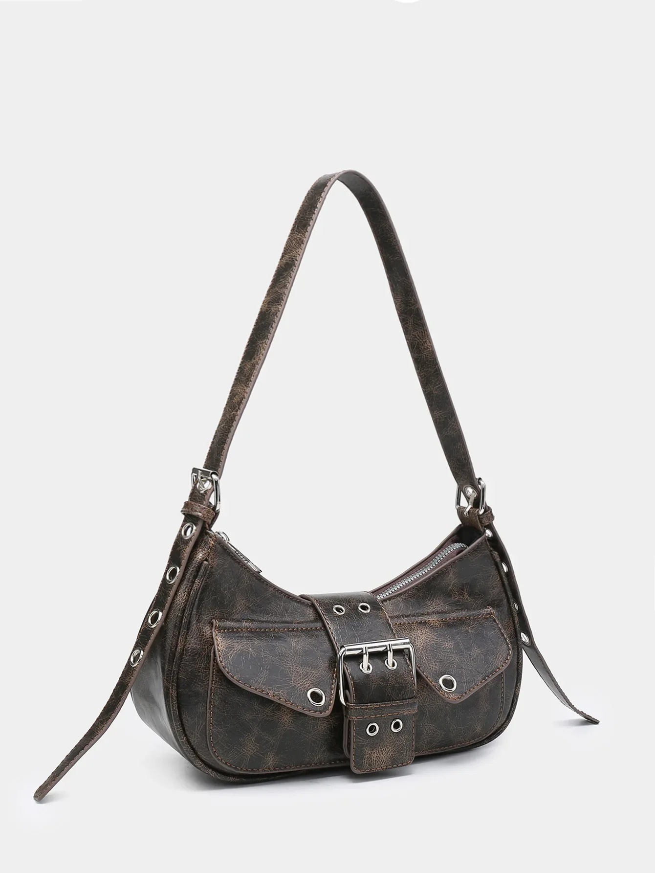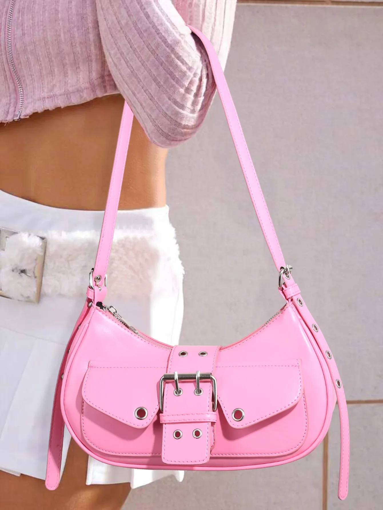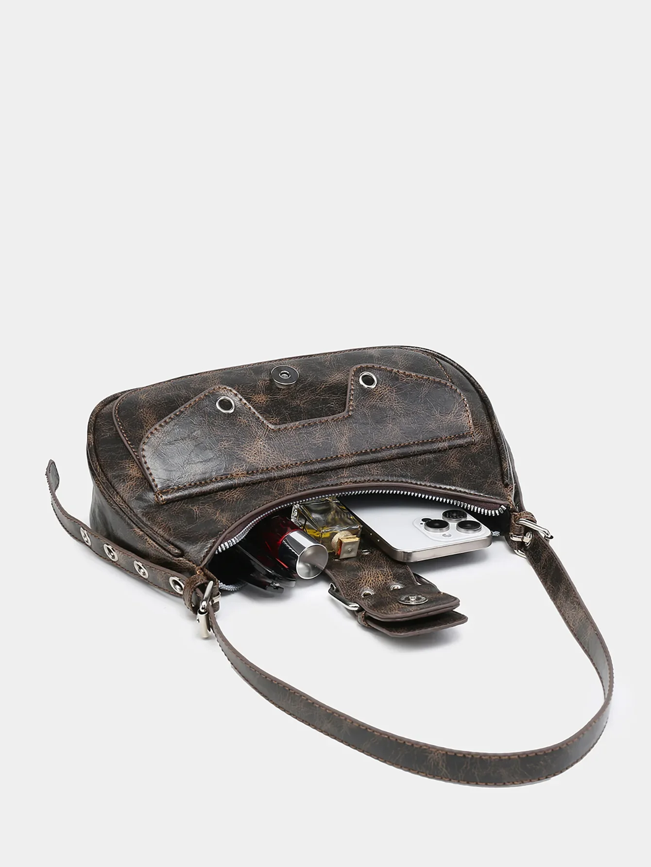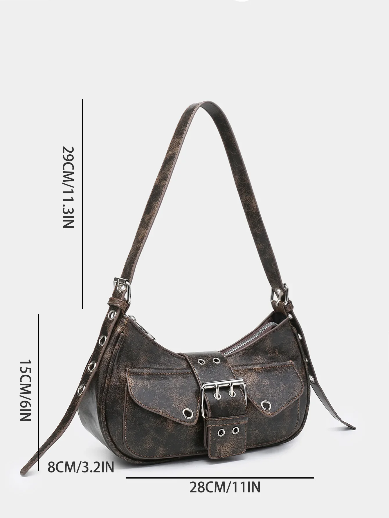 Ladies Retro Punk Leather Underarm Bags Multi Pocket Stylish Exquisite Shoulder Bags Daily Work Commuter Handbag Adjustable Tape