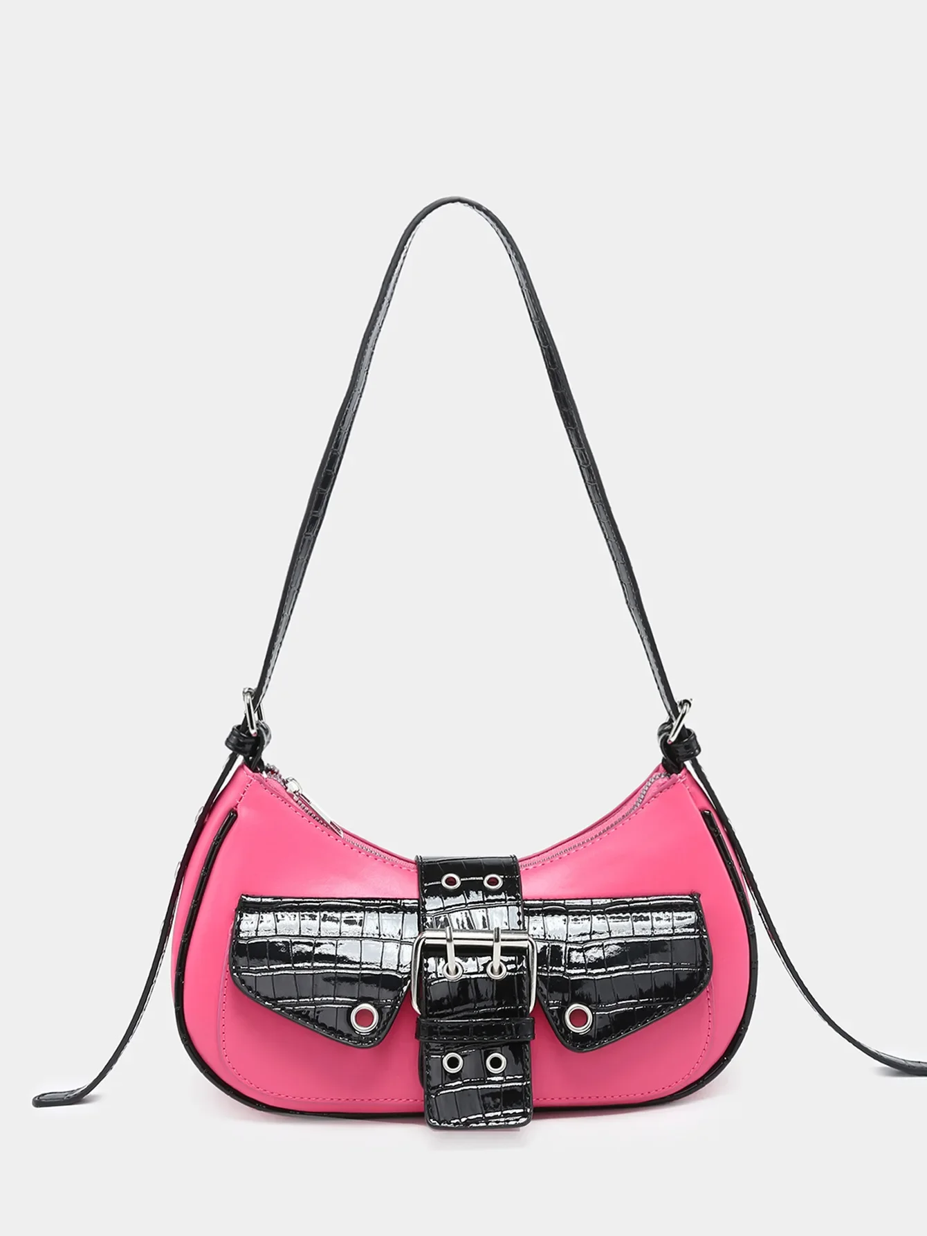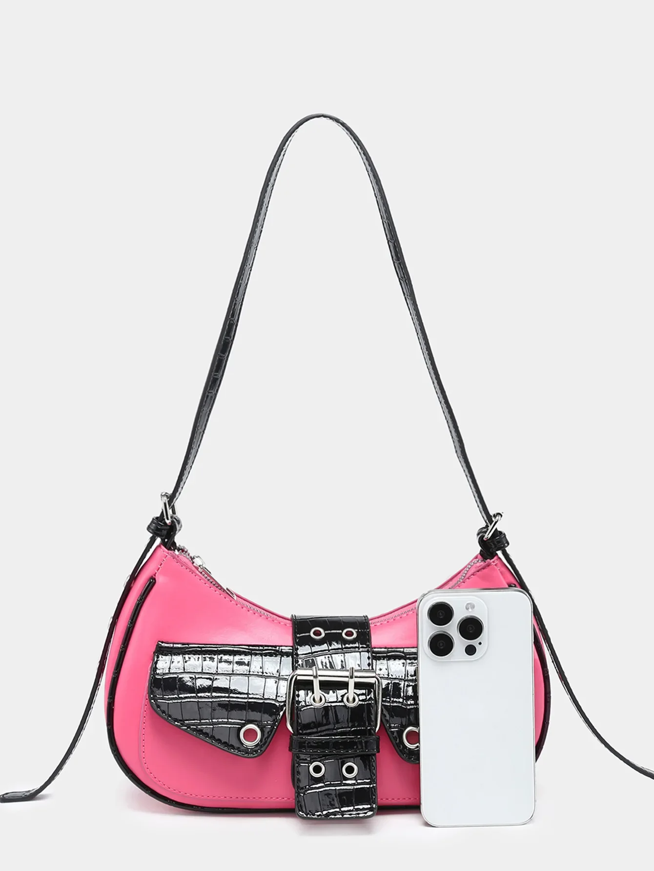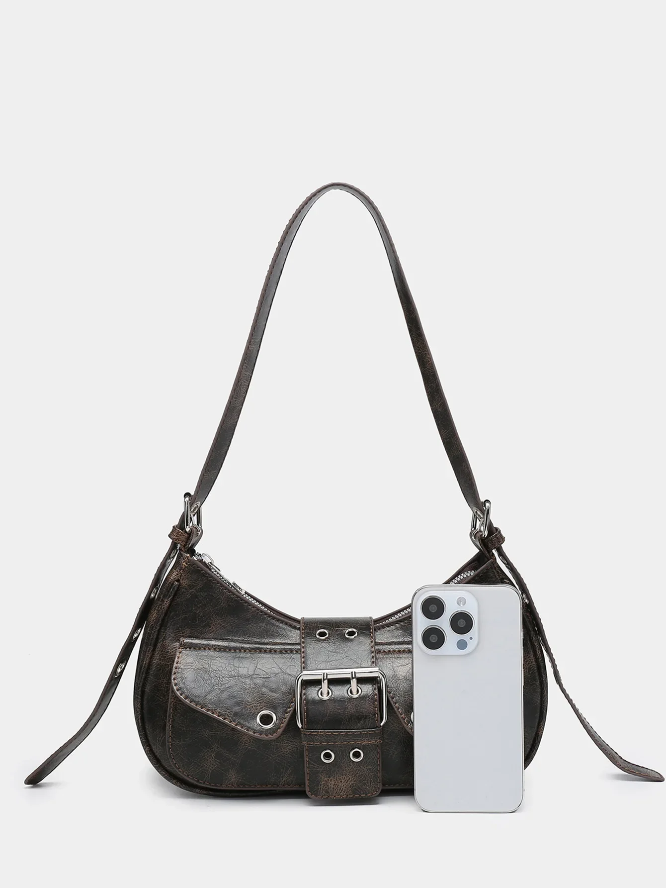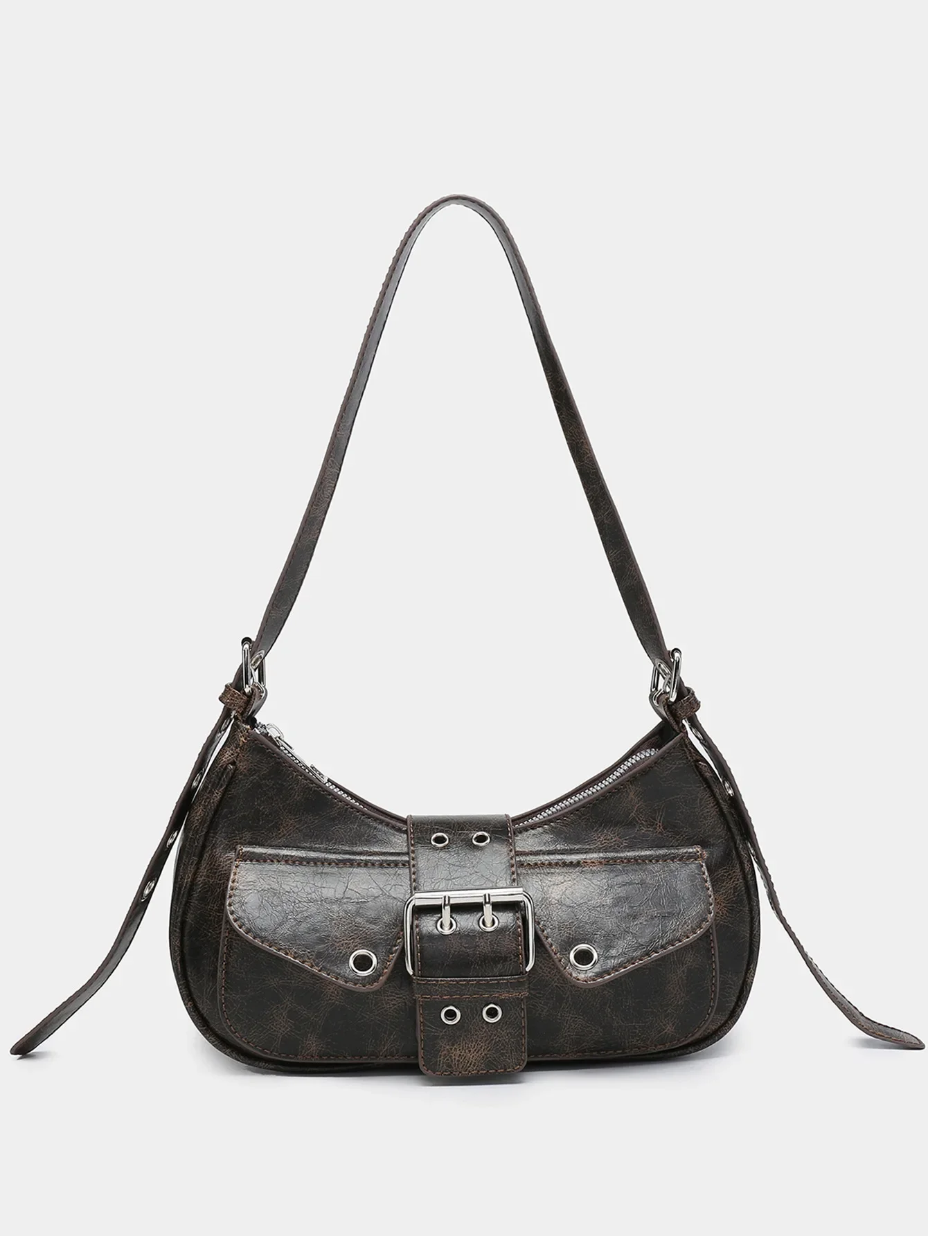 Ladies Retro Punk Leather Underarm Bags Multi Pocket Stylish Exquisite Shoulder Bags Daily Work Commuter Handbag Adjustable Tape