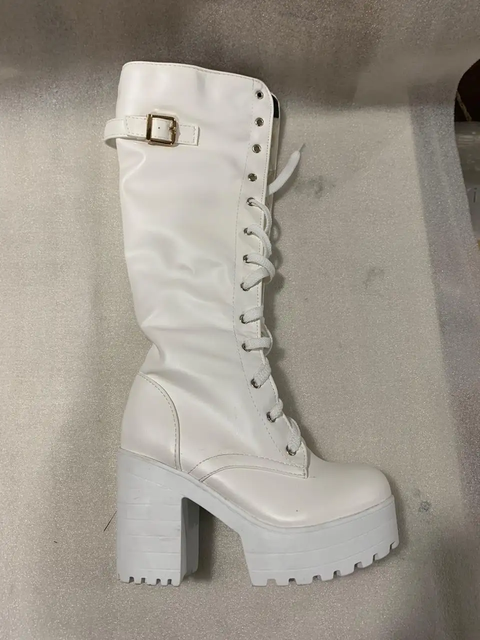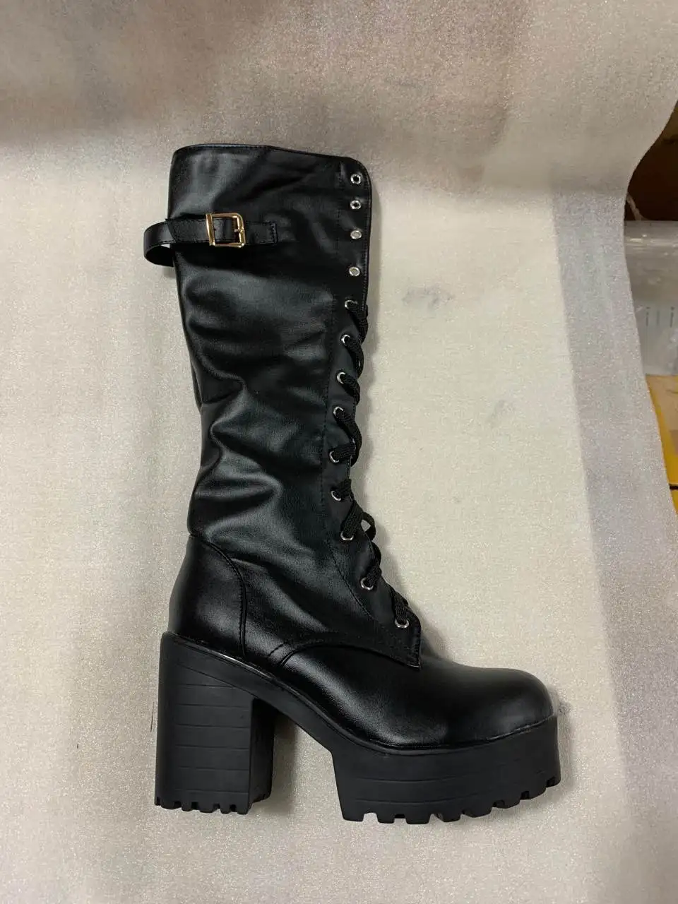 Ladies shoelace Belt Buckle Boots Women High Heels Date Shoes Woman