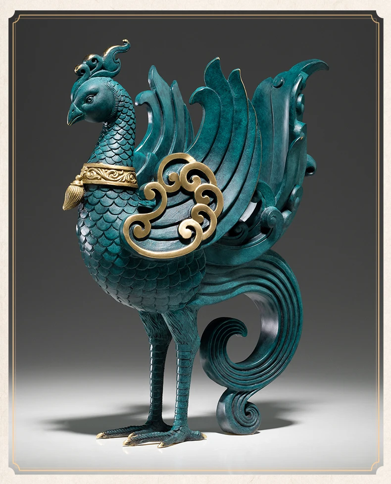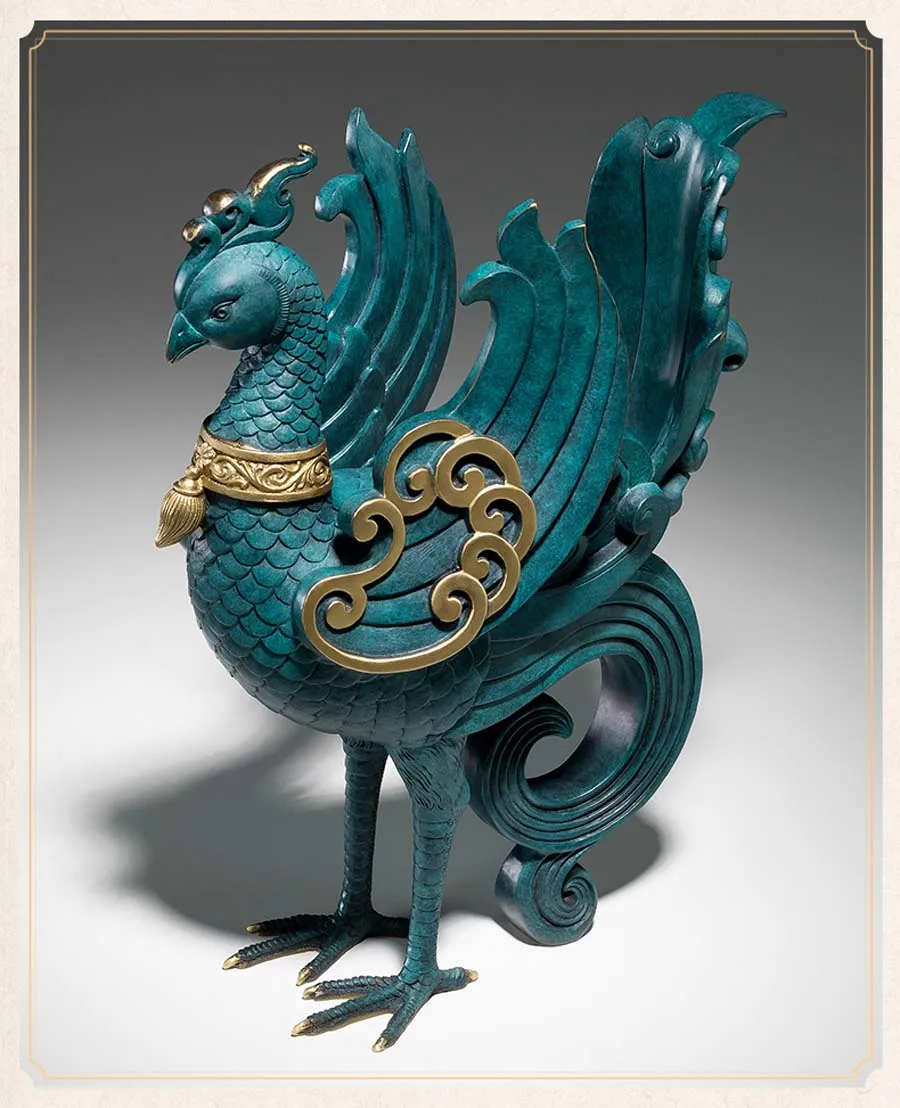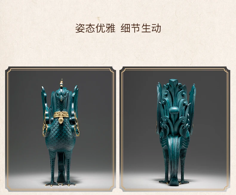 Lage TOP High grade Good LUCK Auspicious talisman brass Sculpture Home office Decor ART ZHU QUE statue Hand engraving