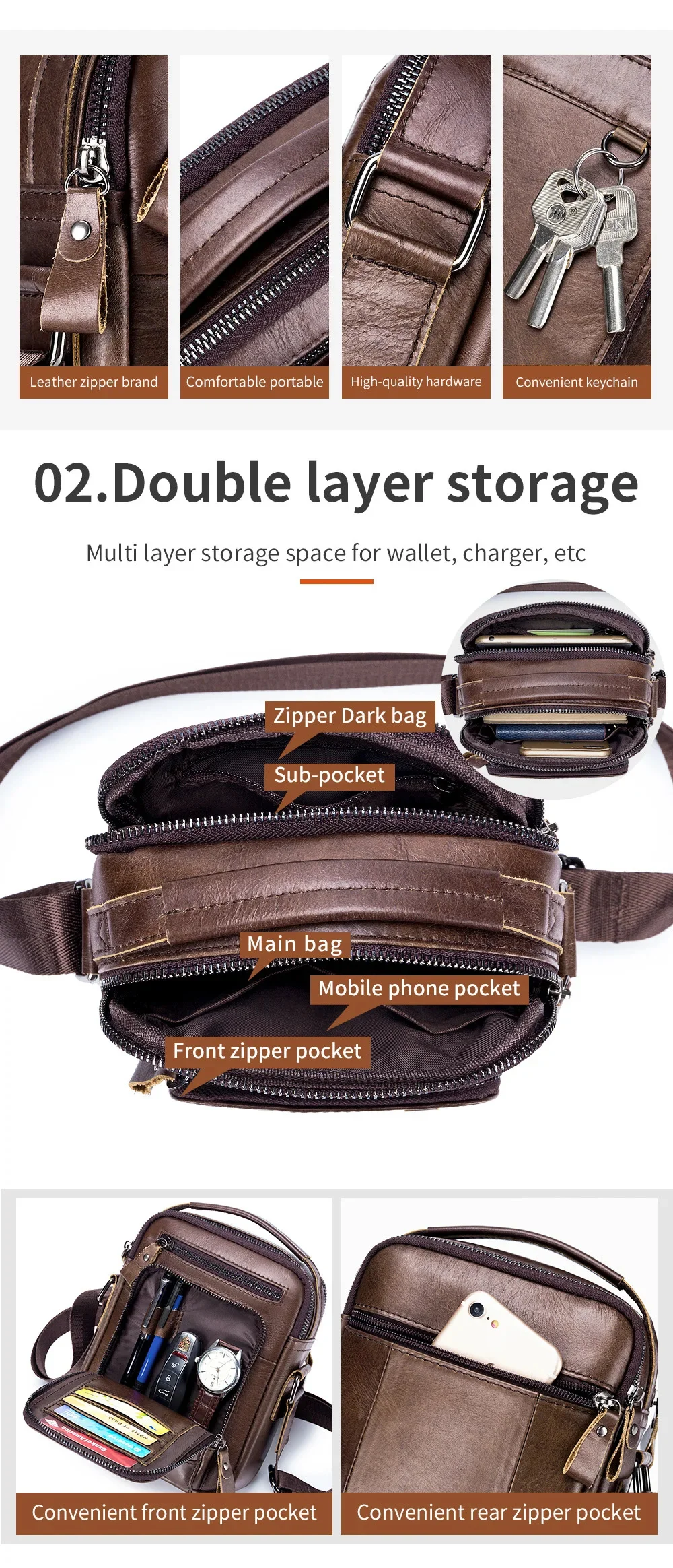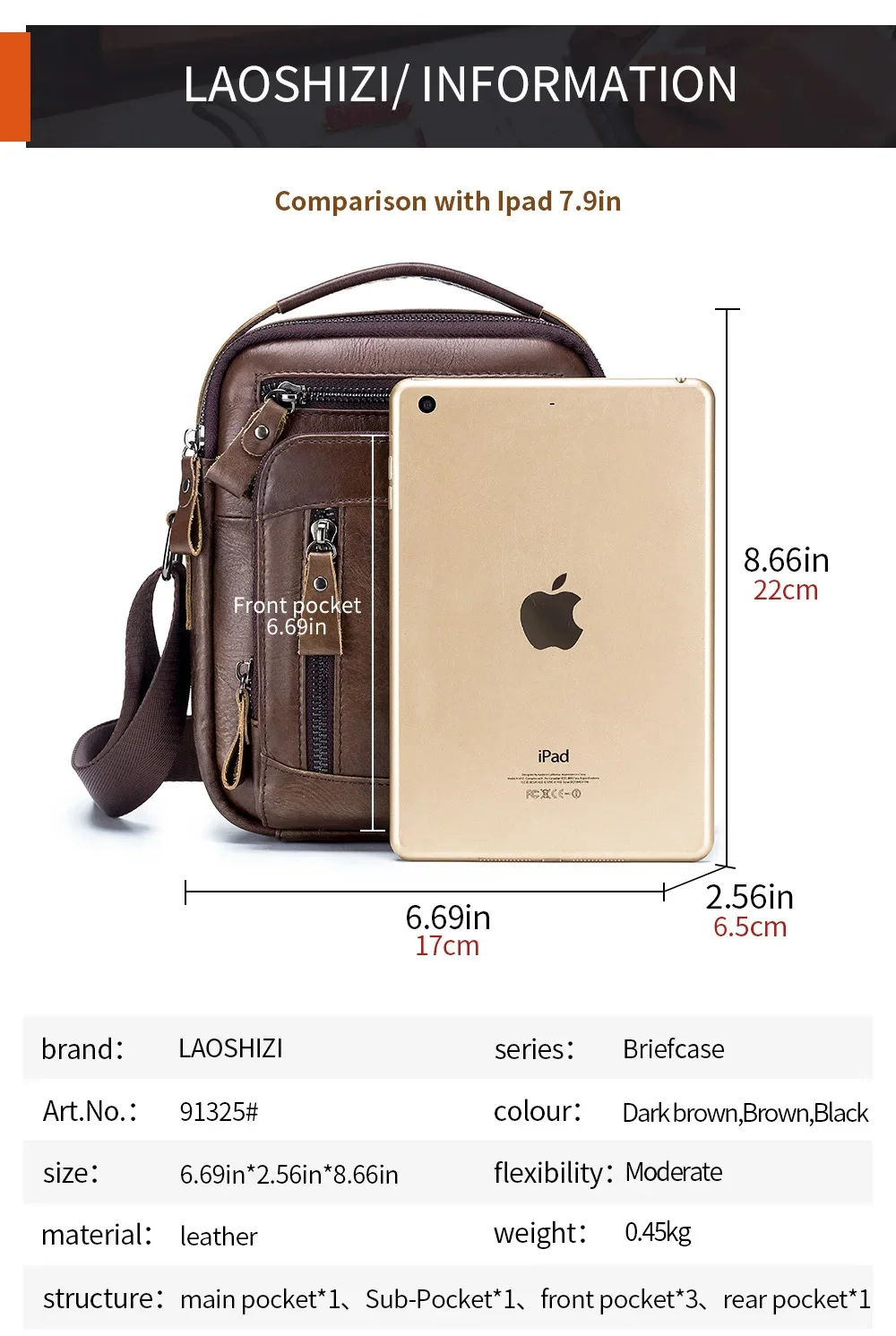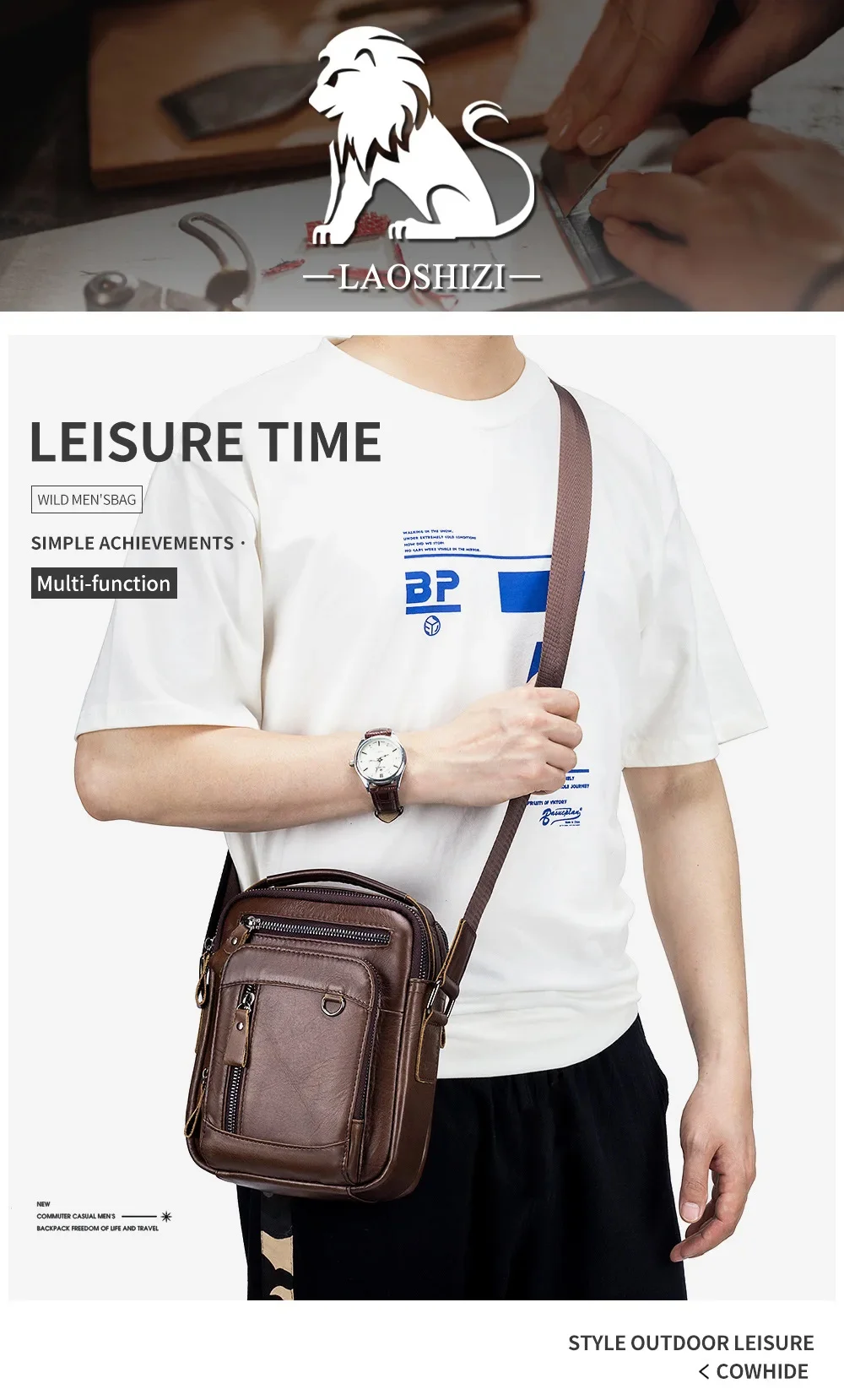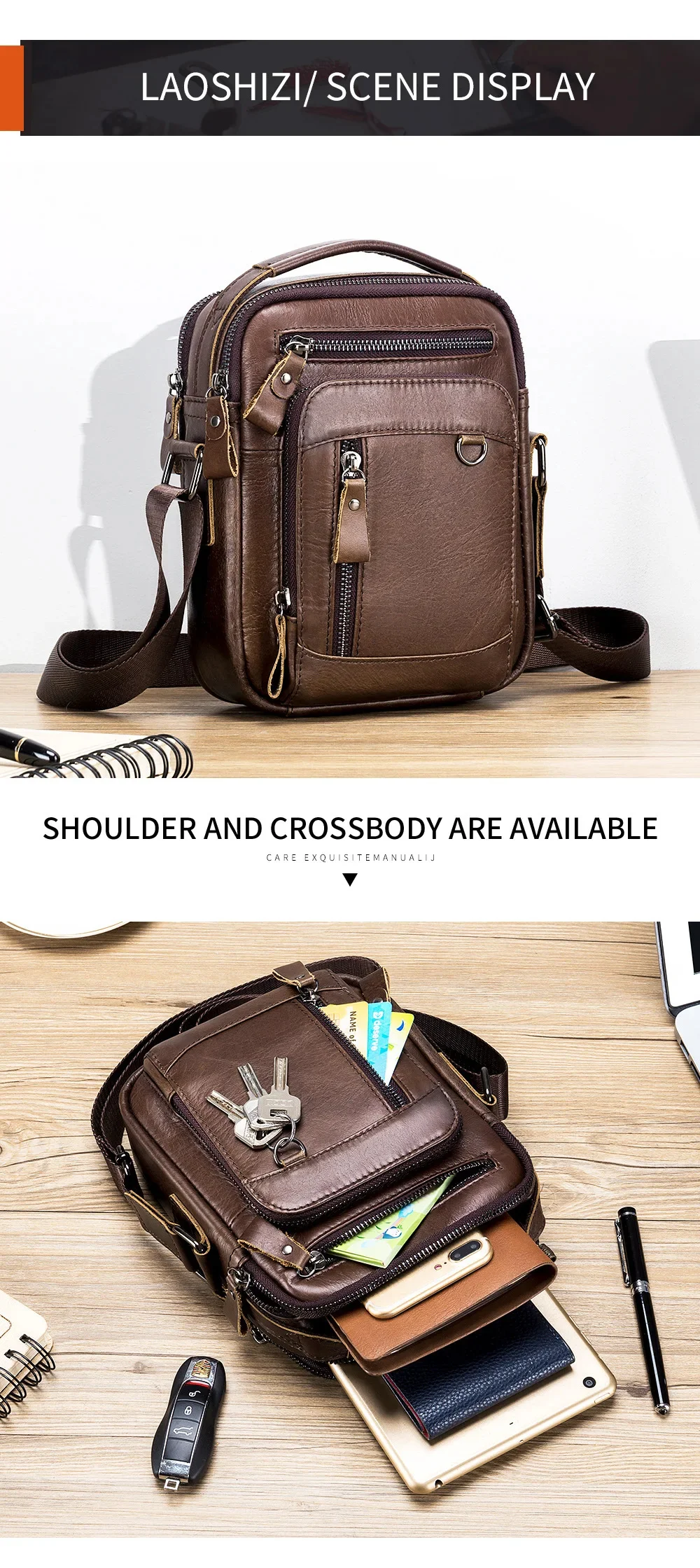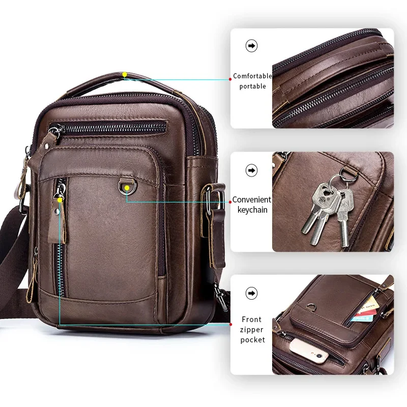 LAOSHIZI High-end Luxury Leather Shoulder Bag Leisure Business Crossbody Bags Large-capacity Multifunctional Men's Handbag