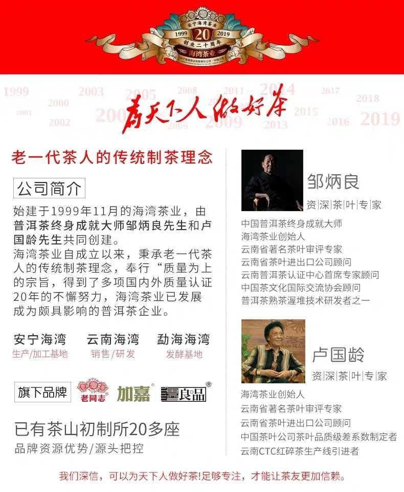 Manufacturer: Anning Haiwan Tea Industry Co., Ltd. Production Date: 2021 year Storage Time: The longer the better Weight: 500g/pc Origin: Anning, Yunnan, China Storage: Ventilation, cool, dry, no odor, long-term preservation in a pollution-free environment. Raw Materials: High quality Puer tea in Menghai, Yunnan