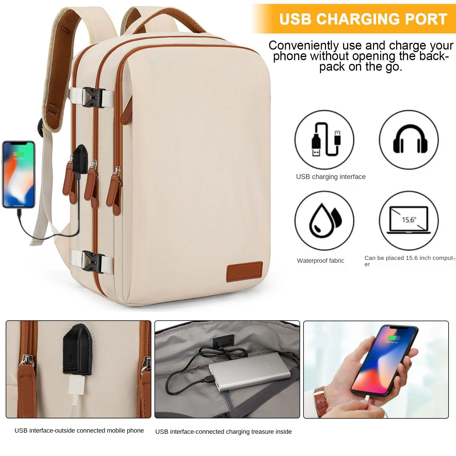 Laptop Bag Travel Backpack 16inch Teenage Girl USB Charging Travel Backpack Student School Large Capacity Fashion Computer Bag