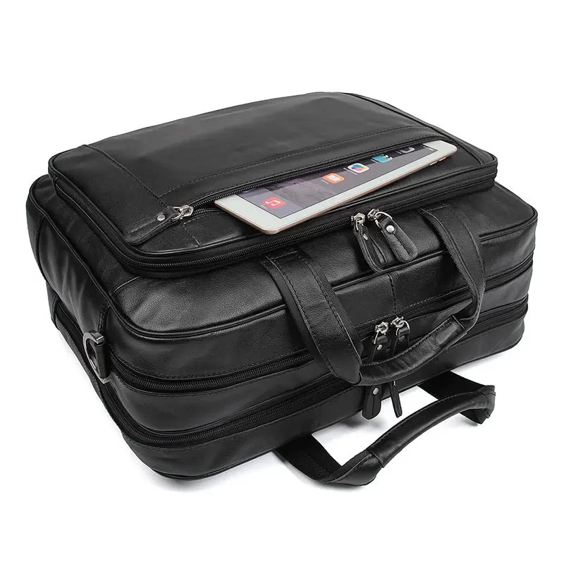 Large 15.6 inch Laptop Briefcase Men Genuine Leather Handbag Designer Fashion Male Travel Men's Cow Messenger Shoulder Bag