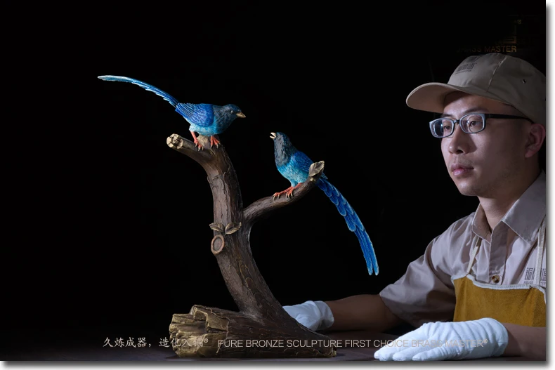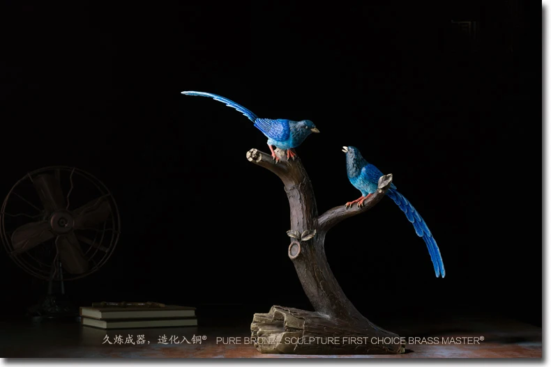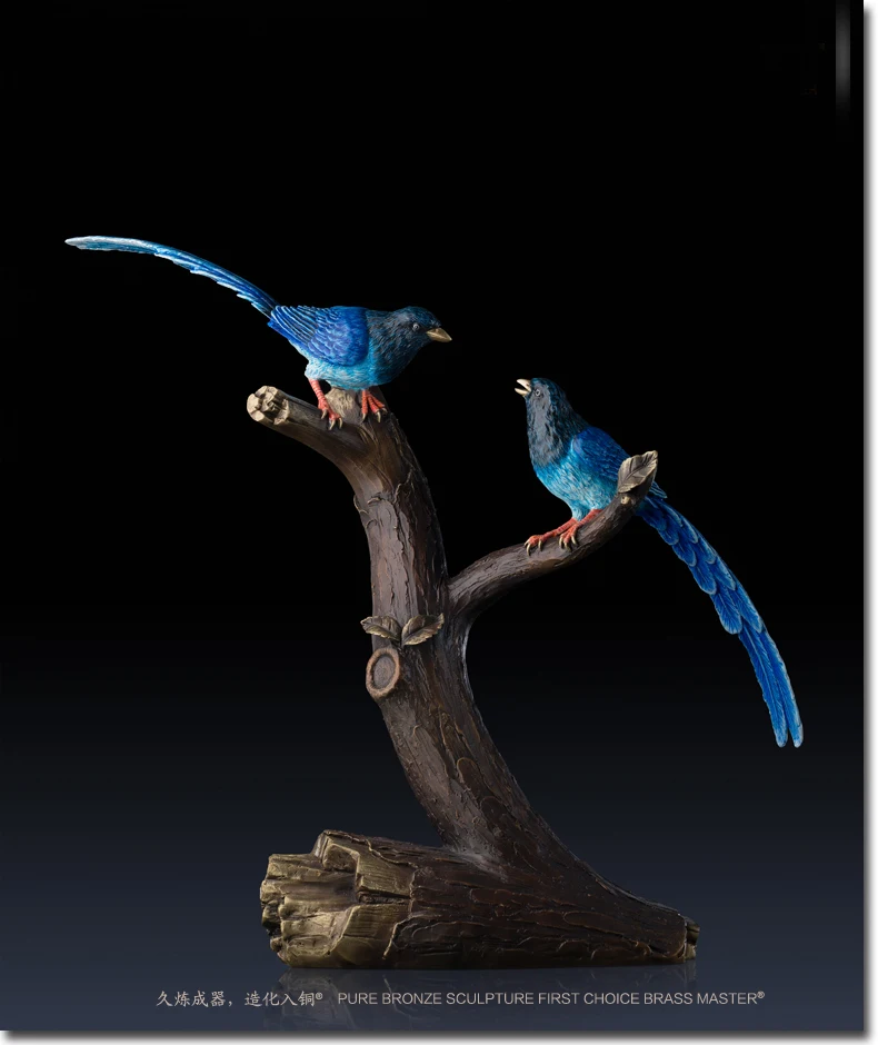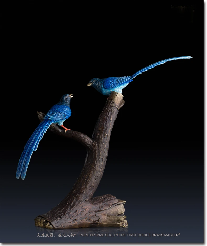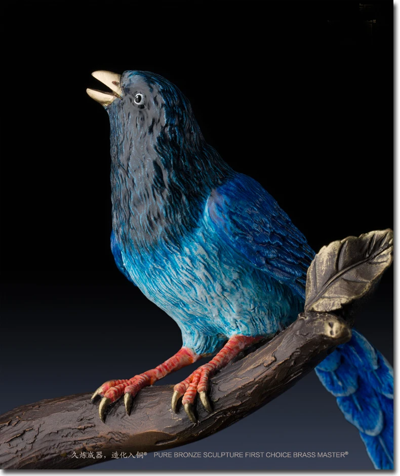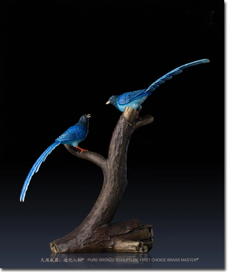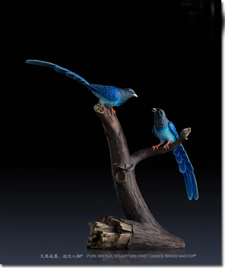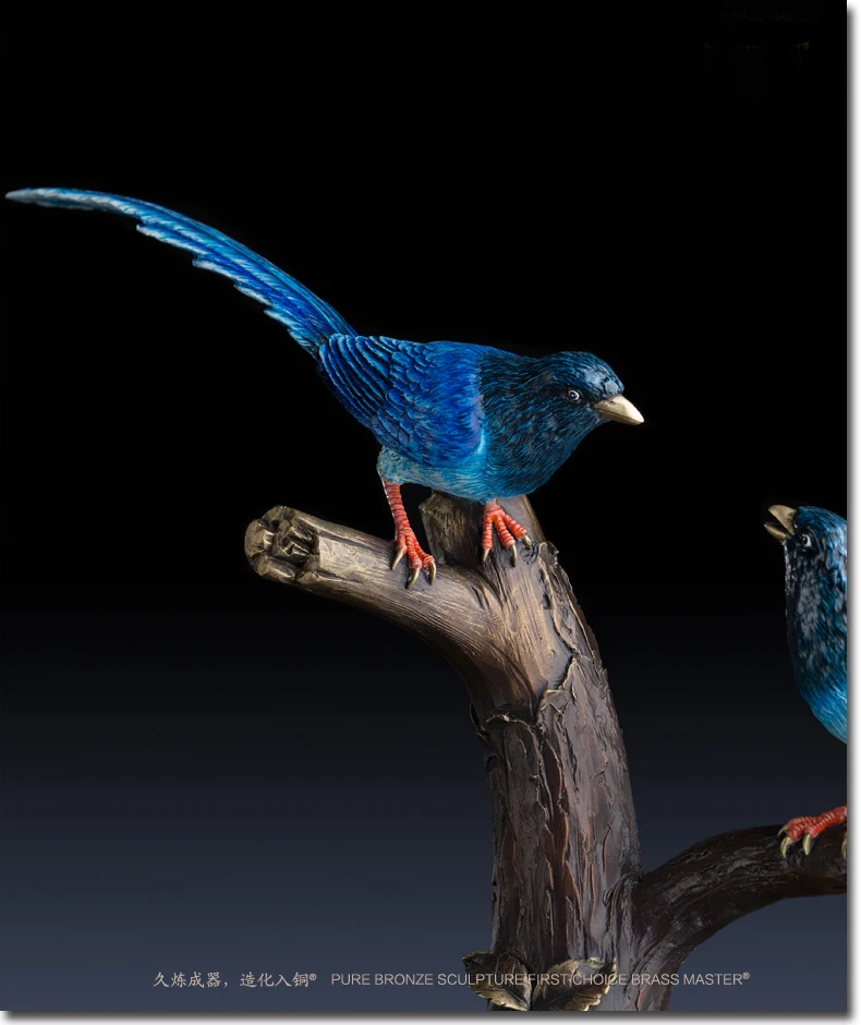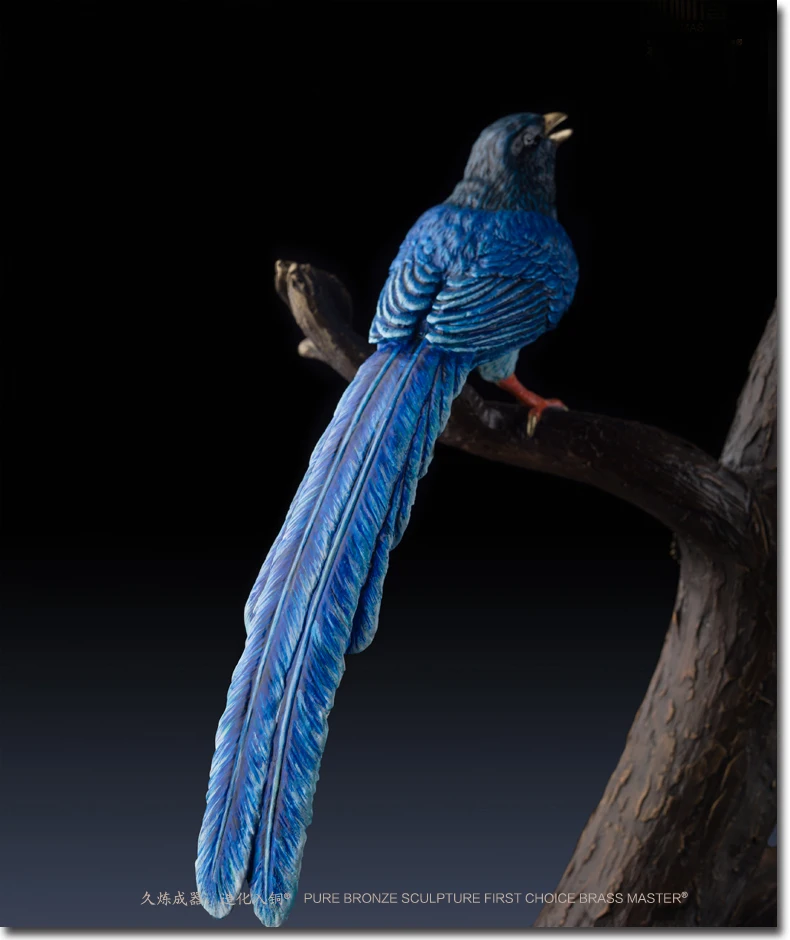 LARGE Limited Edition 2020 TOP Master art Collection Animal Blue Magpie Birds lucky propitious brass ART Mascot HOME office HALL