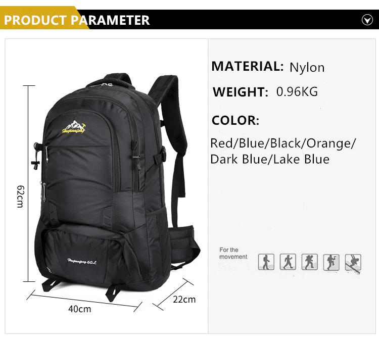 Large Capacity 60L Waterproof Climbing Backpack Rucksack Outdoor Sports Shoulder Bag For Men Women Trekking Camping Hiking Pack