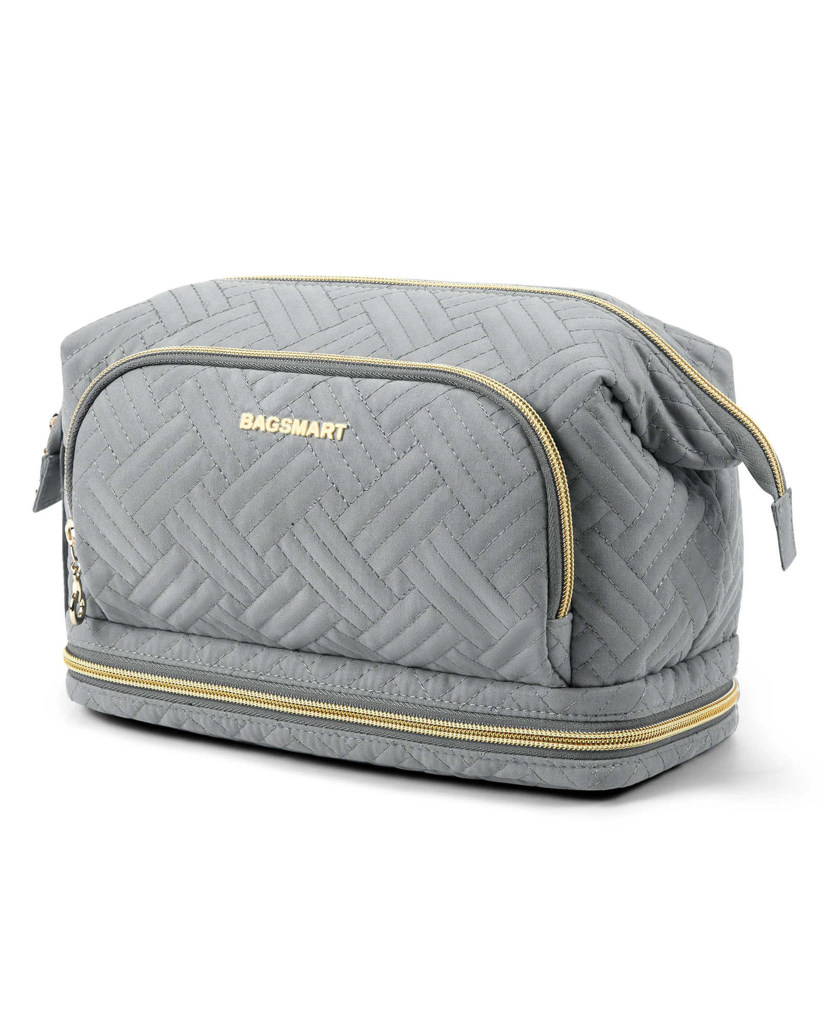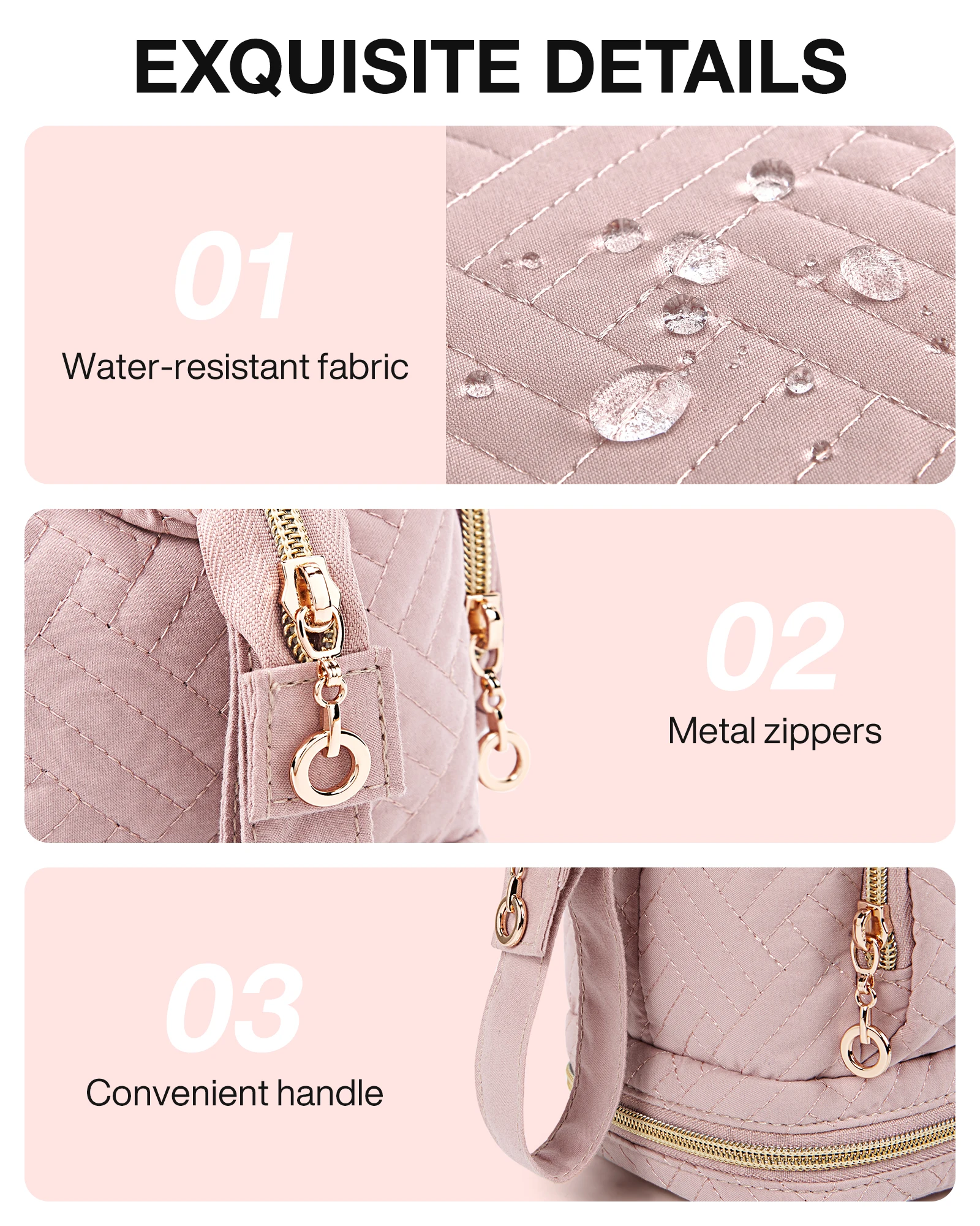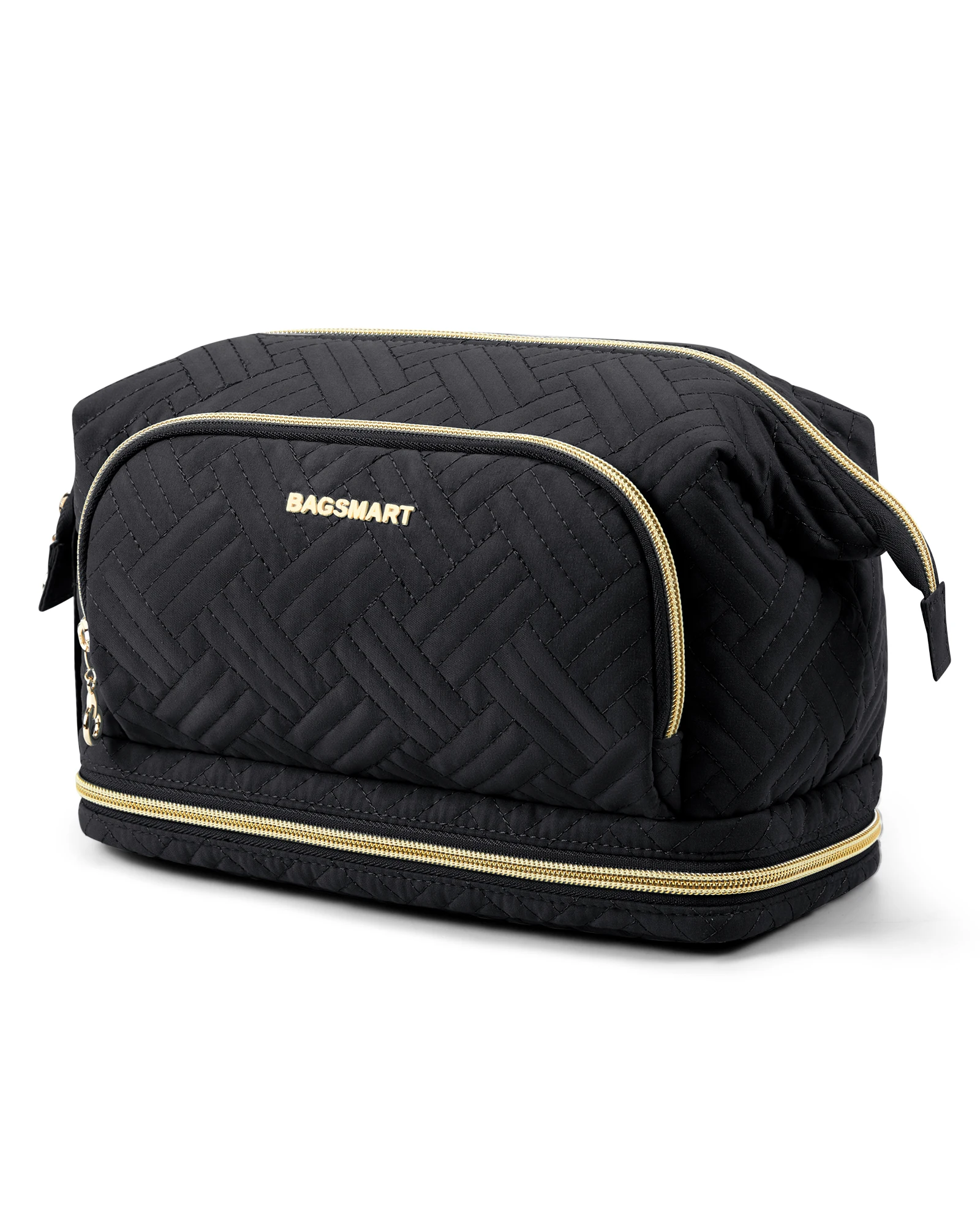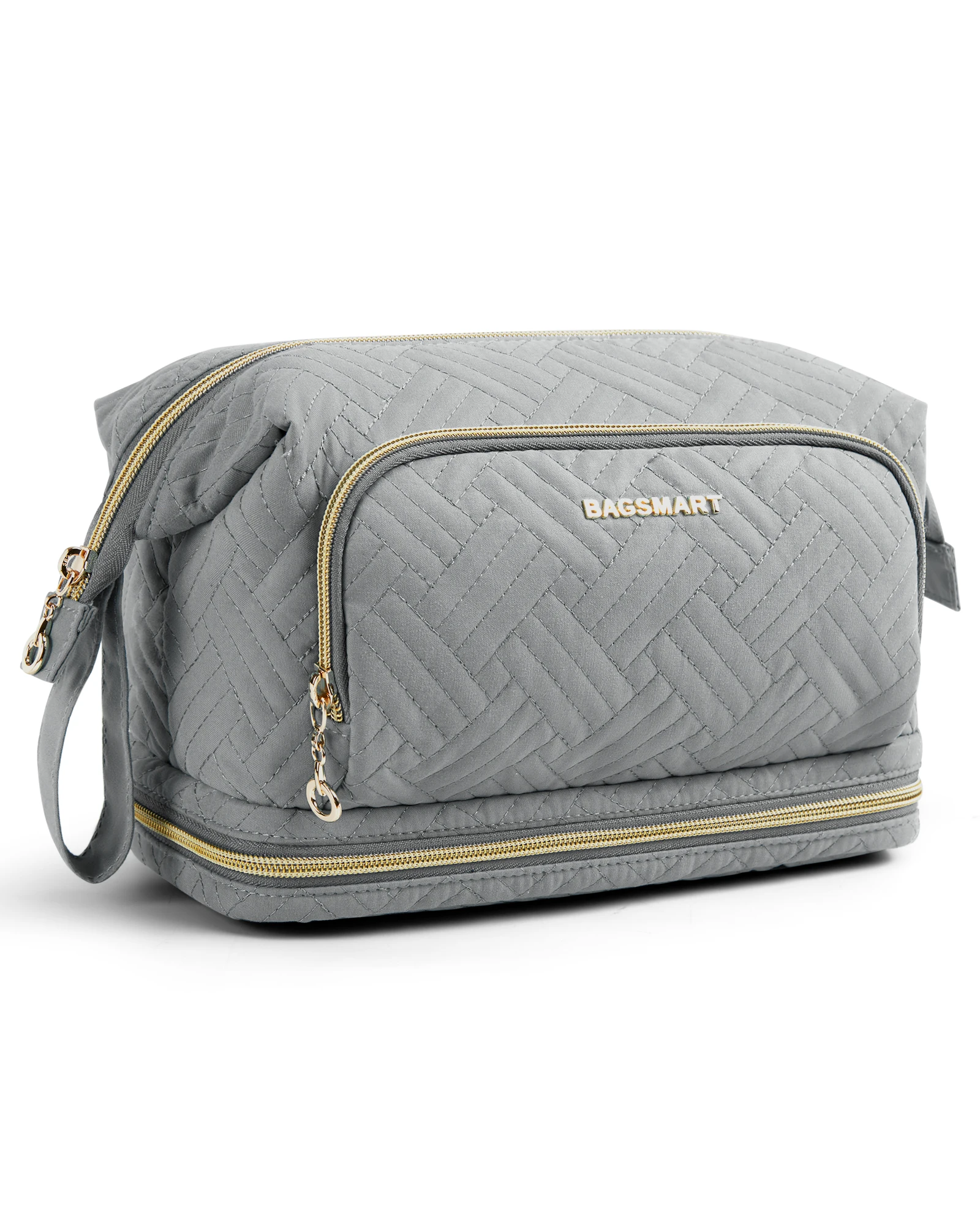 • 【 HIGH QUALITY 】- Cosmetic bag is Made of water-resistant polyester, soft and durable. Well-padded design of makeup bag organizer provides great protection performance. Metal zippers makes makeup pouch exquisite.