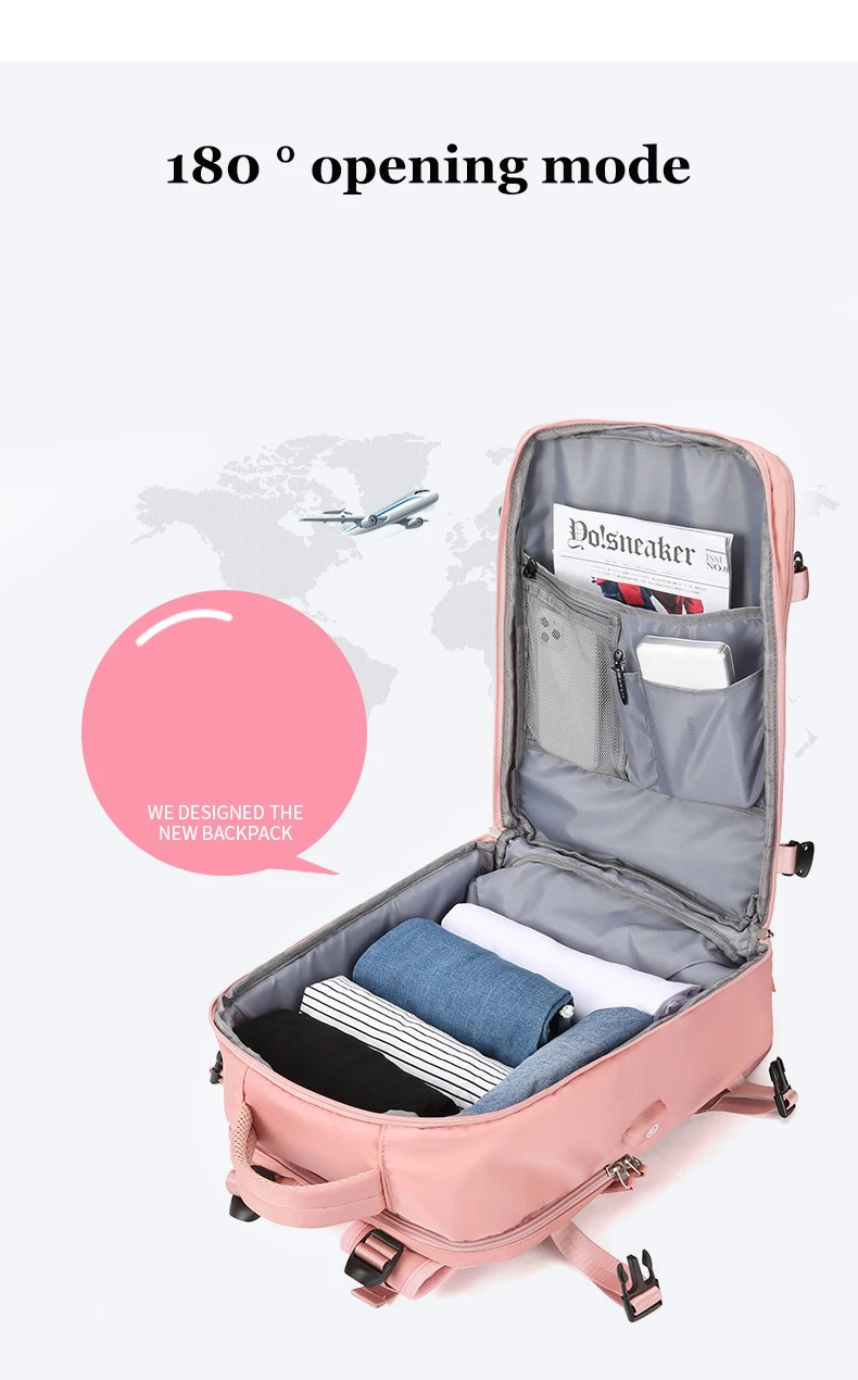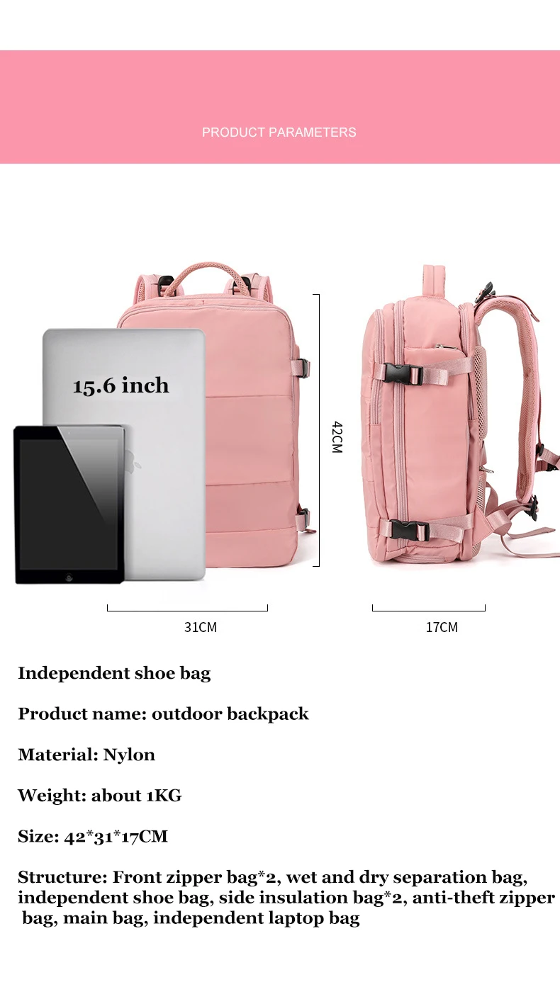 Large Capacity Women Backpack USB Charging 16 Inch Laptop Backpack Independent Shoe bag Travel Business Backpack