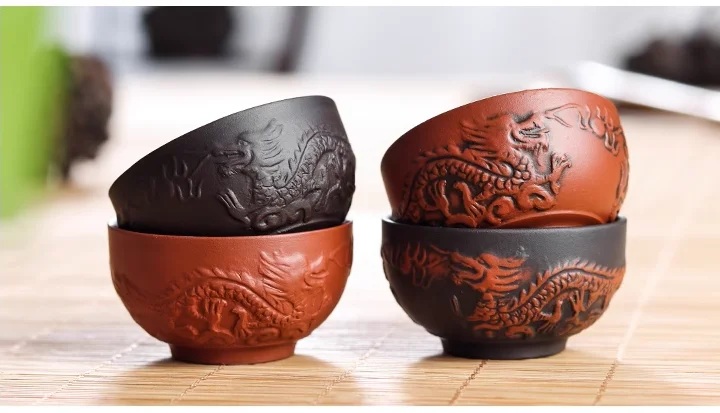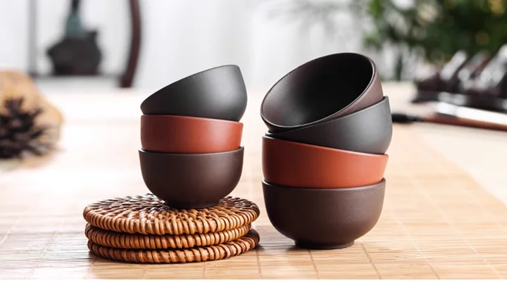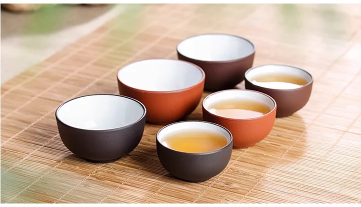 Large Ceramic Tea Cups Set, Porcelain Teacup, Purple Sand, Kungfu Tea Cup, Chinese Tea Set, 6Pcs