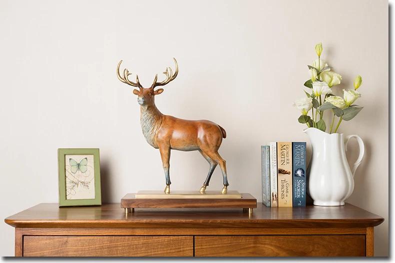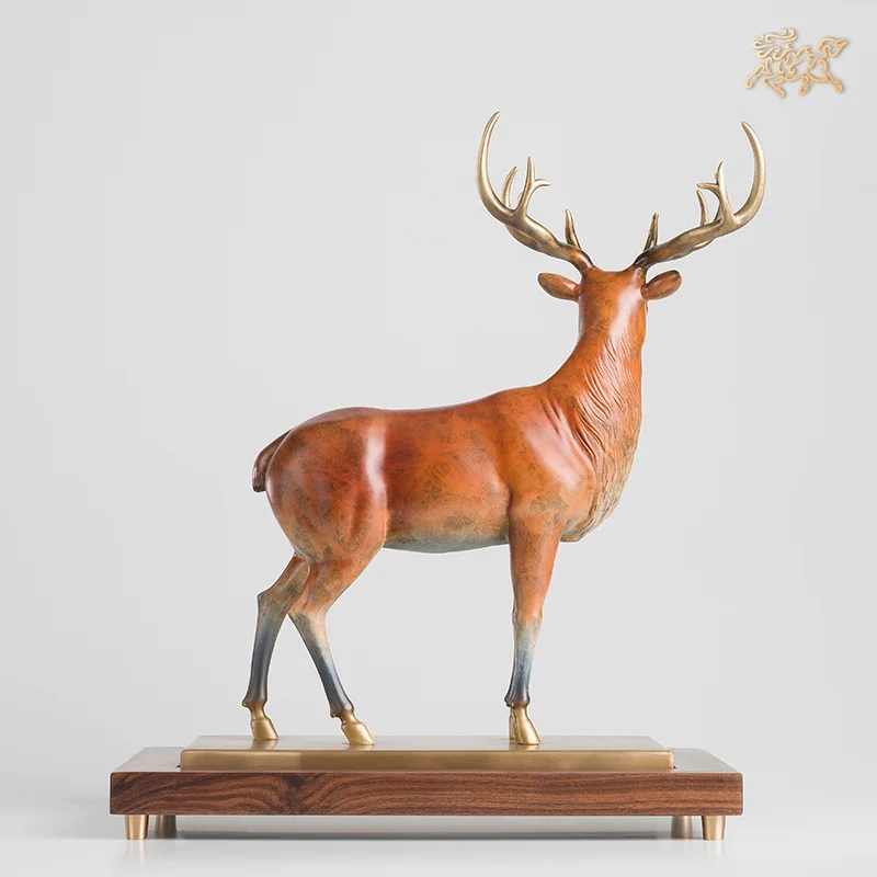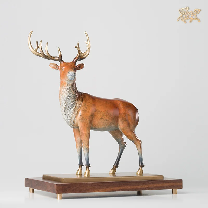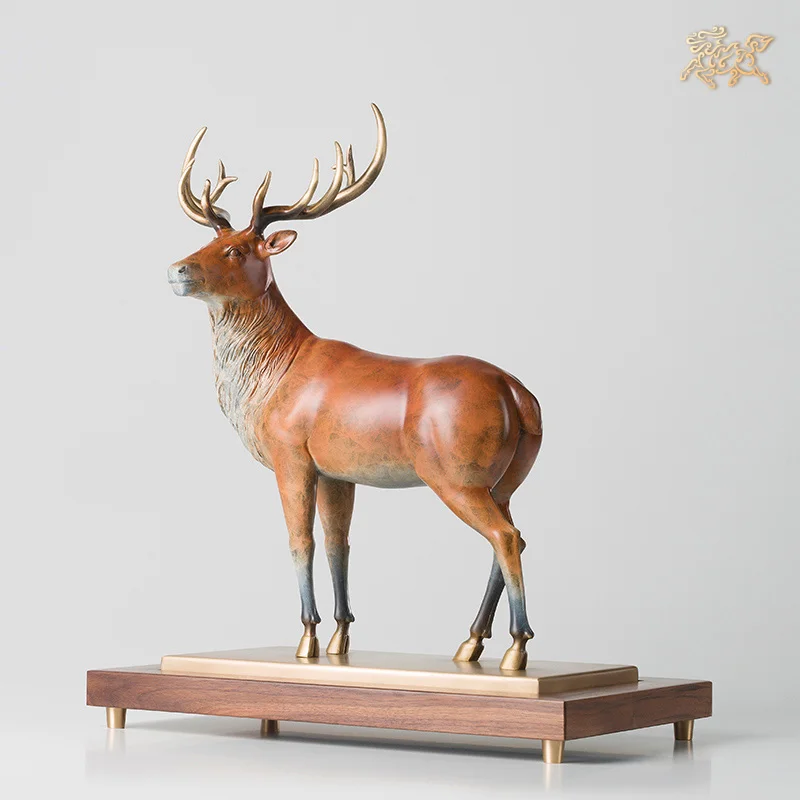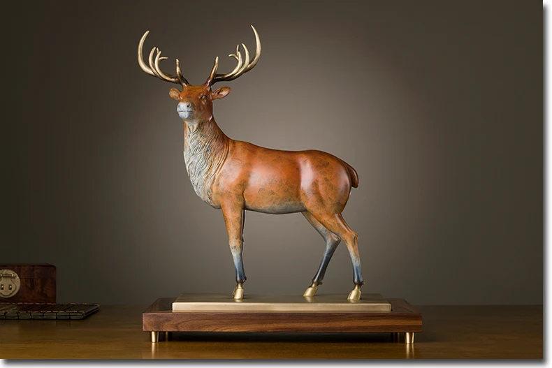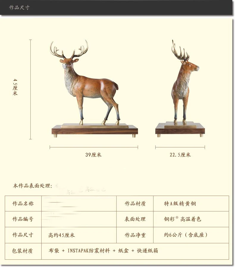 large high grade Europe Luxury decorative art HOME SHOP hallway Royal David's Deer statue brass Sculpture statue bring GOOD LUCK