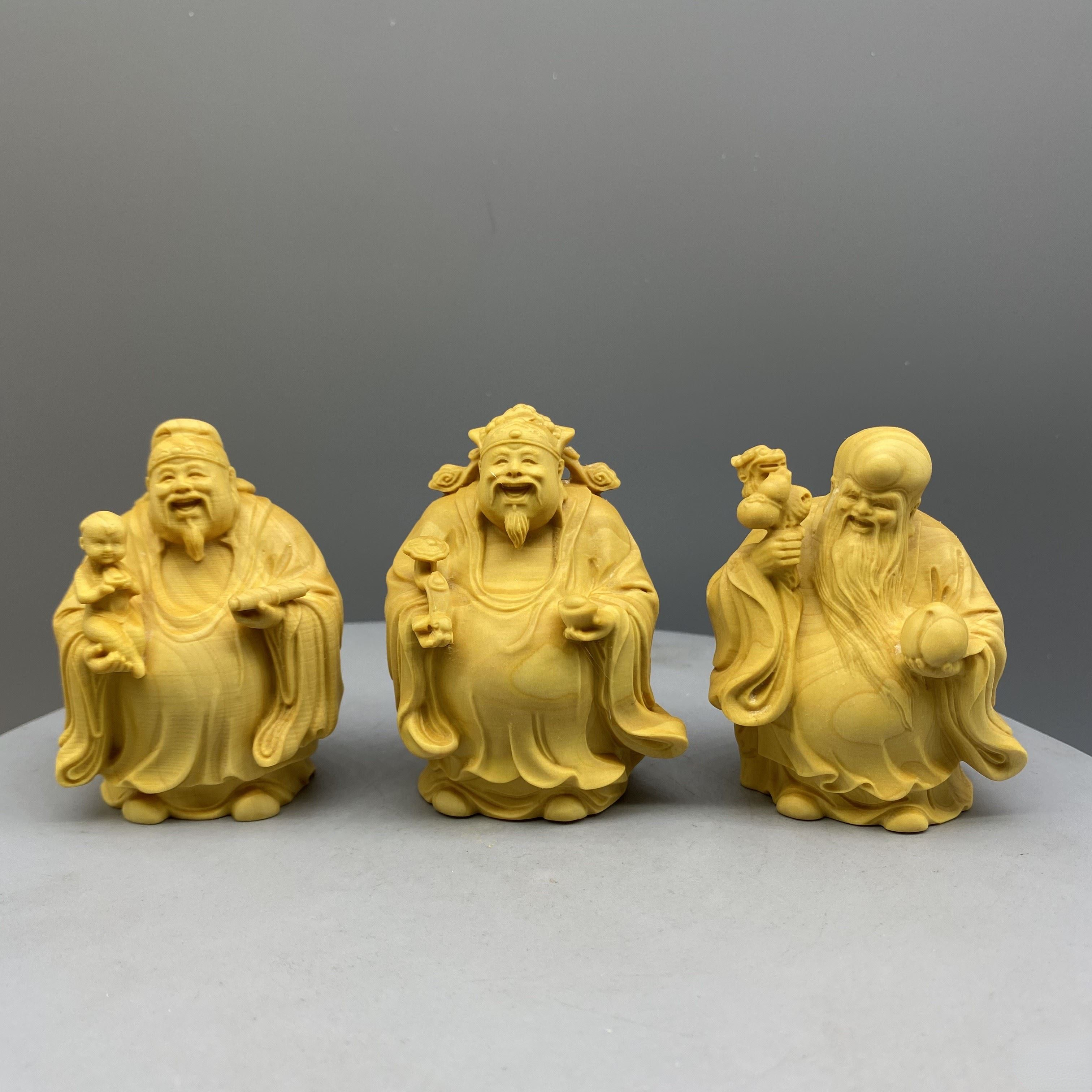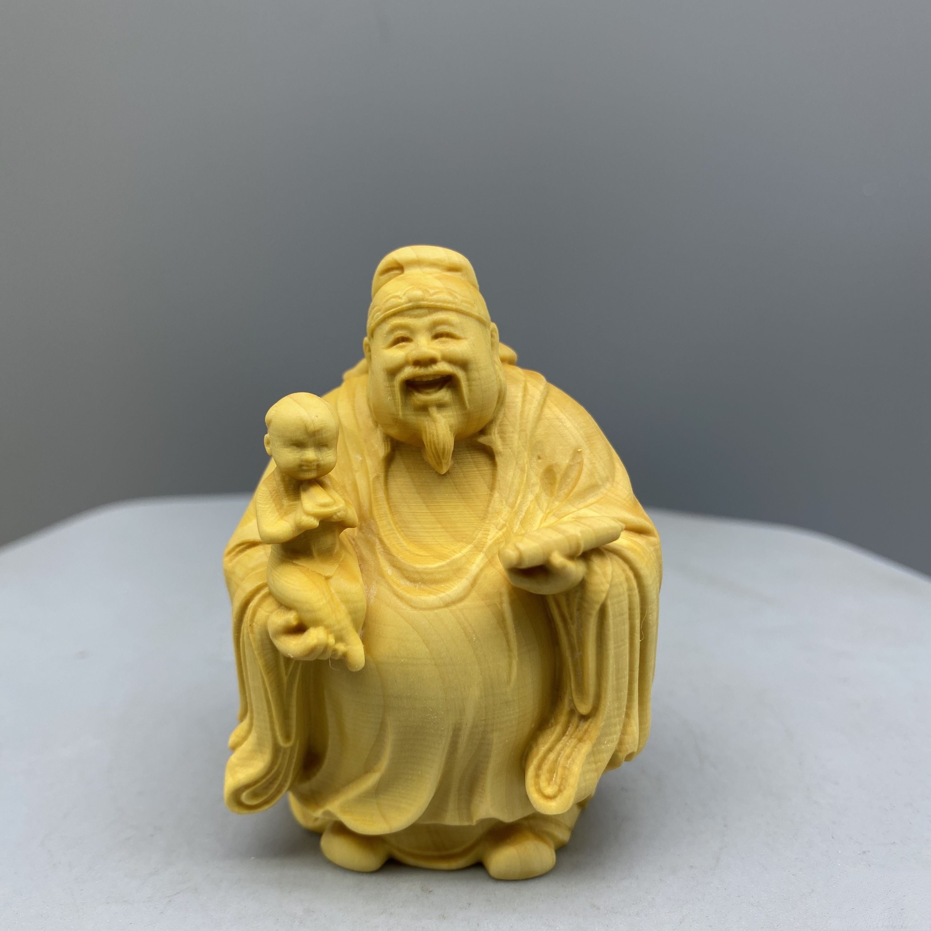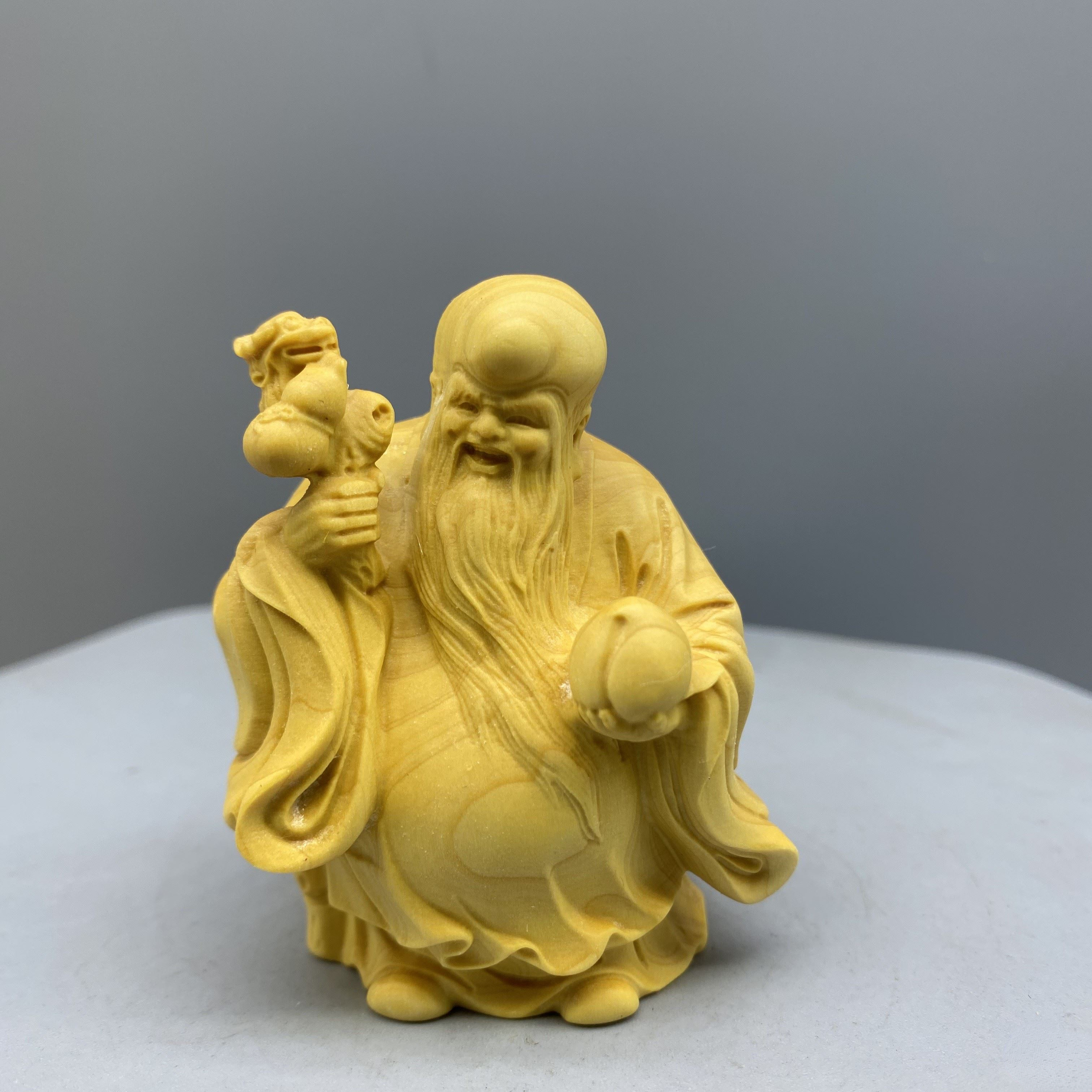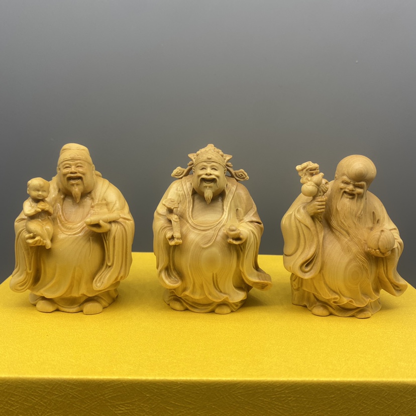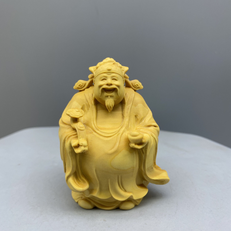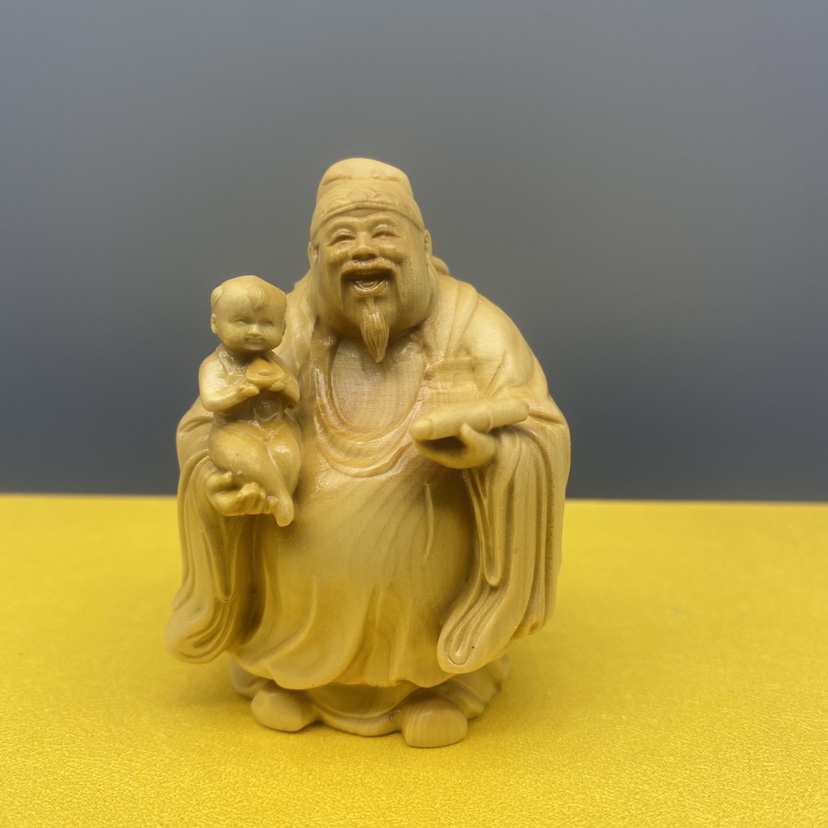 Large leaf boxwood carving, fortune, fortune, longevity, and solid wood character cartoon handlebars, home entrance decorations