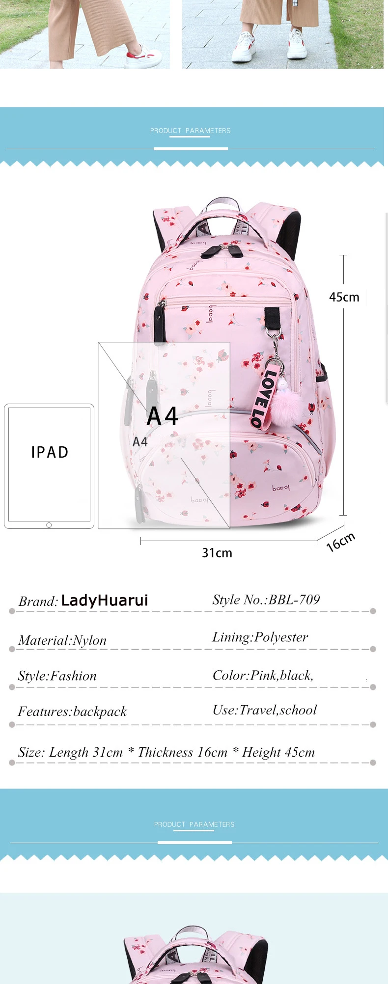 Size:45*31*16cm Recommended for grades 5-12 Buyer Questions & Answers Fit Notebook A4? ----YES Laptop Fit ? ------- YES For School Work? ---------YES For Walking?---------YES It Is Waterproof? --------YES If you like, add Wish List or add to cart. Make it easier for you to find it All our goods have been sterilized, please rest assured to buy.