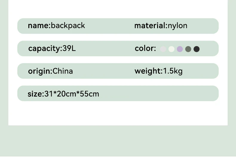 Backpack Size:55x31x20cm