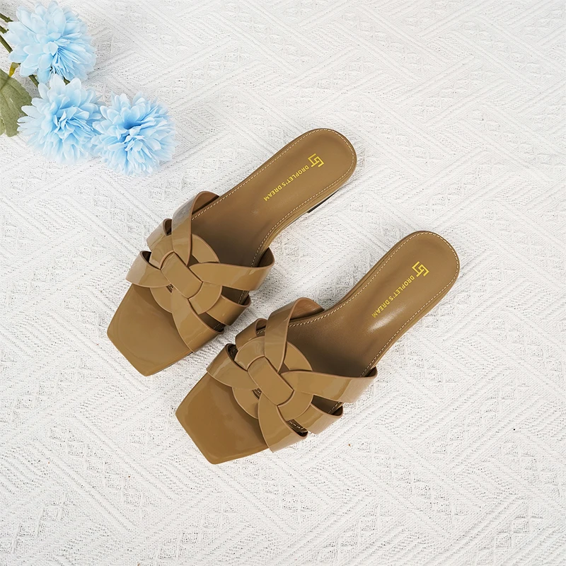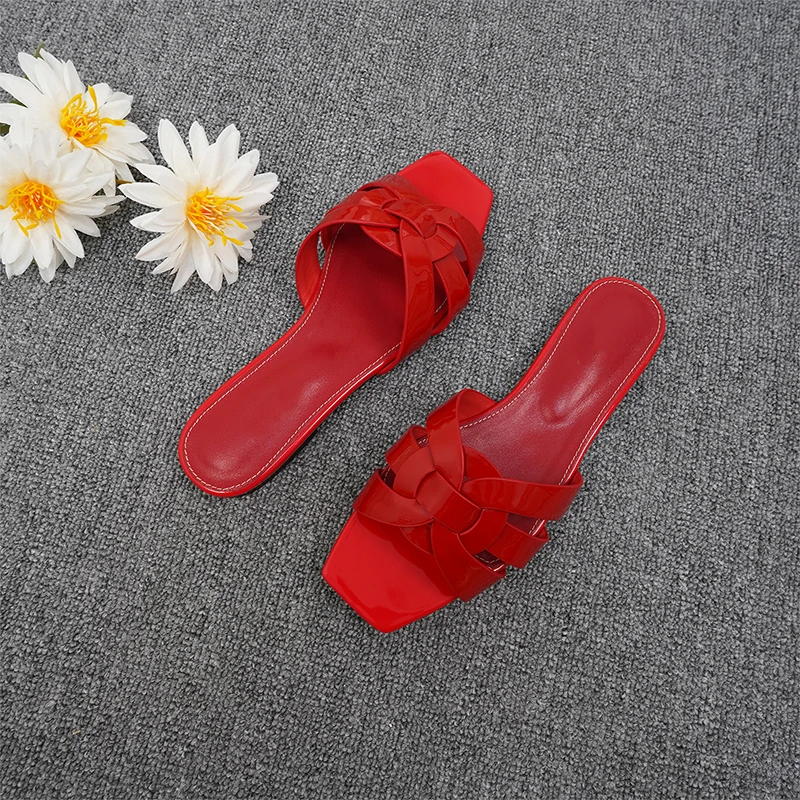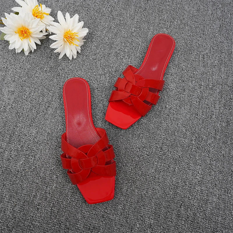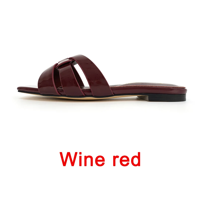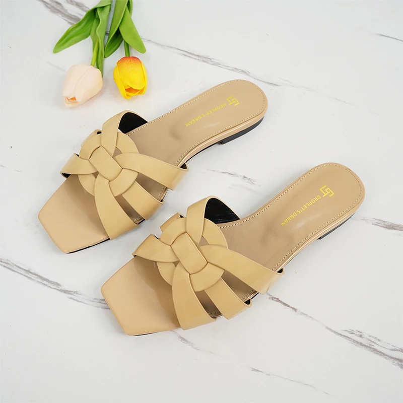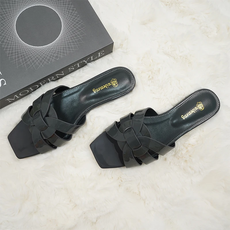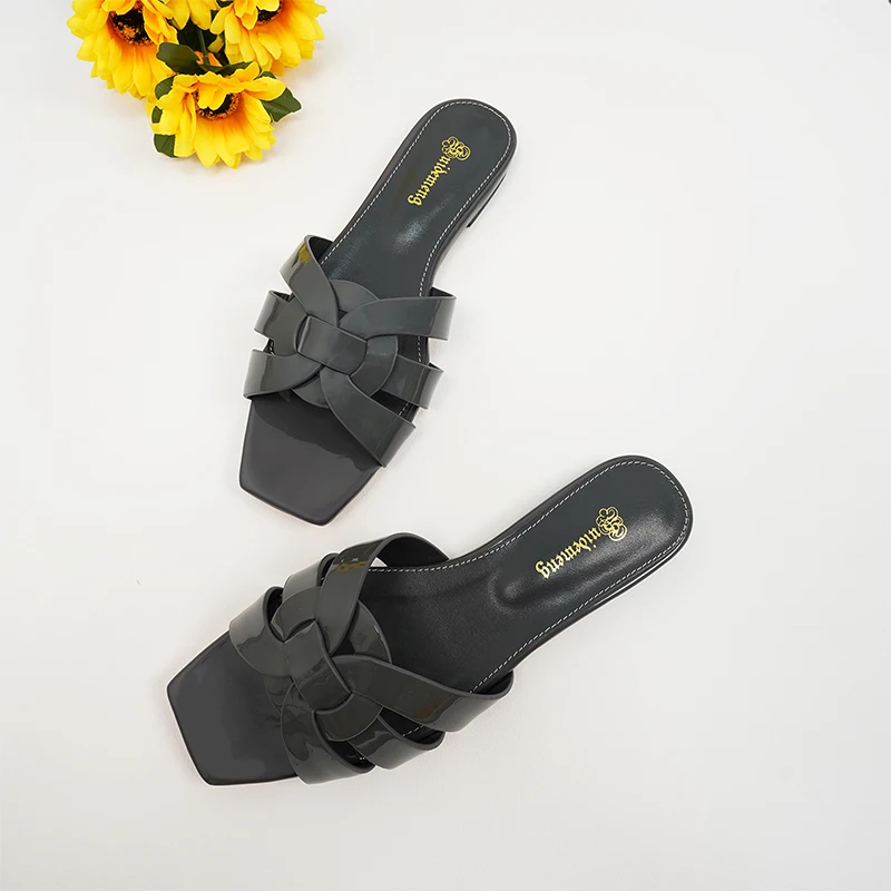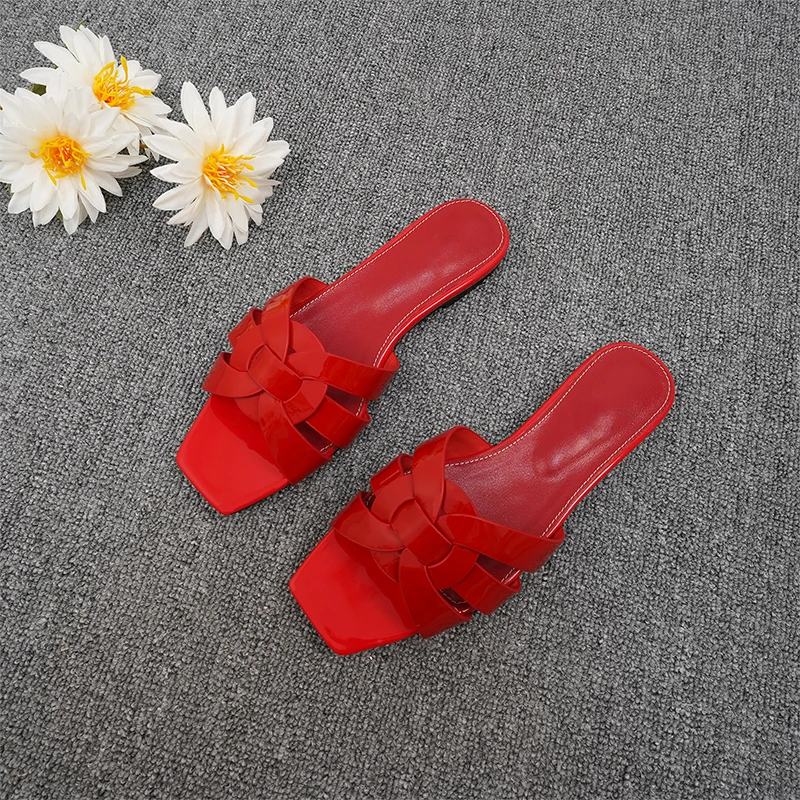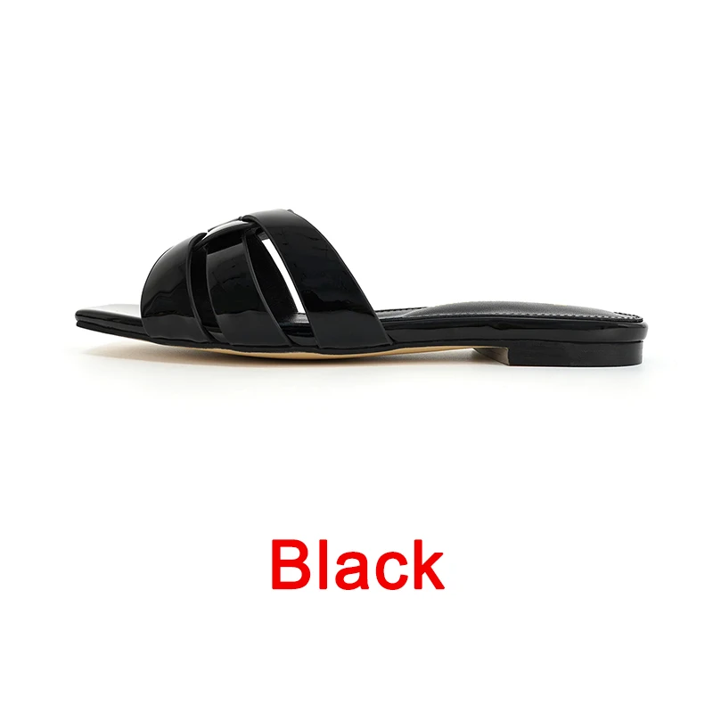 Latest Italian Design Summer Luxury Flat Heel Fish Mouth Party Women Shoes Flat Genuine Leather plus size Women Slippers 34-44