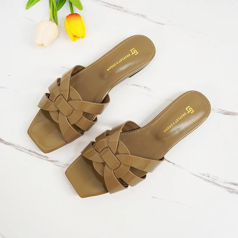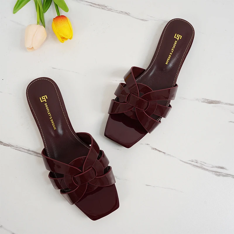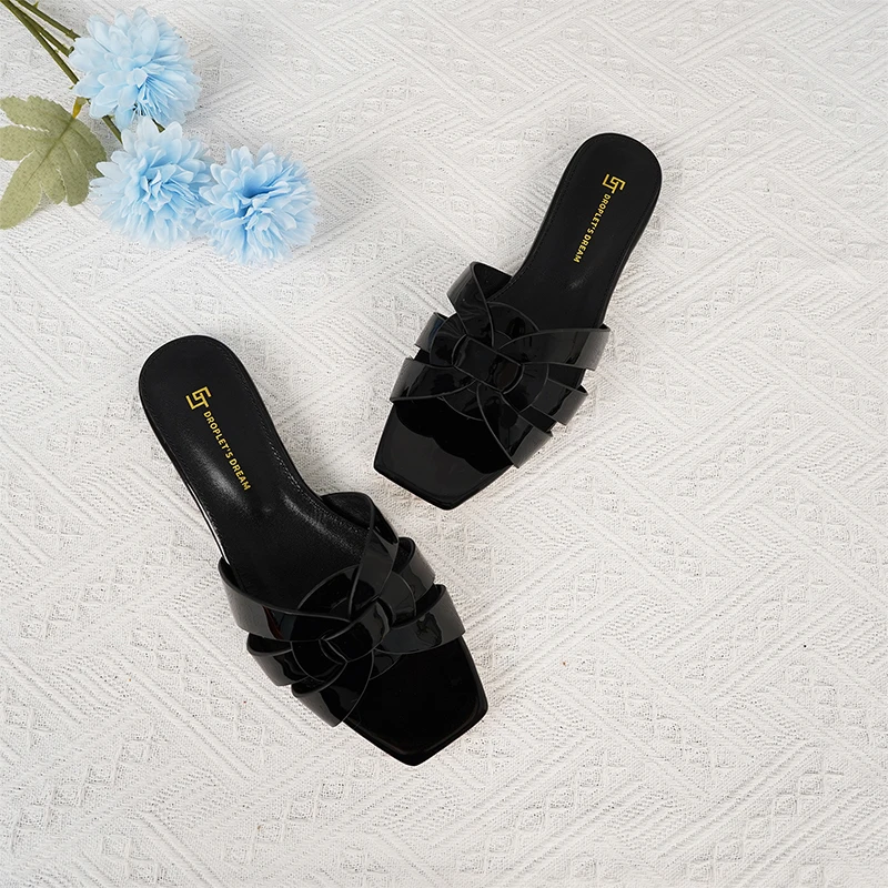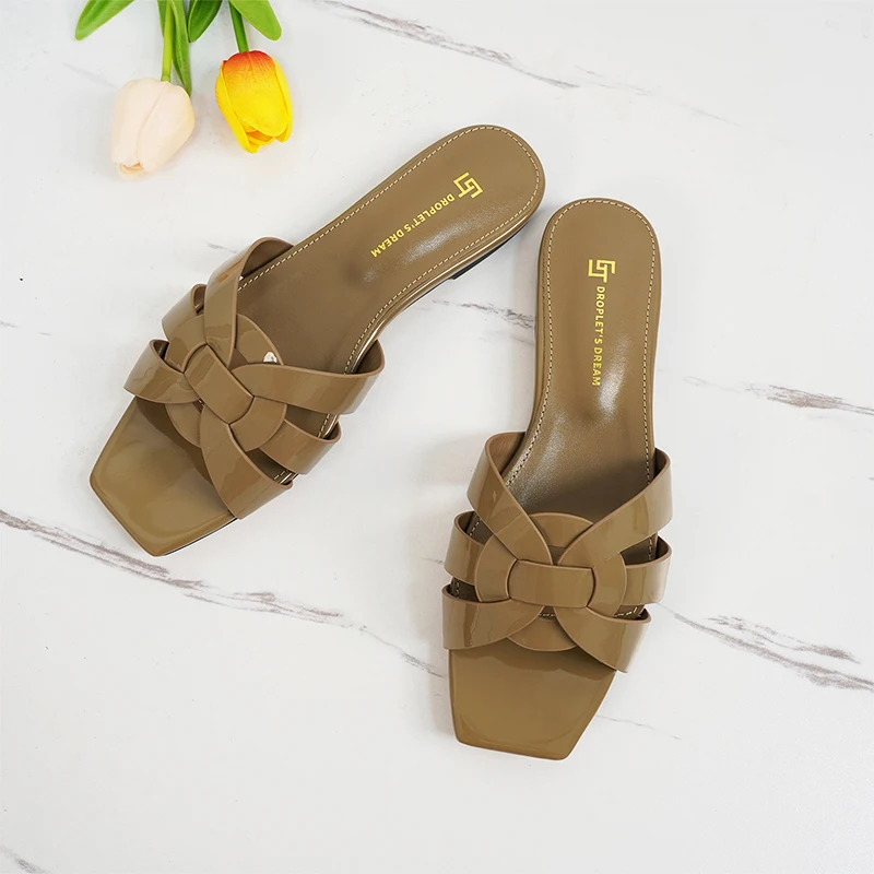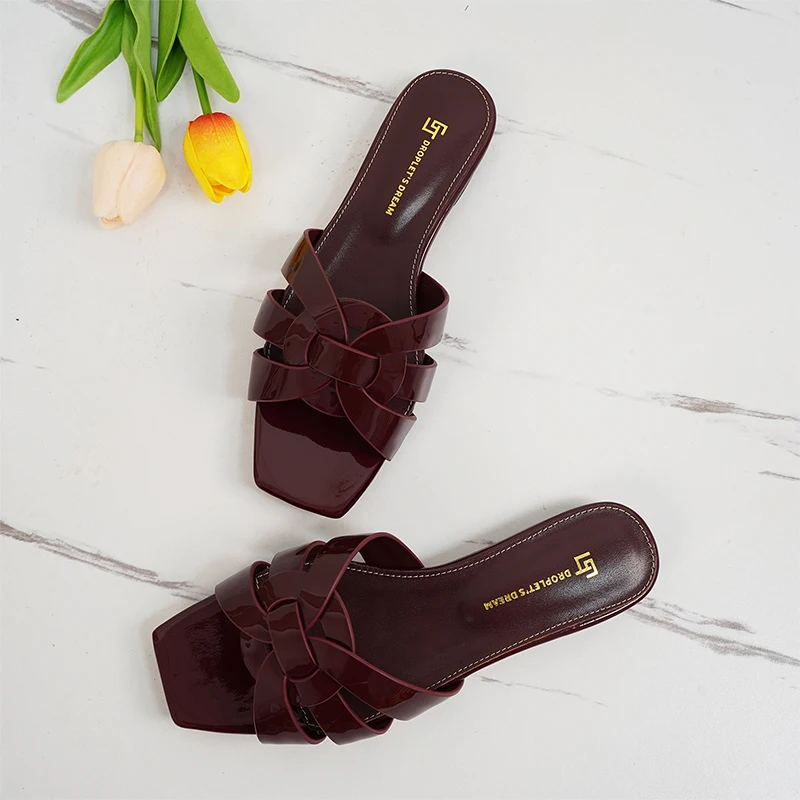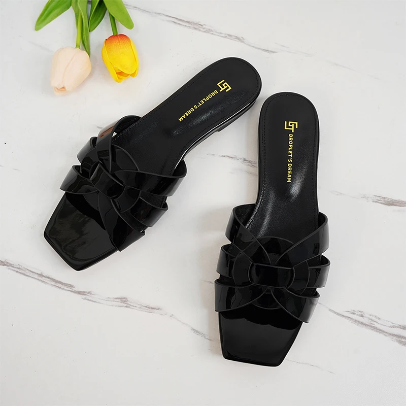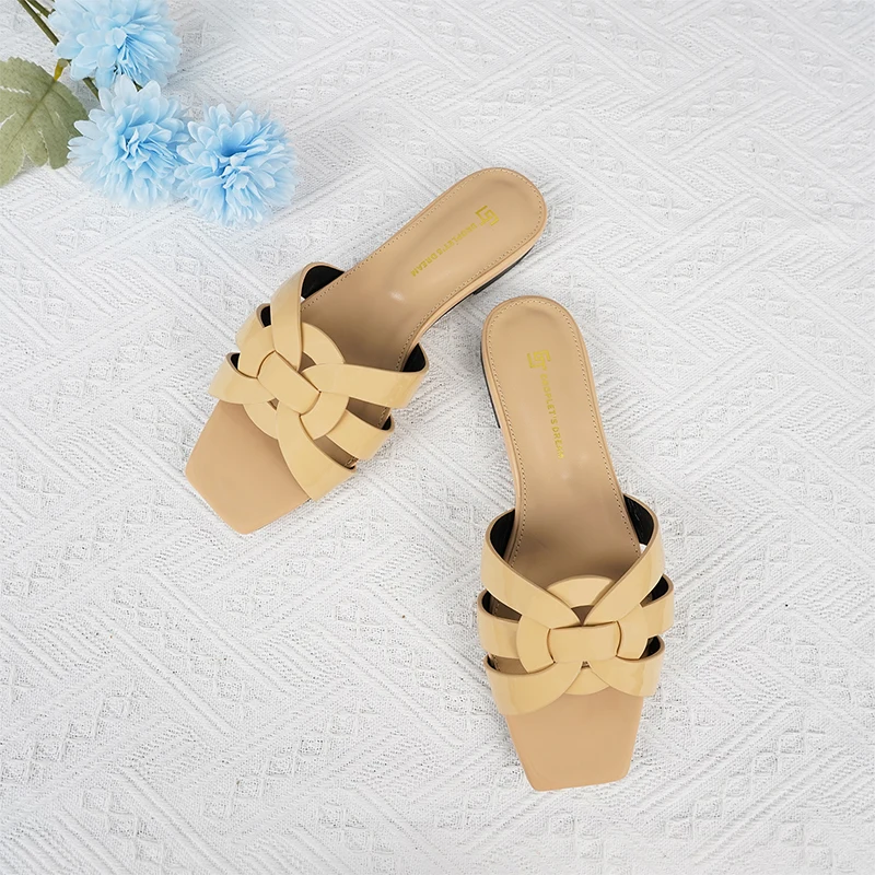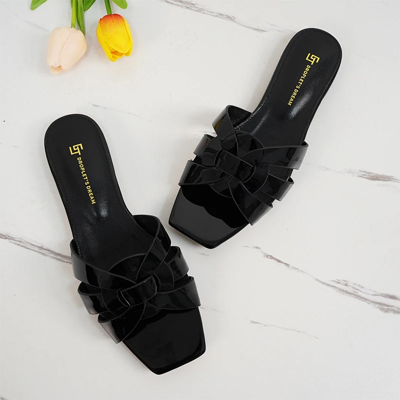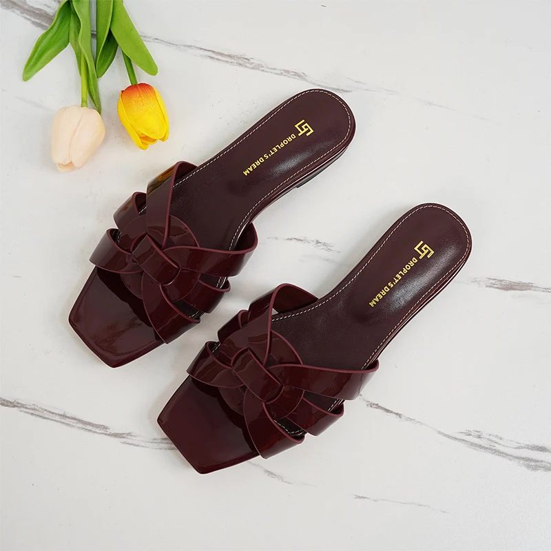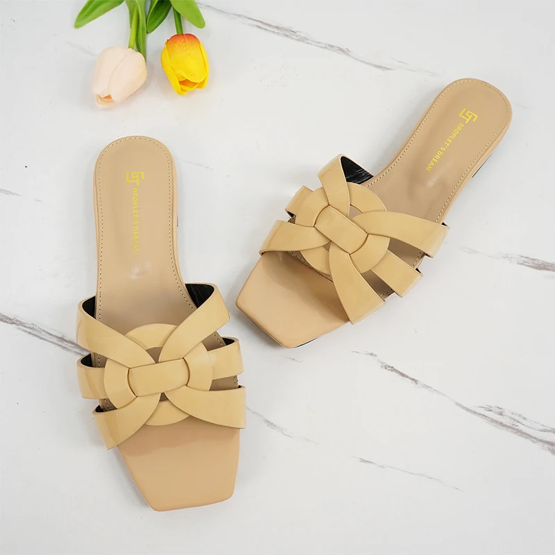 Latest Italian Design Summer Luxury Flat Heel Fish Mouth Party Women Shoes Flat Genuine Leather plus size Women Slippers 34-44