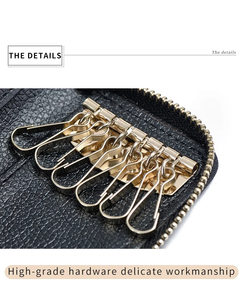 钥匙包右边有6个钥匙挂钩,可以放加长的钥匙,