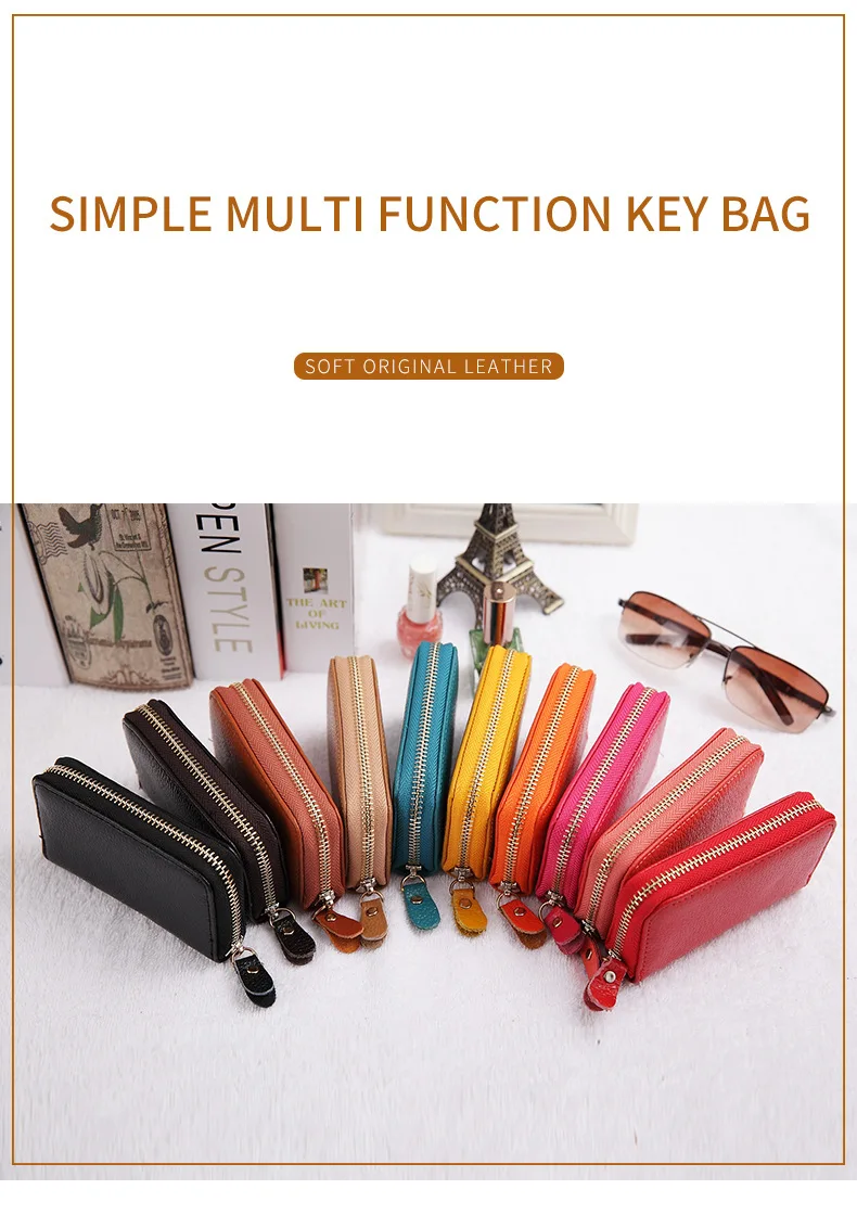Leather Keychain Bag Men Women Key Holder Organizer Pouch Portable Car Key Bag Wallet Housekeeper Key Case Mini Card Bag