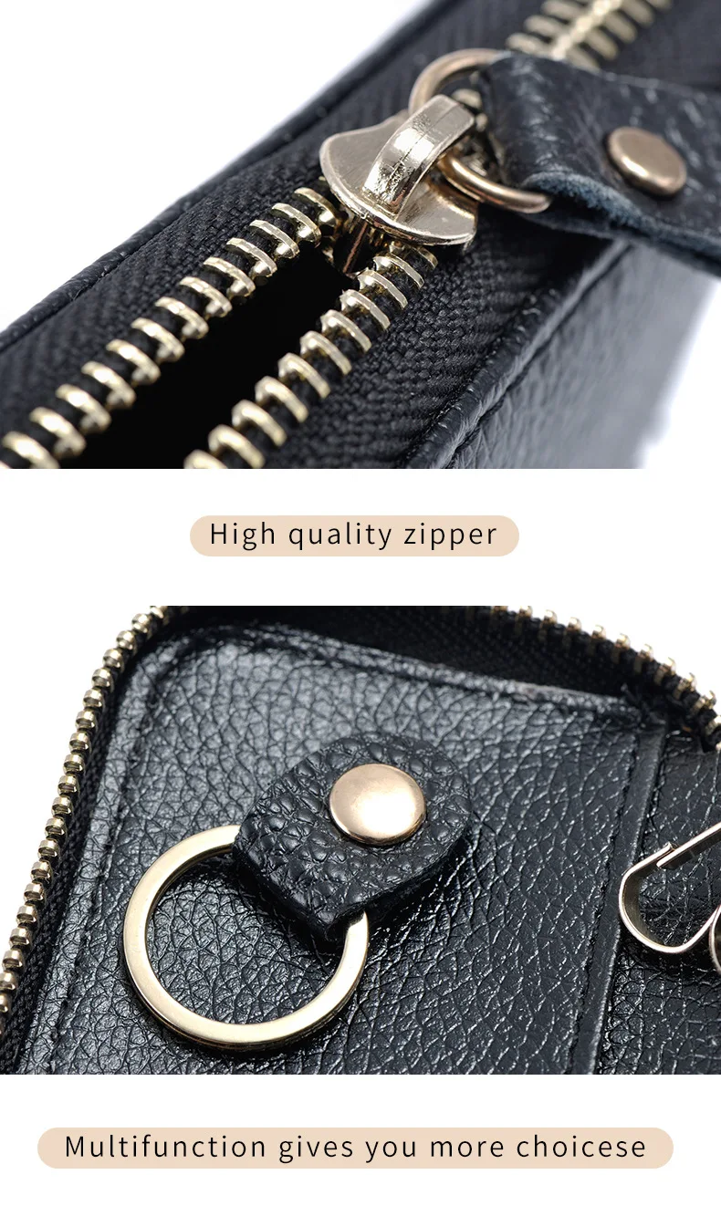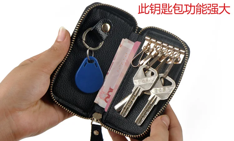 拉链设计的,可以有效的防止钥匙脱落,安全性指数5颗星哈!