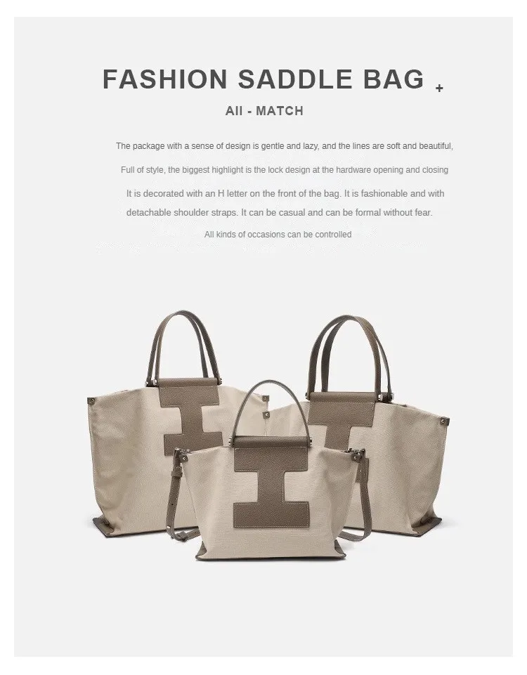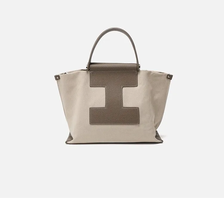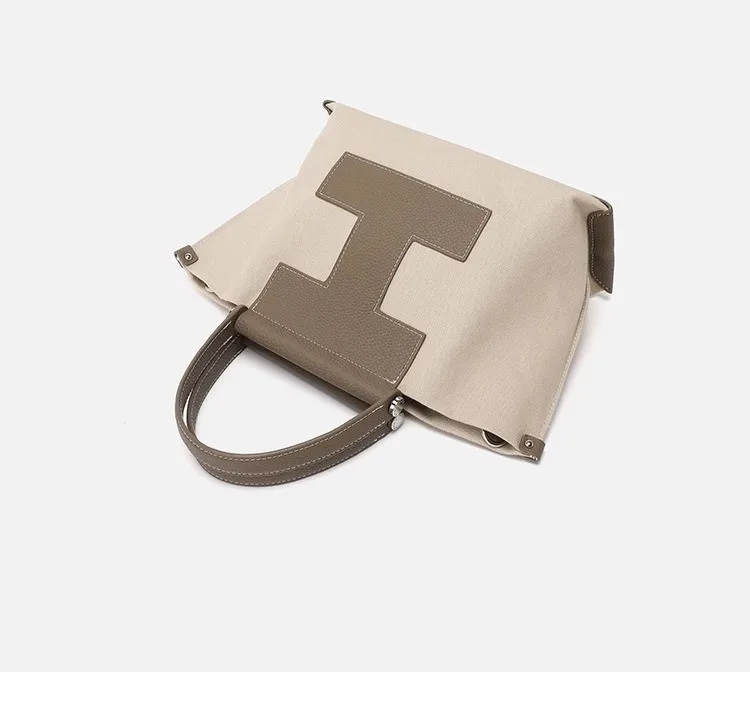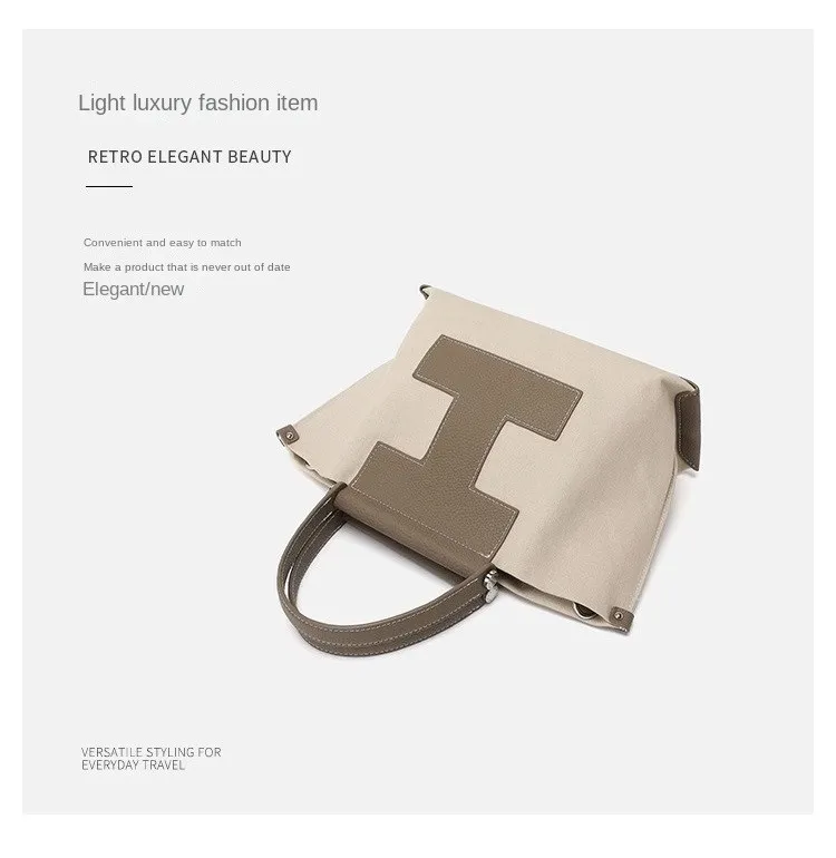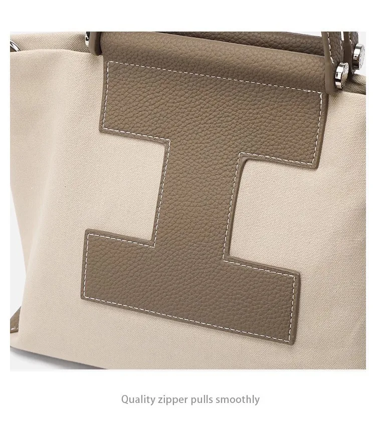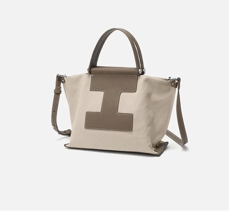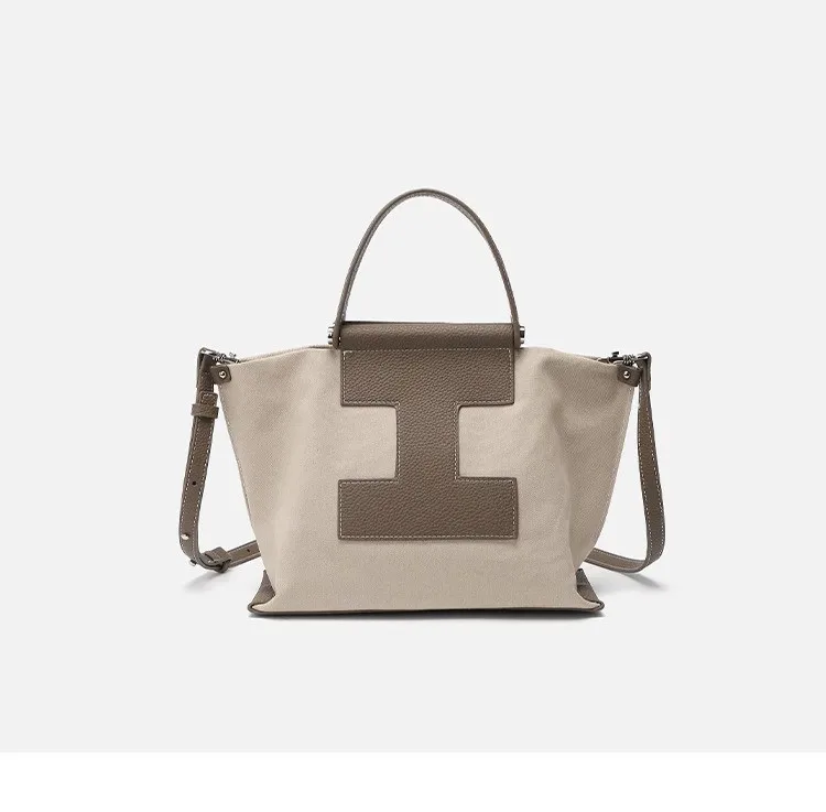 Leather single shoulder crossbody bag Canvas handbag ladies luxury brand splicing handbag large capacity computer bag