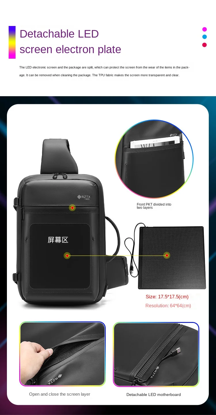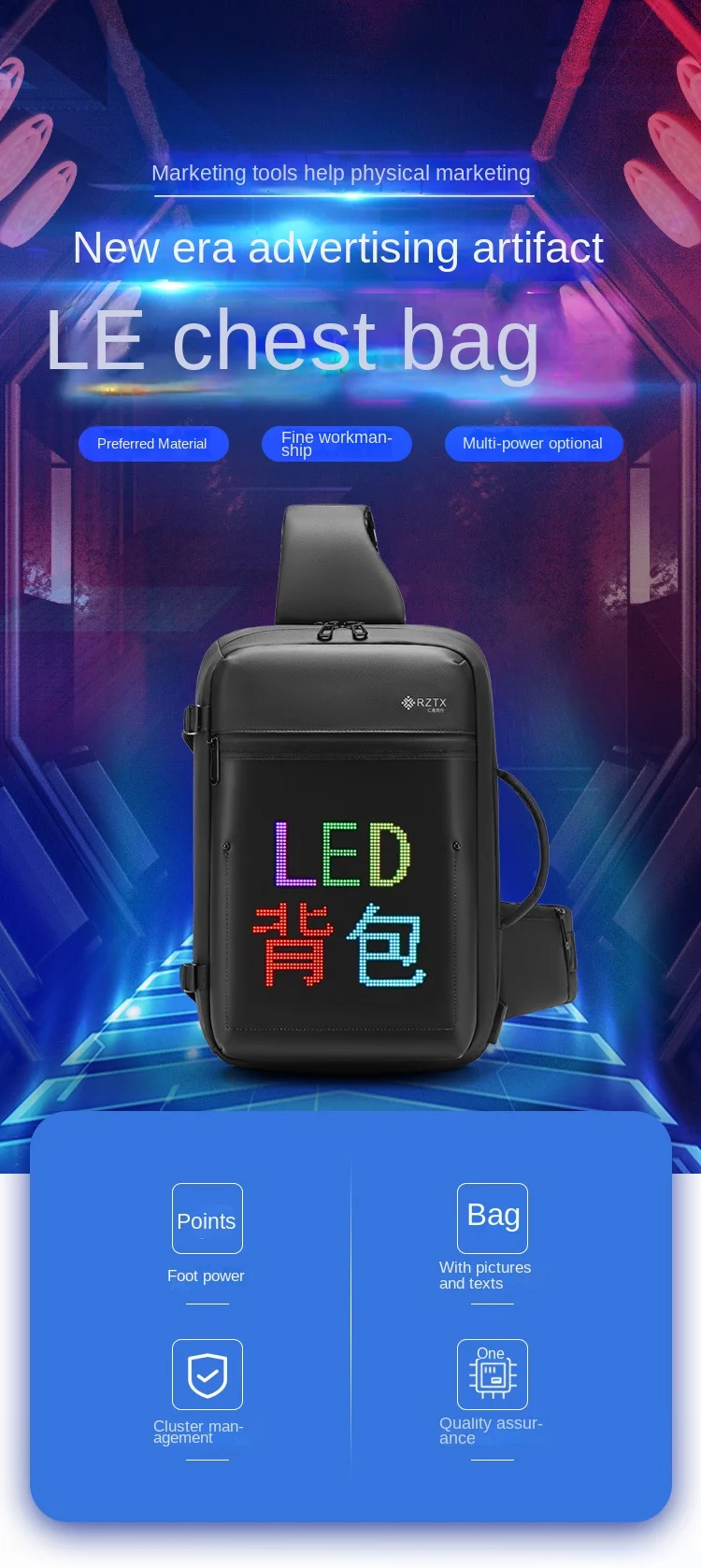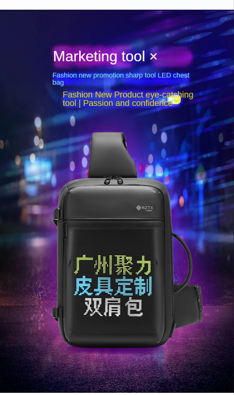 LED Screen Dynamic Sling Bag Waterproof APP Control Advertising Crossbody Bag Men Oxford Chest Pack Knapsack Bags with USB
