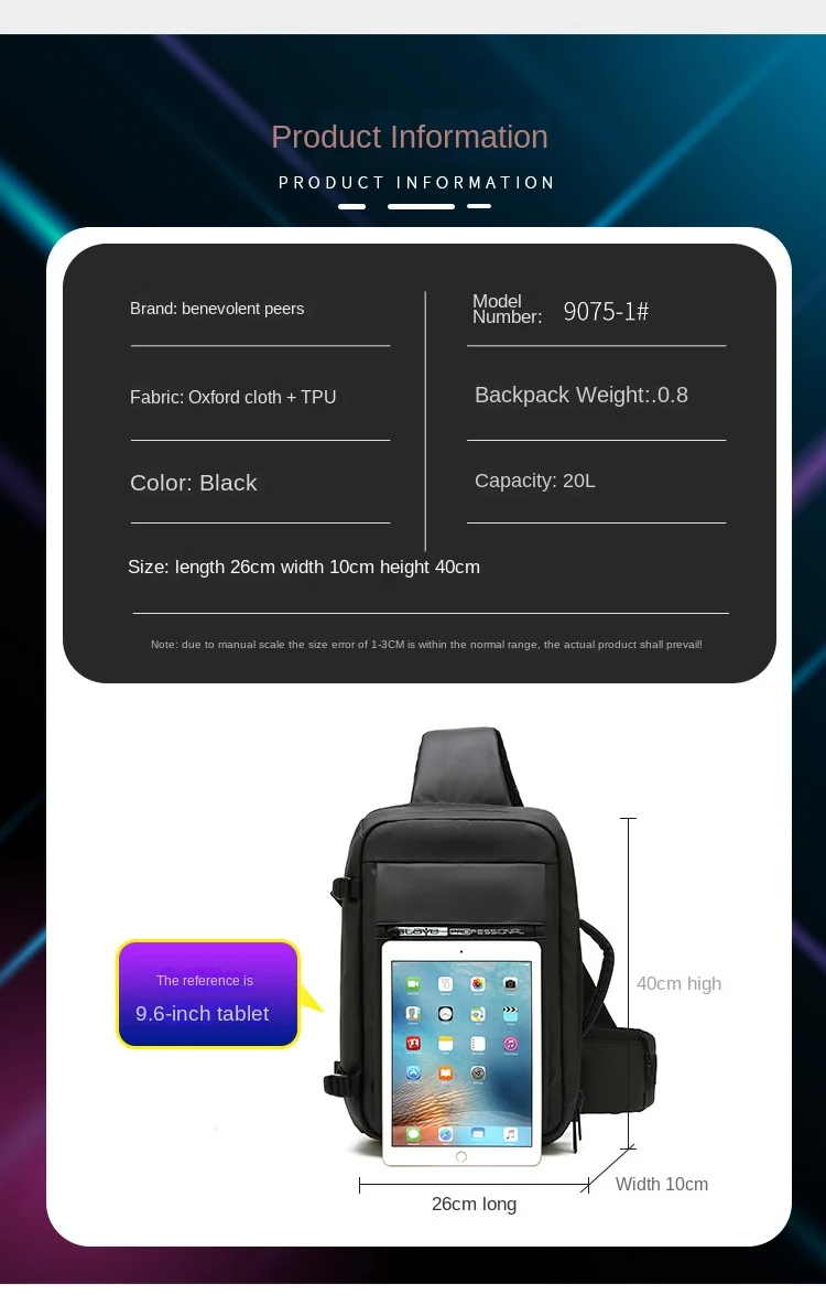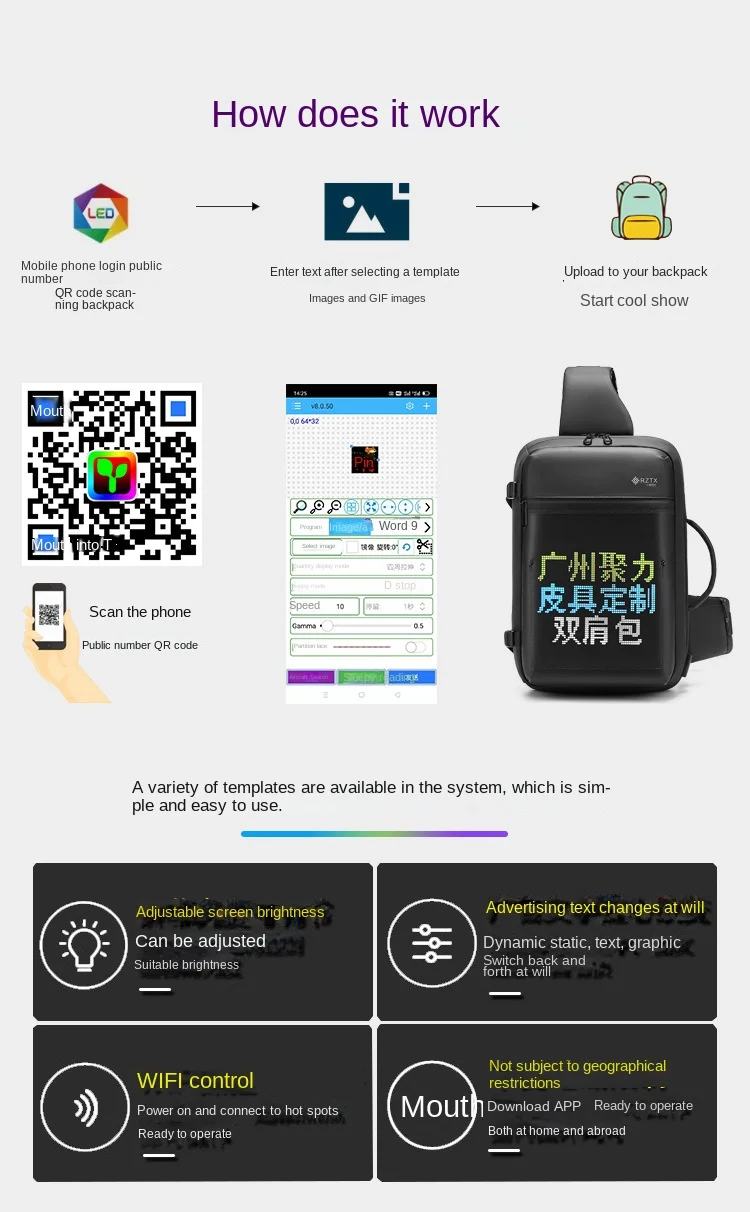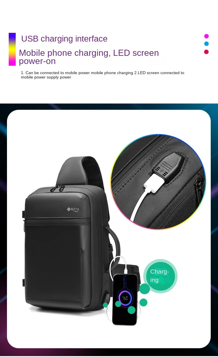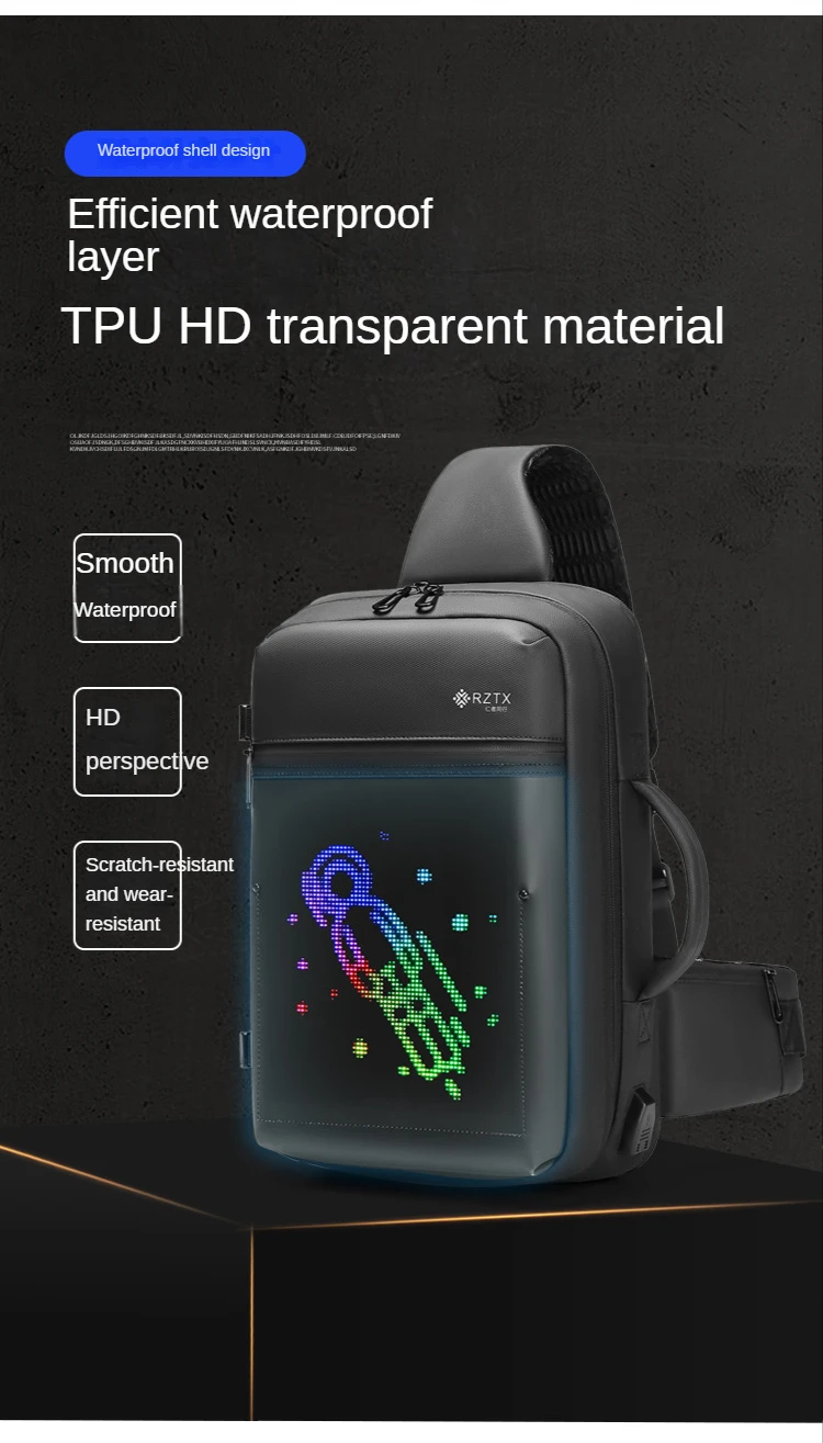 LED Screen Dynamic Sling Bag Waterproof APP Control Advertising Crossbody Bag Men Oxford Chest Pack Knapsack Bags with USB