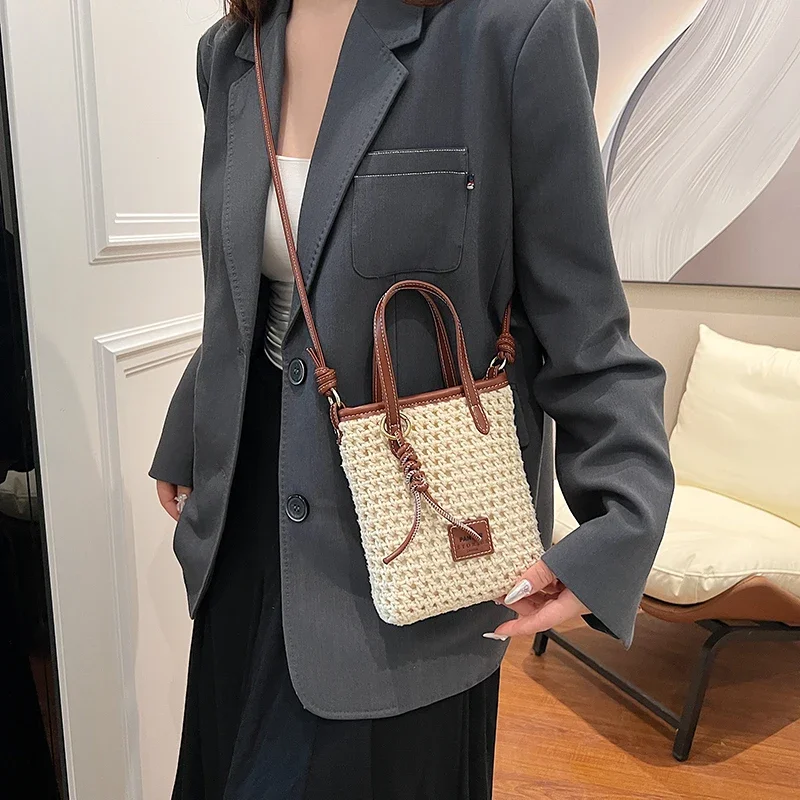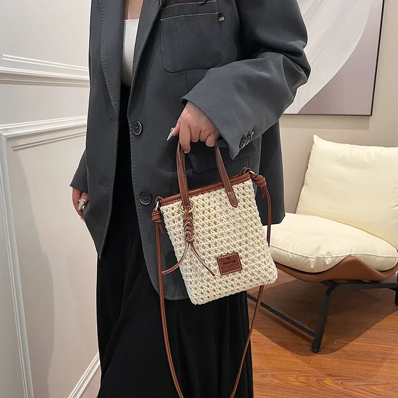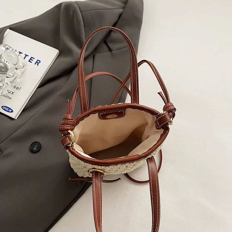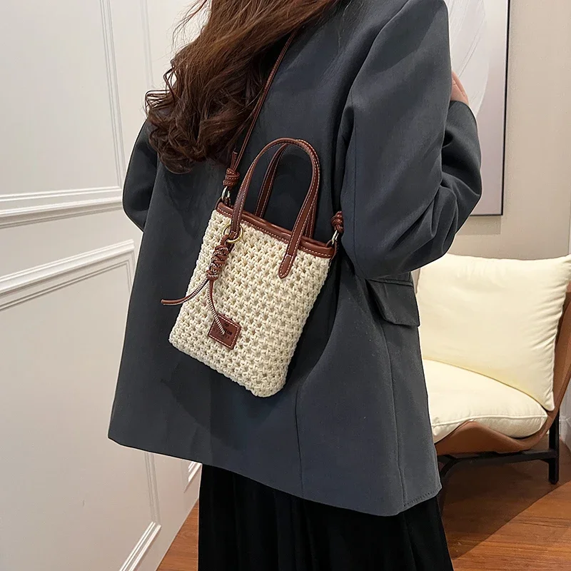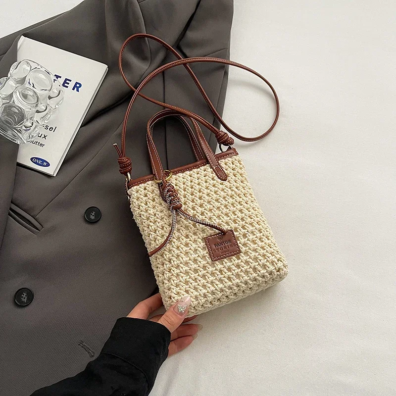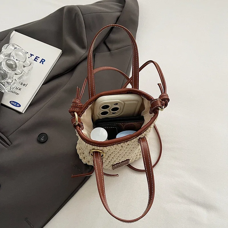 LEFTSIDE Mini Solid Color Straw Bags for Women 2024 Fashion Summer Shoulder Bags Handbags and Purses Weave Beach Crossbody Bag