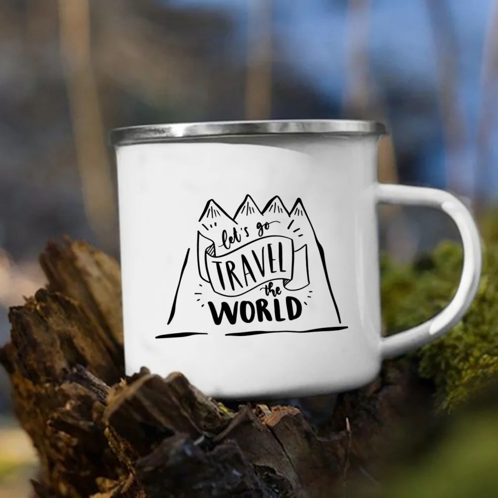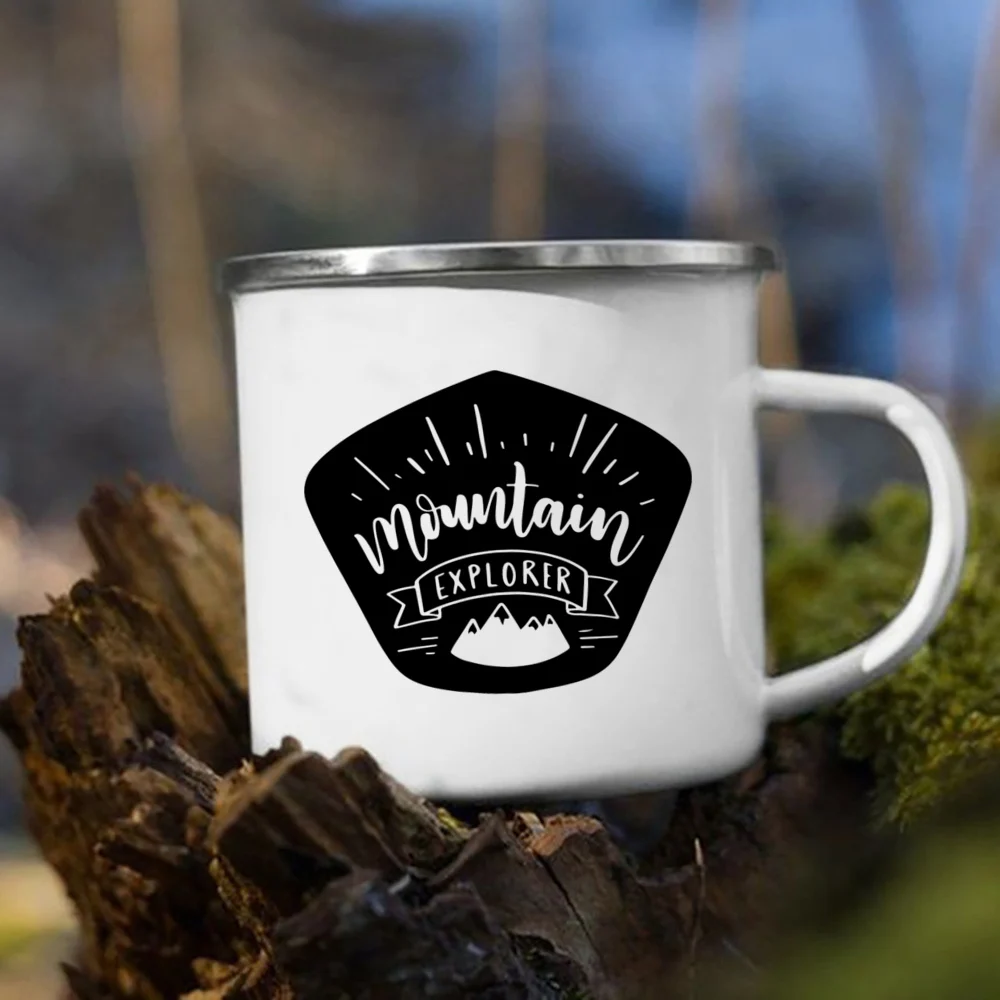 • Material: Enamel • Dimensions: height 3.14″ (8 cm), diameter 3.35″(8.5 cm) • White coating with a silver rim • Only print on ONE SIDE of the mug •Due to the rustic nature of mugs, you may see small imperfections such as dents, bubbles + other rustic features