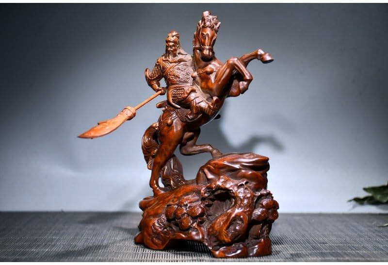 Introducing the Collection Boxwood Riding Horse Guan Gong Yu Warrior God Statues Handmade Meditating Sculpture Figurine Decorative Home Decor HandcraftedAdd a touch of elegance and spirituality to your home decor with this exquisite Collection Boxwood Riding Horse Guan Gong Yu Warrior God Statues. Handmade with meticulous attention to detail, this meditating sculpture figurine is a true testament to the craftsmanship of our skilled artisans.Crafted from premium quality boxwood, this decorative piece stands out for its durability and natural beauty. Each sculpture is carefully carved to perfection, capturing the essence of the renowned warrior god, Guan Gong Yu. The intricate details and dynamic posture of this masterpiece bring a sense of power and serenity to any space.Measuring at 6 inches in height, 4 inches in width, and 2.4 inches in depth, this sculpture is the perfect size to display on your mantel, shelf, or tabletop. It weighs a mere 179g, making it lightweight and easy to move around while ensuring stability.With its handcrafted design and meticulous attention to detail, this figurine exudes a sense of authenticity and artistry. Place it in your living room, office, or meditation space to create a serene and harmonious atmosphere. This Collection Boxwood Riding Horse Guan Gong Yu Warrior God Statue is not only a decorative piece of art but also a symbol of courage, strength, and honor. It serves as a reminder of the warrior spirit within us and can be a source of inspiration in your daily life.Whether you're a collector, a spiritual enthusiast, or simply someone who appreciates fine craftsmanship, this meditating sculpture figurine is a must-have addition to your home decor. Bring a touch of mystique and elegance to your space with this exquisite handmade piece.