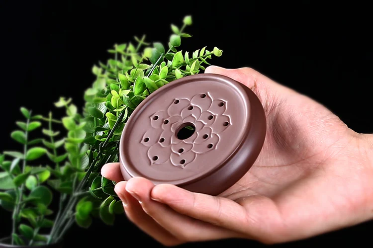 Lotus Pot Cushion with Purple Sand, Teapot Tray, Tea Ceremony Accessories, Ceramic Base, 10cm Diameter