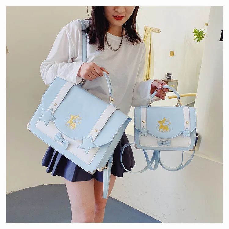 Lovely Japanese Girls Lolita JK Backpacks Satchels HandBags Students Cute Stars Embroidery Bear Briefcases Shoulder Bags
