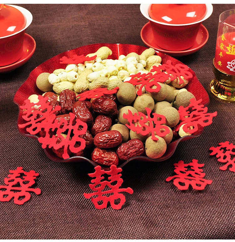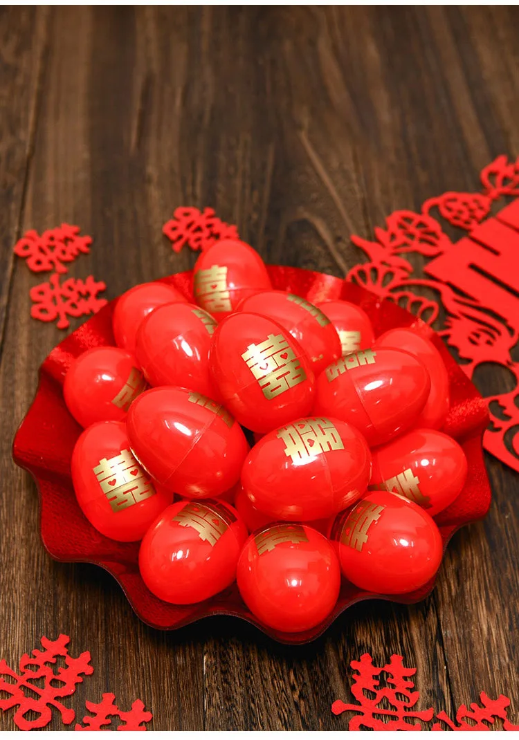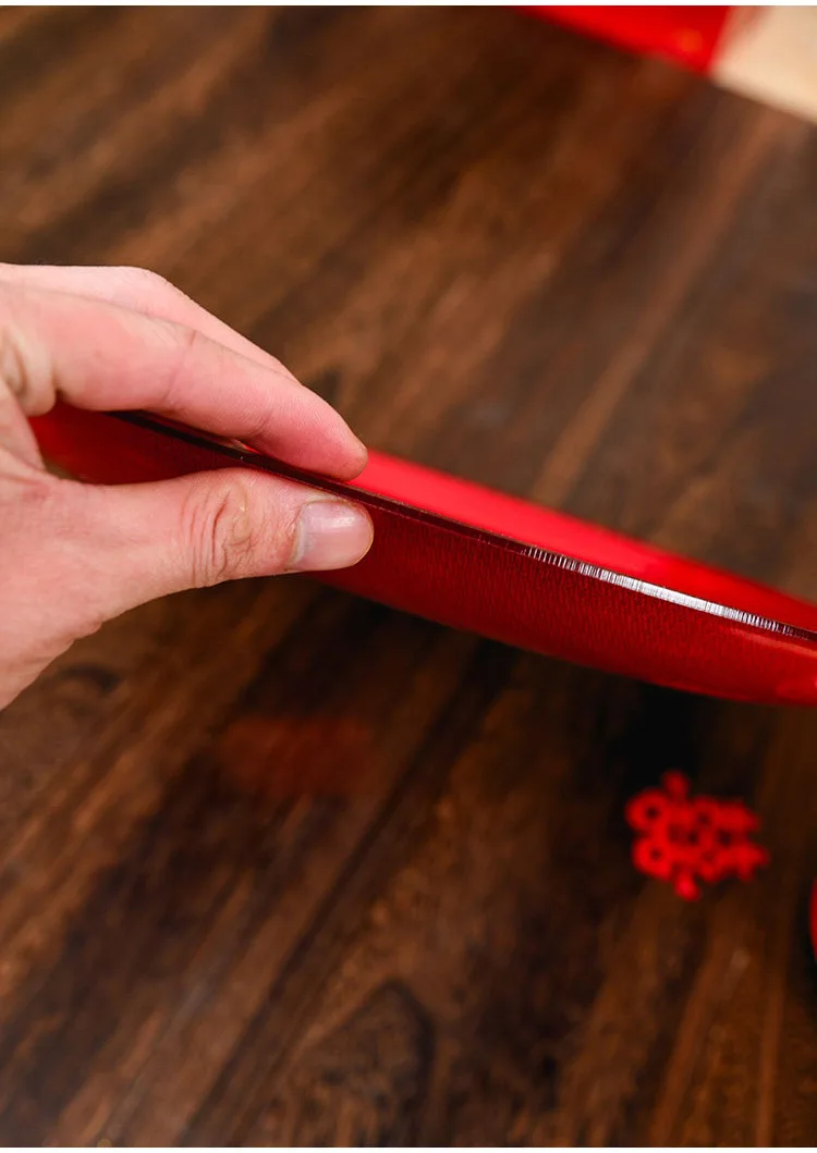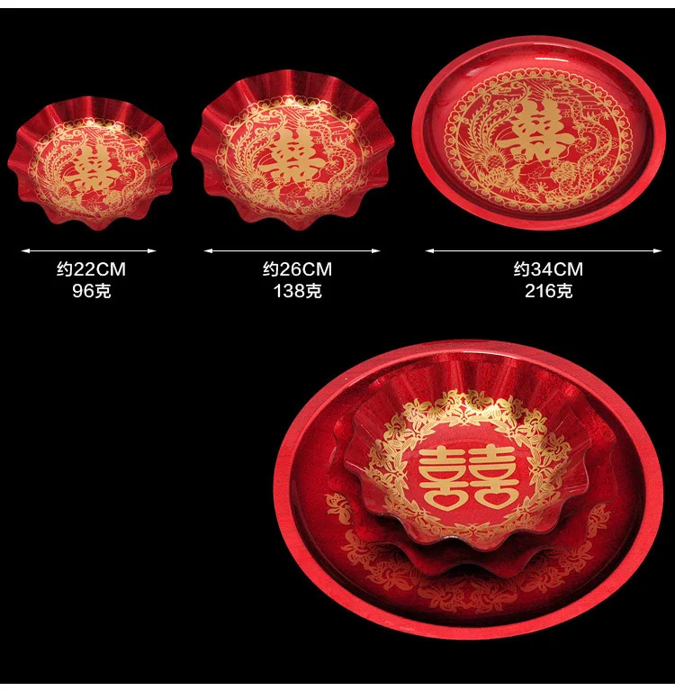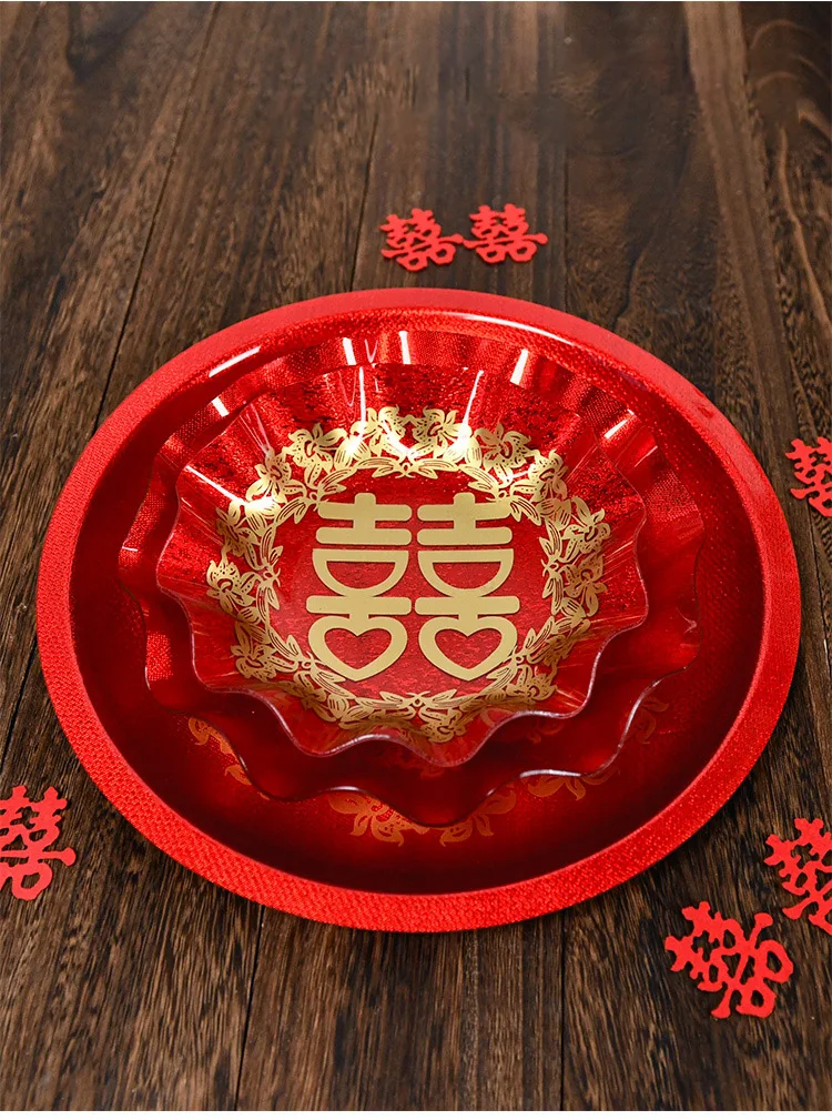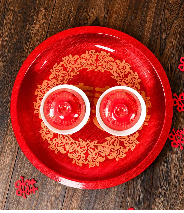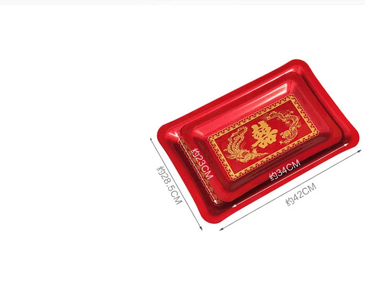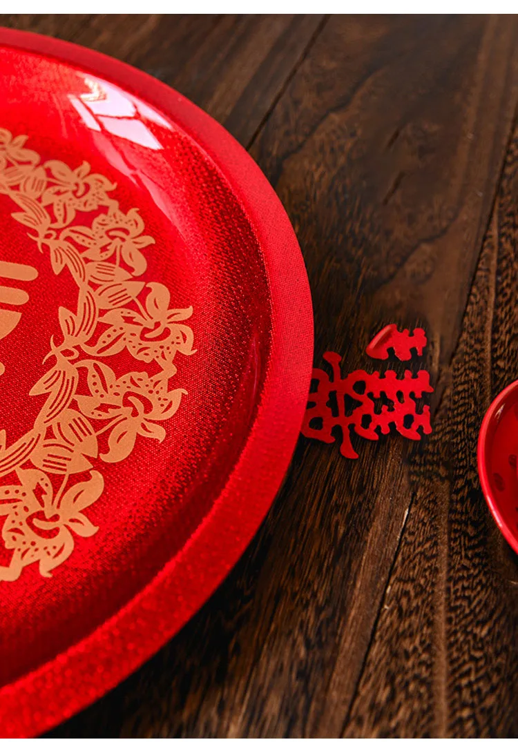 Luxury Chinese Red Plastic Oblong Round Toast Tray Traditional Wedding Party Tea Trays to Serve Food Festive Ceremony Decoration